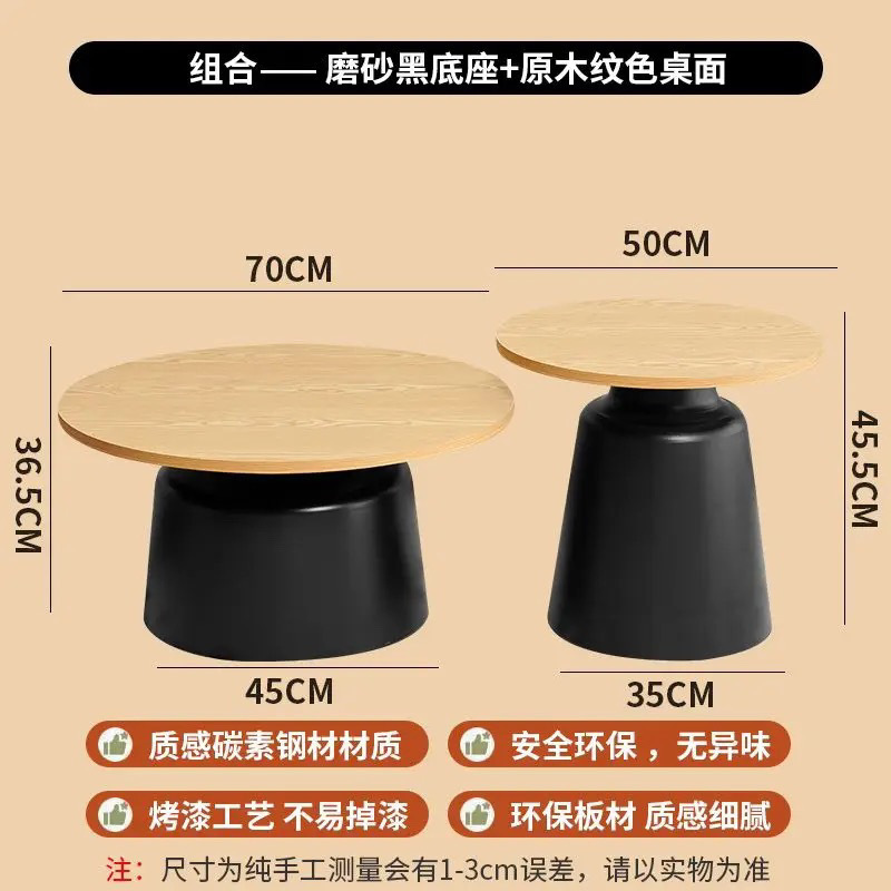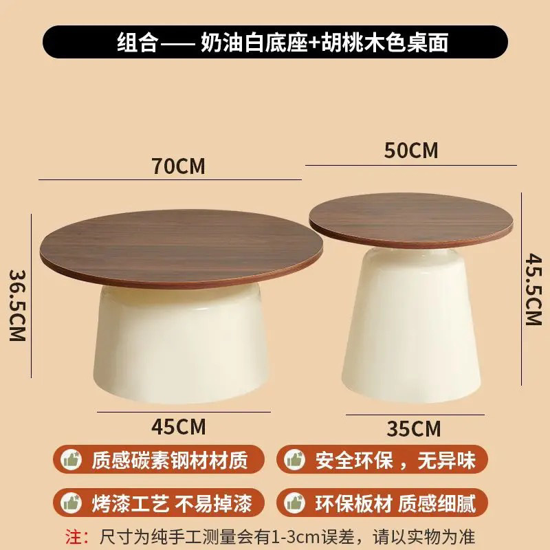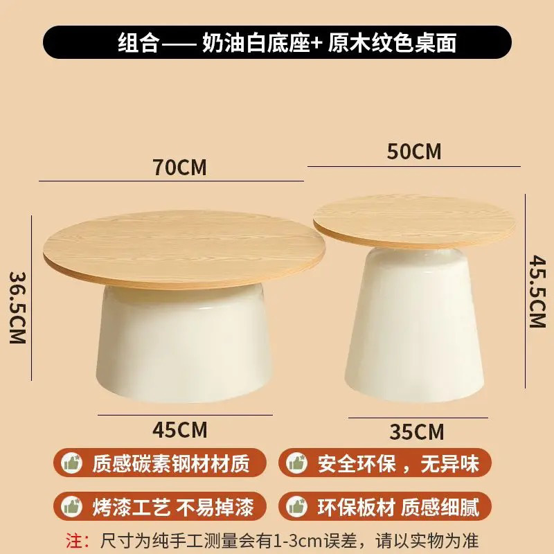 现代简约圆形奶油风茶几组合民宿公寓网红小户型客厅卧室床头边几