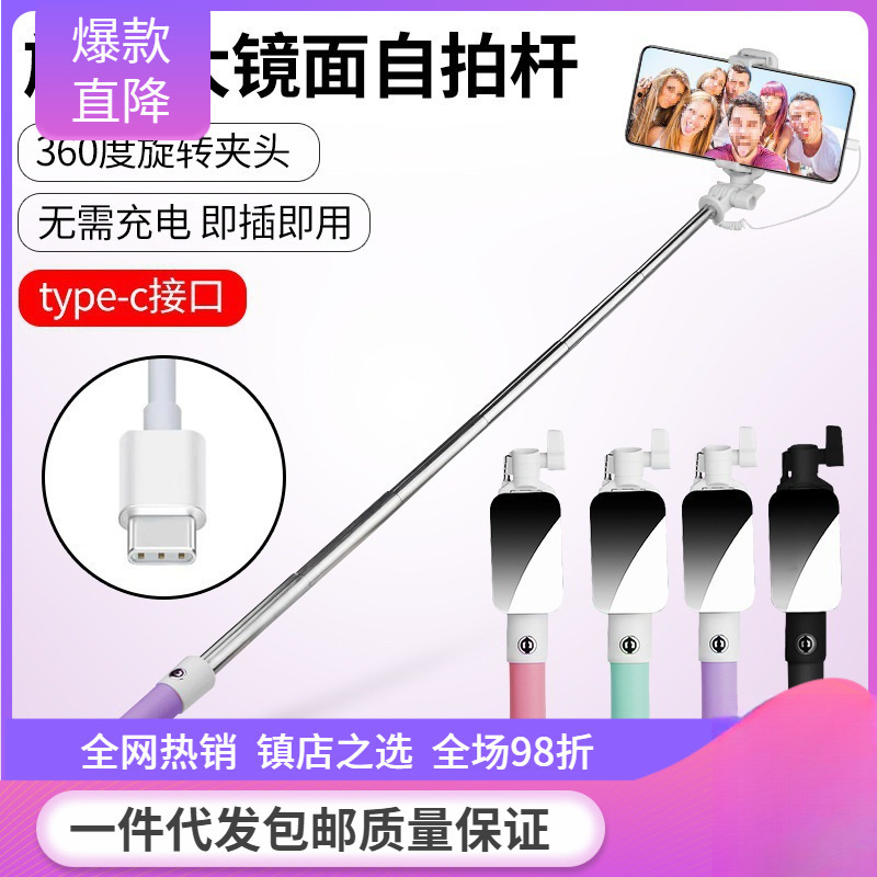 • [type-c 인터페이스] 셀카봉 [회전식 거울] 보라색-