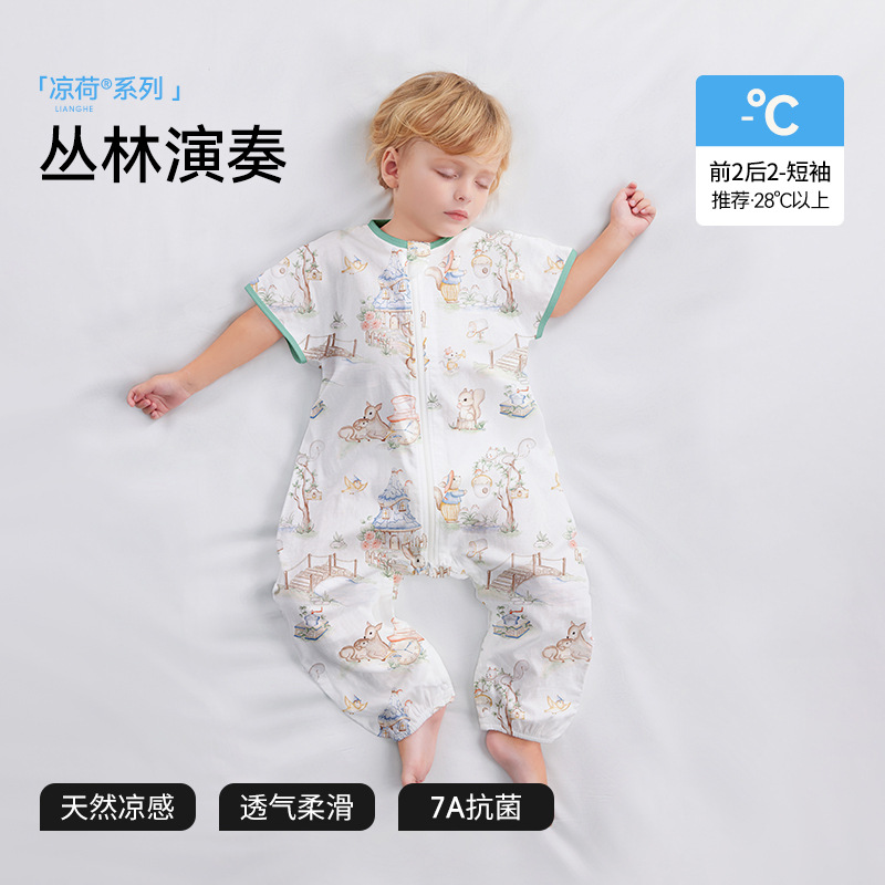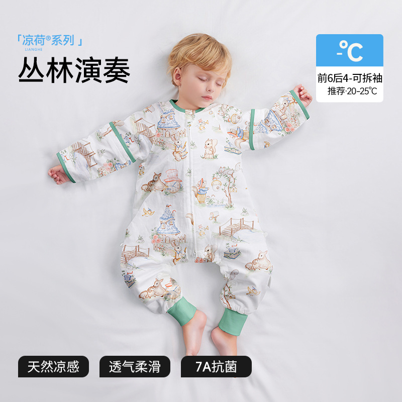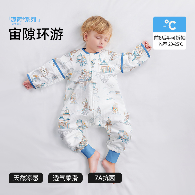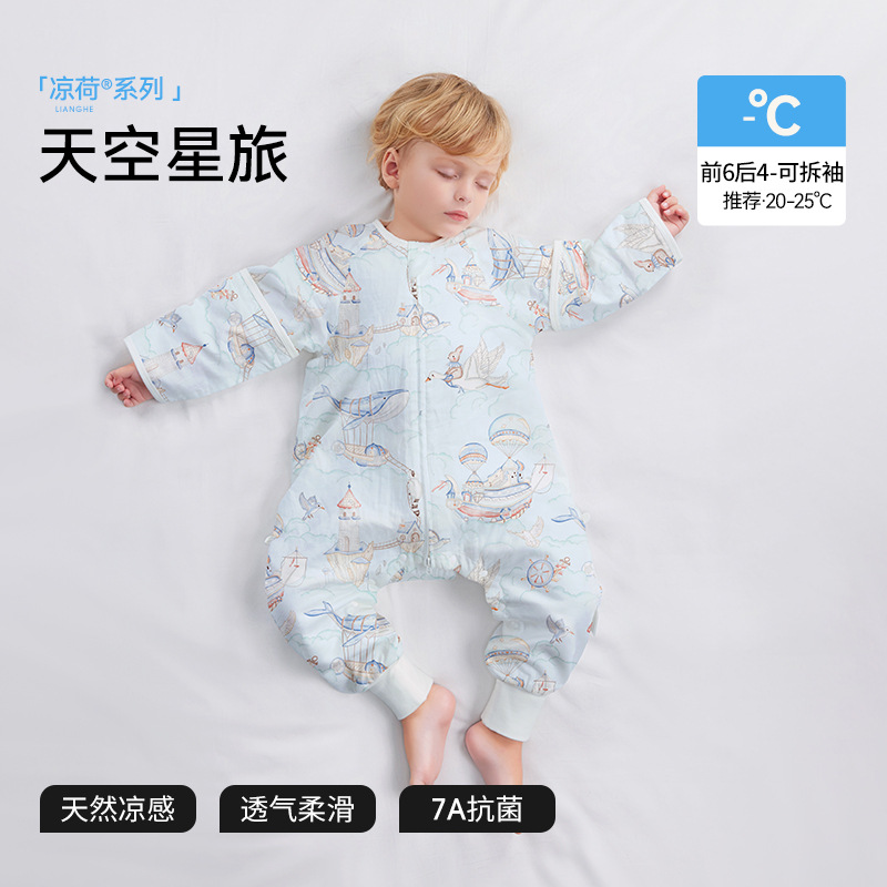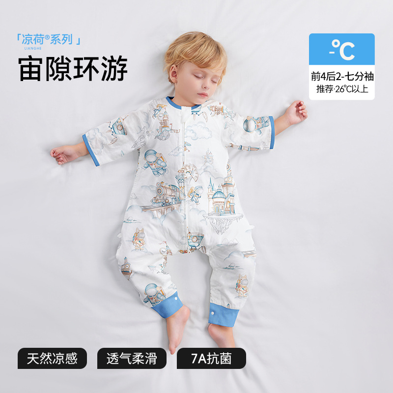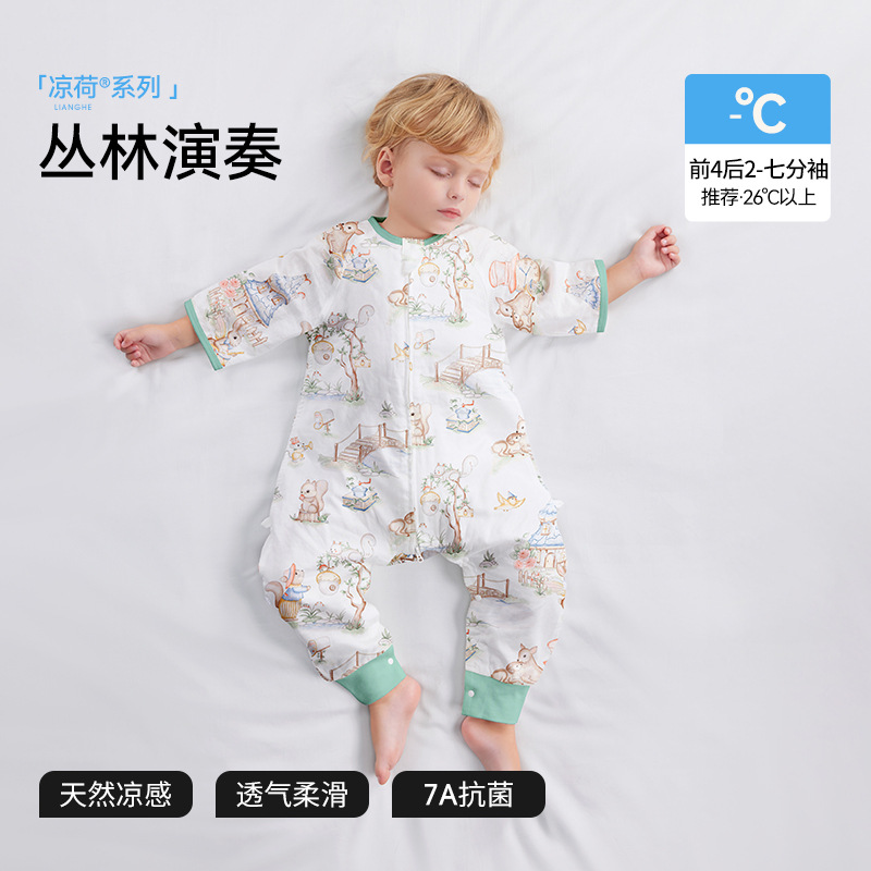 Beptide [Lianghe] 아기 잠자는 가방 봄과 여름 거즈 시즌 어린이 아기 다리 안티 킥 아티팩트 유니버설