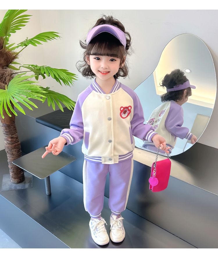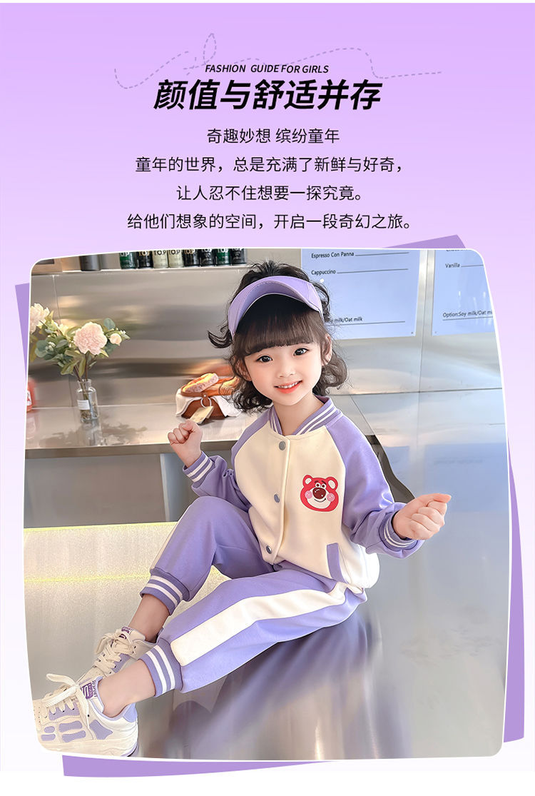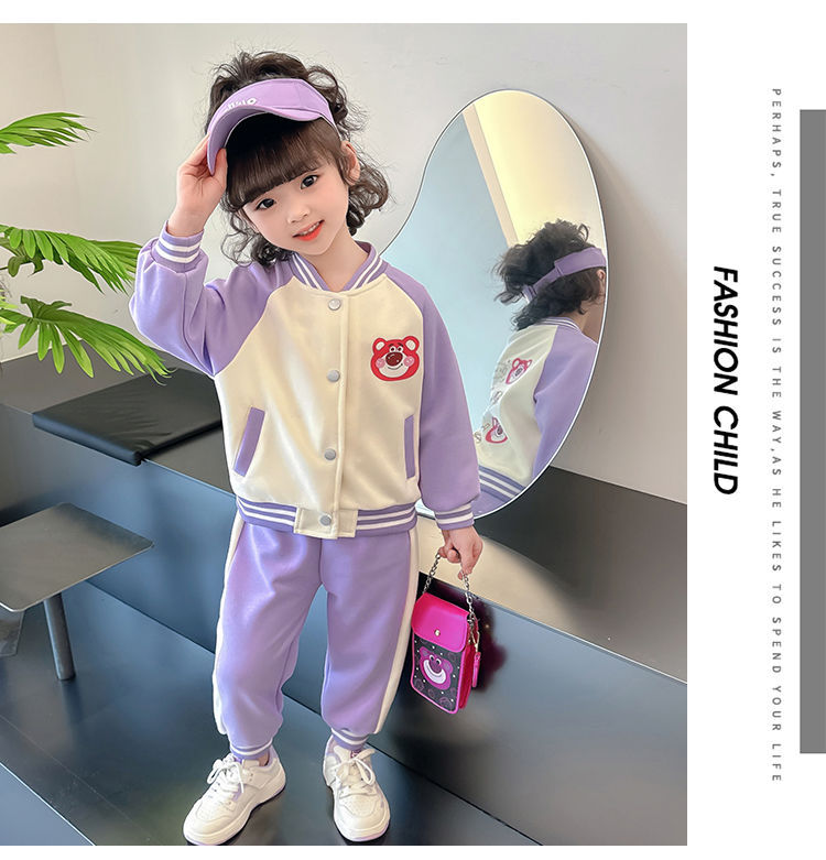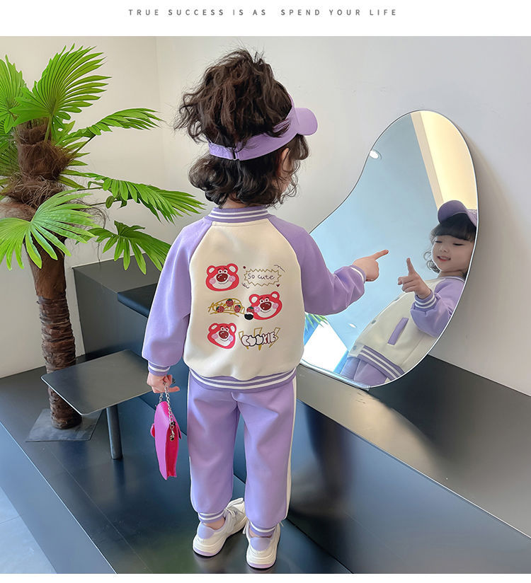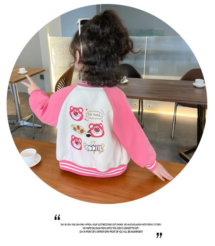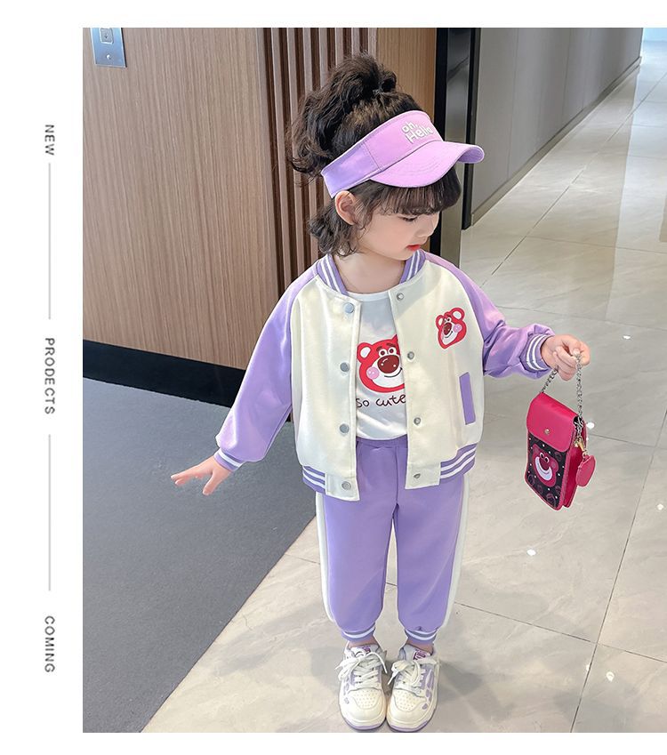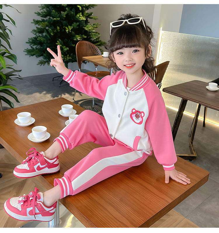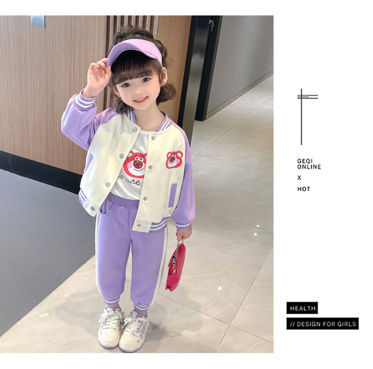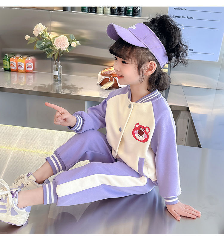 어린 소녀 겨울 옷 기모 두꺼운 딸기 곰 아기 소녀 캐주얼 야구 세트 세트 스타일 공주 3 피스 세트