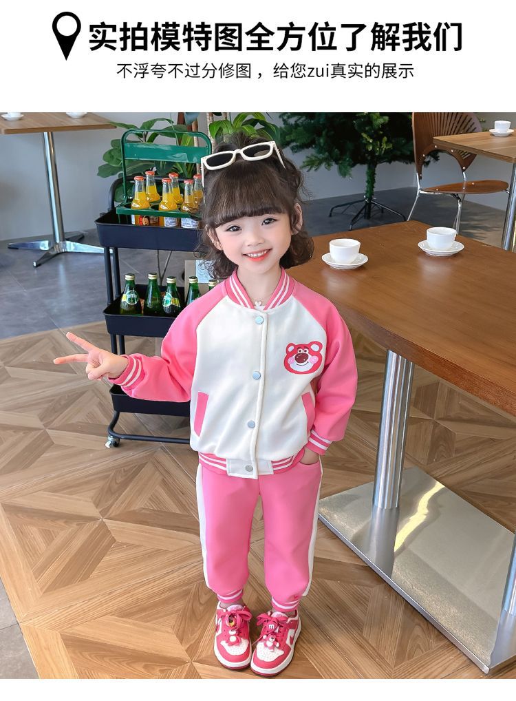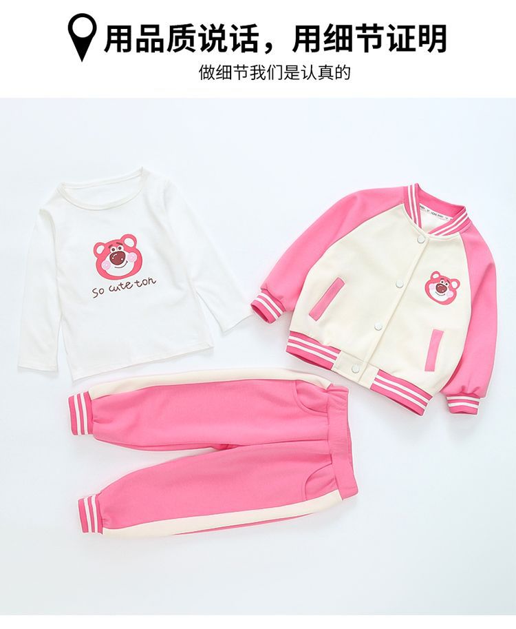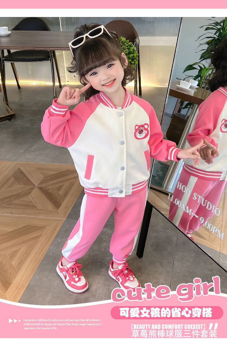 어린 소녀 겨울 옷 기모 두꺼운 딸기 곰 아기 소녀 캐주얼 야구 세트 세트 스타일 공주 3 피스 세트스토어 가기