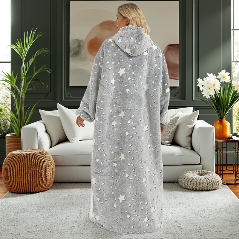 2025년 겨울 야광 회색 오각별 모양 후드 달린 150CM 롱 레이지 블랭킷 후드 캐주얼 홈웨어스토어 가기