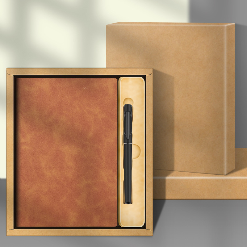 • 체스트넛 브라운 A5 부드러운 가죽 노트 + 플라스틱 펜 + 선물 상자 (선물 가방 제외)