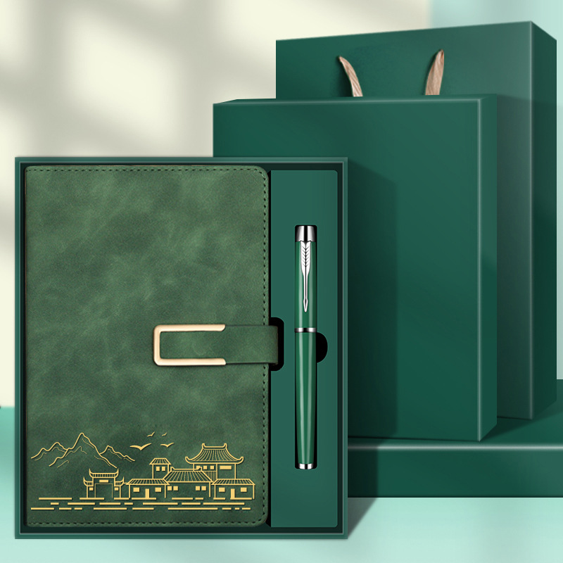 • Qingshan Green A5 부드러운 가죽 책 + 펜 선물 상자 선물 가방
