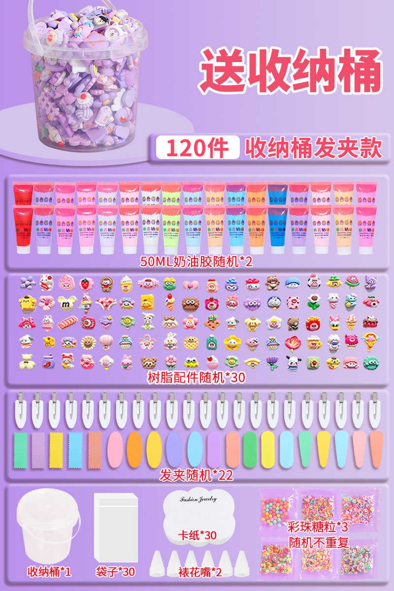 크림 젤 DIY 헤어핀 소재 가방 수제 헤어핀 그립 수지 작은 액세서리 전체 세트 소녀 어린이스토어 가기