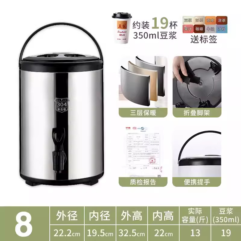 우유 차 양동이 스테인리스 대형 용량 콩 우유 양동이 차갑고 뜨거운 두 배 절연 아이스 티 버킷 우유 차 가게 절연 버킷 상업용