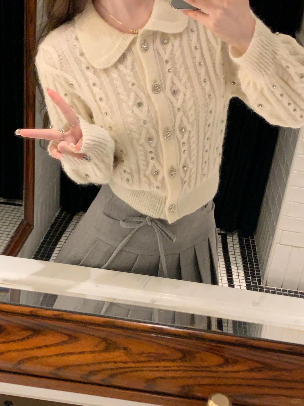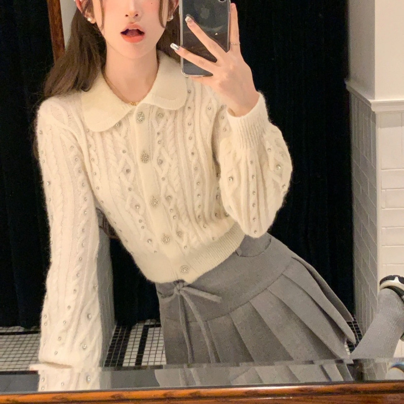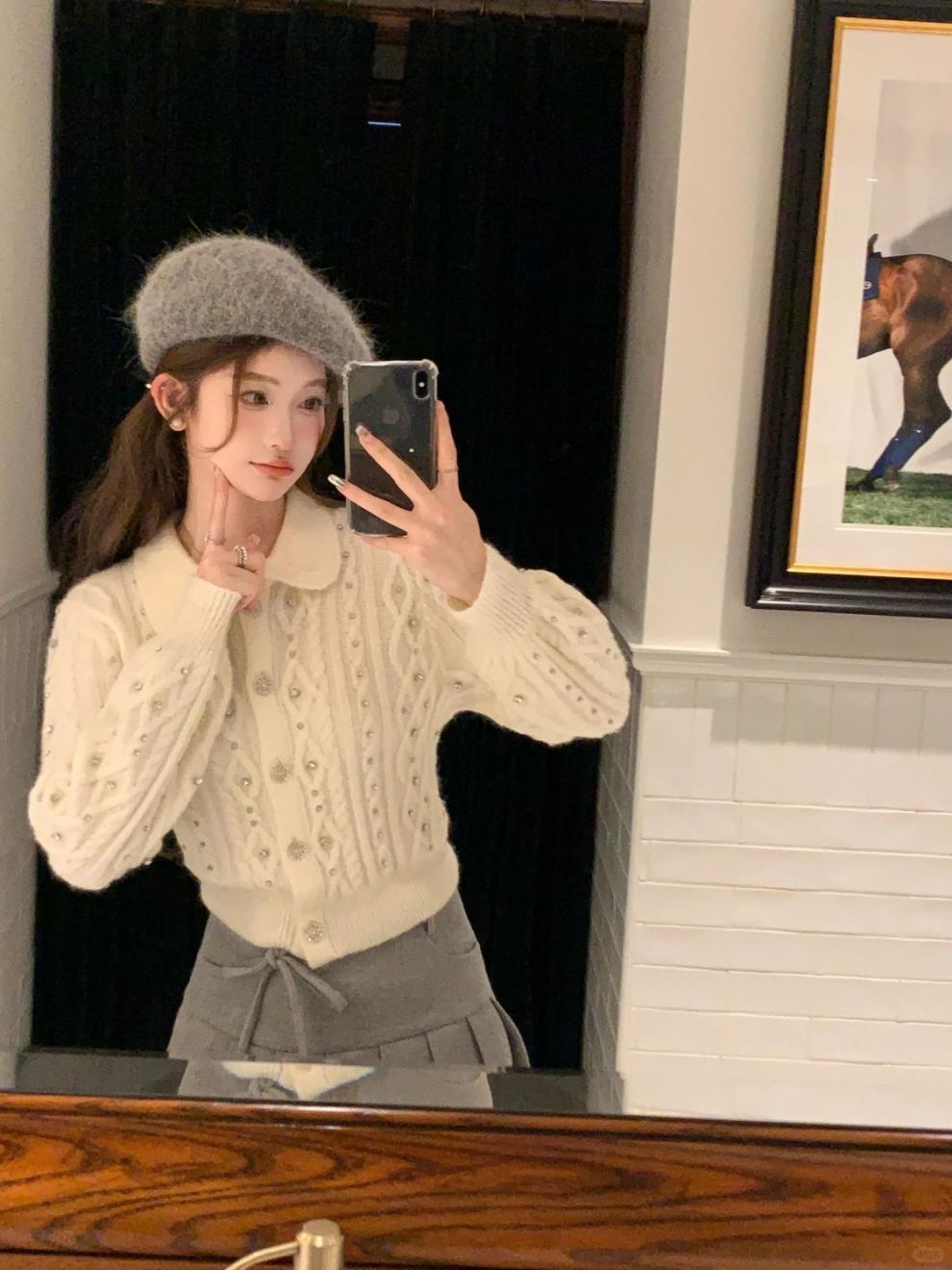 퓨어 넥시 네일 드릴 트위스트 옷깃 짧은 니트 카디건 여성의 가을과 겨울 새로운 슬림 핏 슬림 긴팔 탑스토어 가기