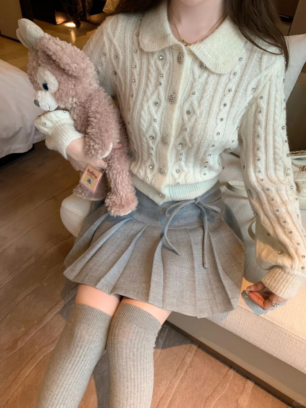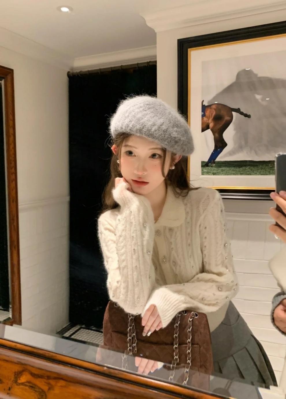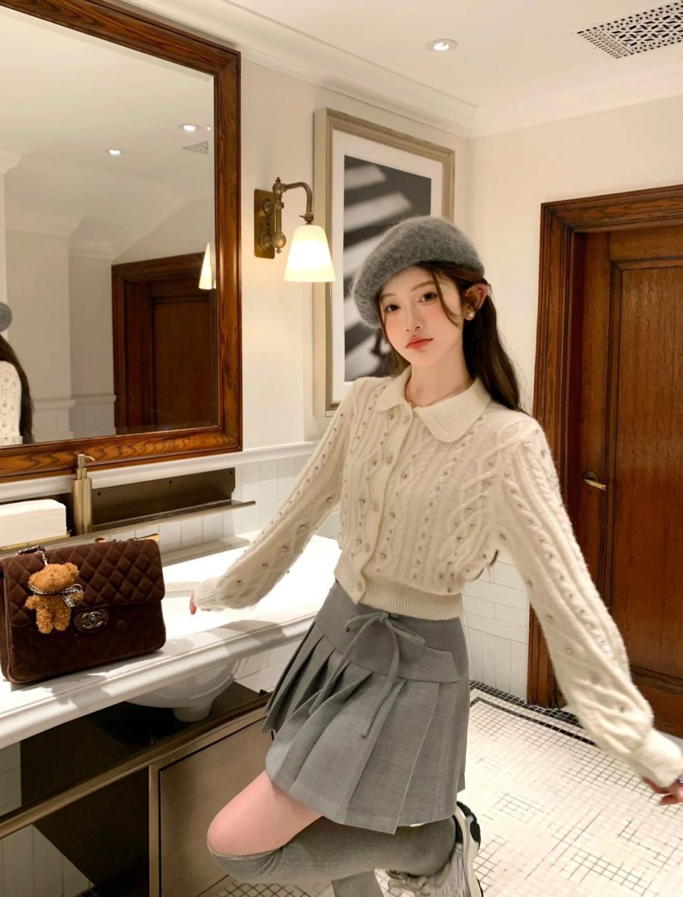 퓨어 넥시 네일 드릴 트위스트 옷깃 짧은 니트 카디건 여성의 가을과 겨울 새로운 슬림 핏 슬림 긴팔 탑스토어 가기