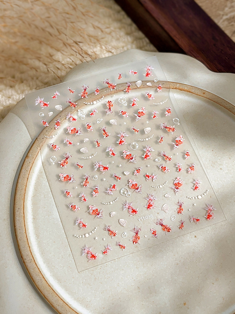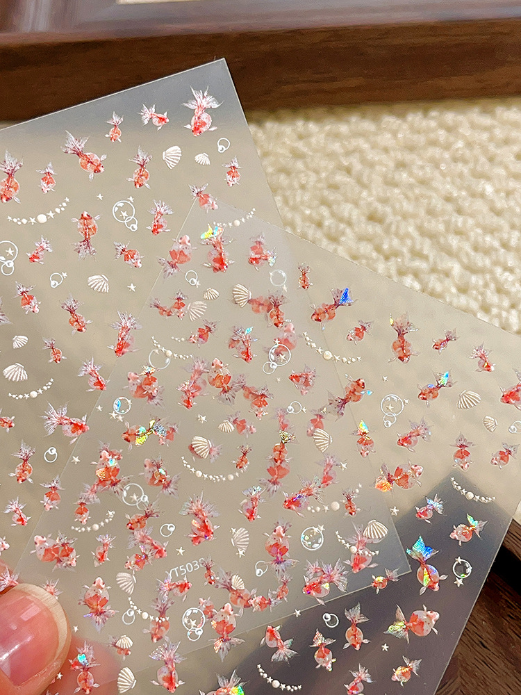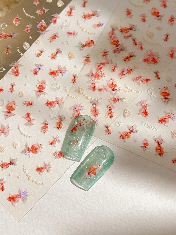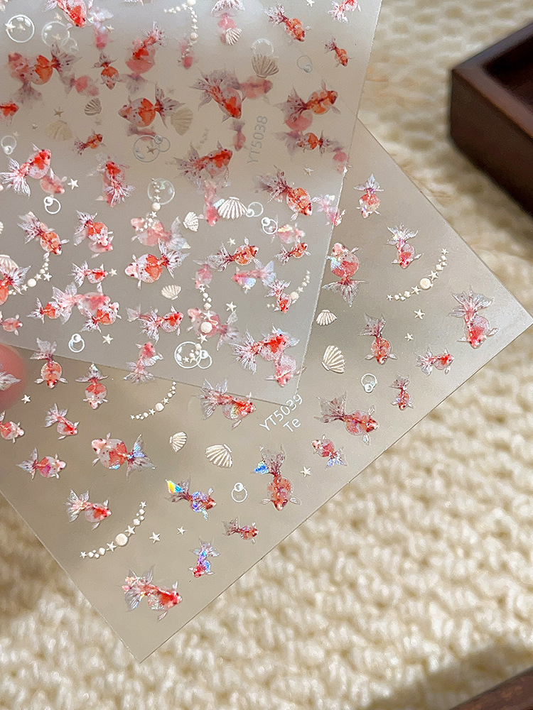 YITU 개미 그림 섬광 잉어 네일 아트 스티커 슈퍼 귀여운 다채로운 잉어 귀여운 쉘 장식 스티커 YT5038스토어 가기