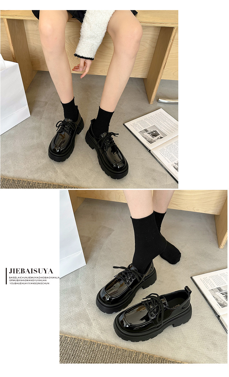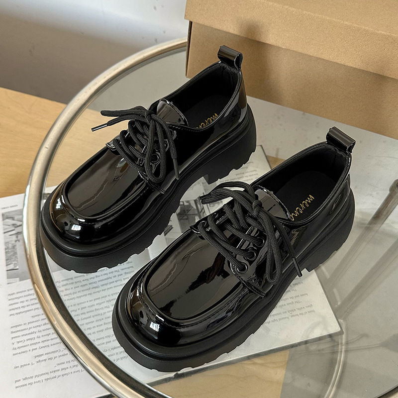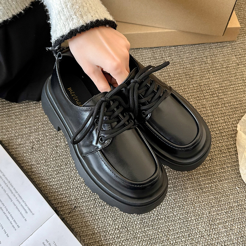두꺼운 밑창 영국 스타일의 작은 가죽 신발 여성의 봄과 가을 새로운 올 매치 고조 로퍼 블랙 jk 싱글 레이어 신발 여성용 가죽 신발스토어 가기
