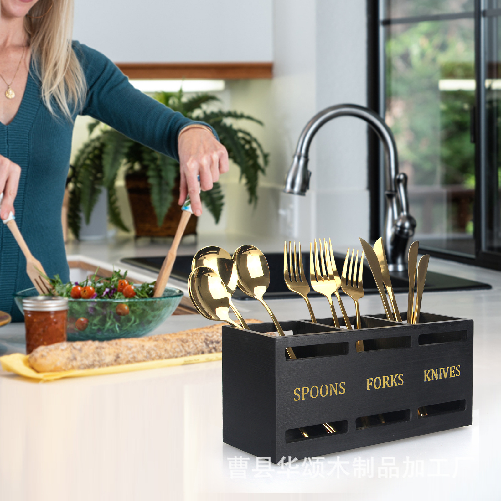 나무 주방 식기 저장 상자 나이프와 포크 젓가락 저장 상자 멀티 그리드 숟가락 분류 저장 상자 젓가락 튜브스토어 가기