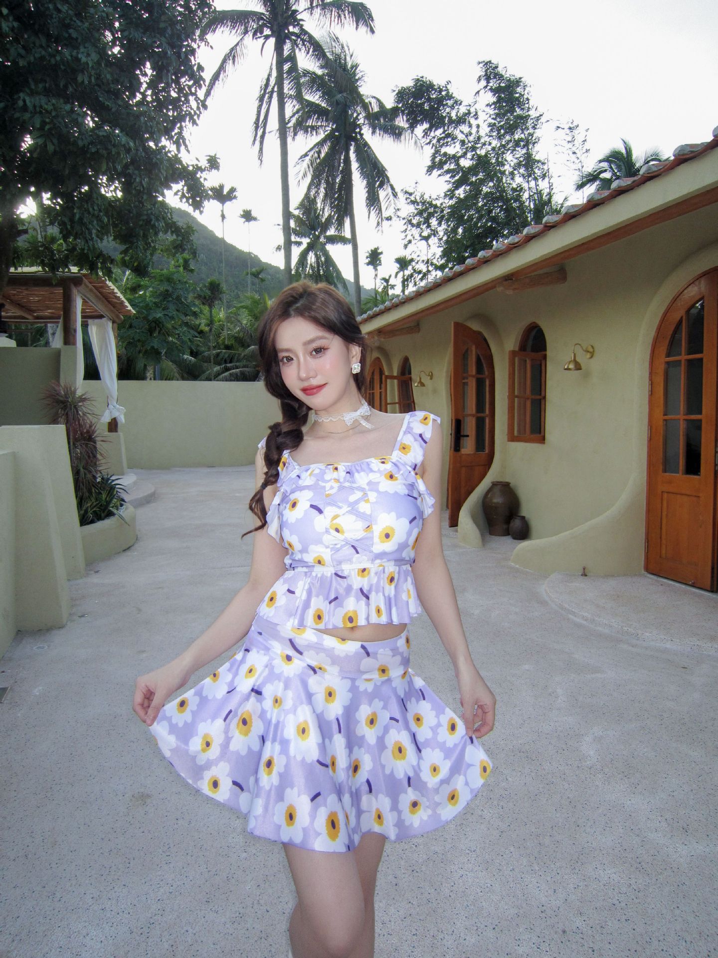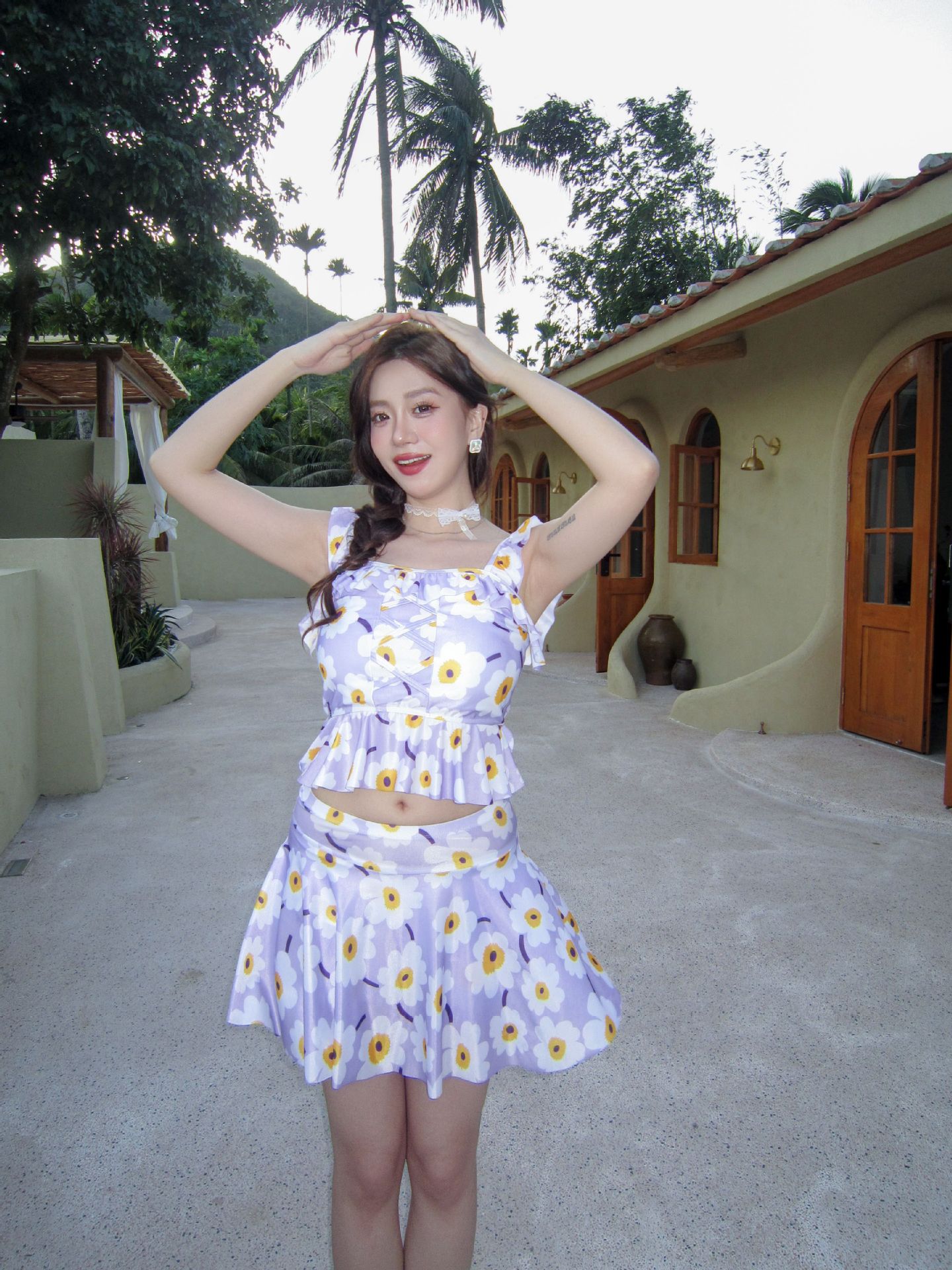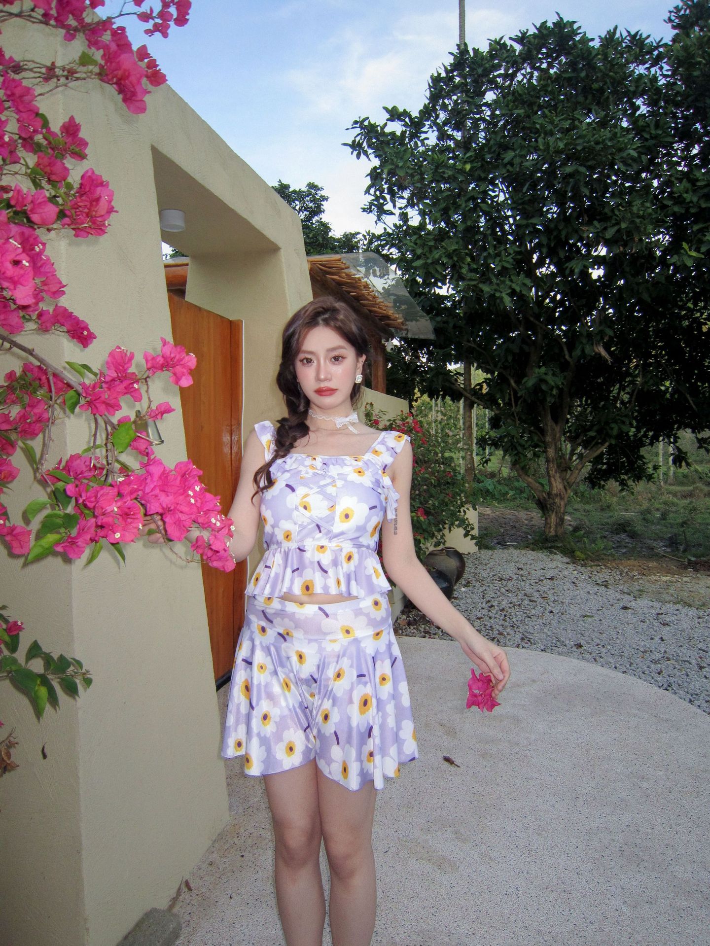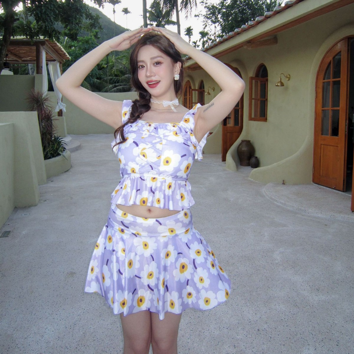 2025 여름 새로운 꽃 스플릿 작은 신선한 여성 수영복 세트 꽃 스커트 눈부심 복서 반바지