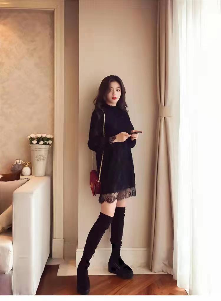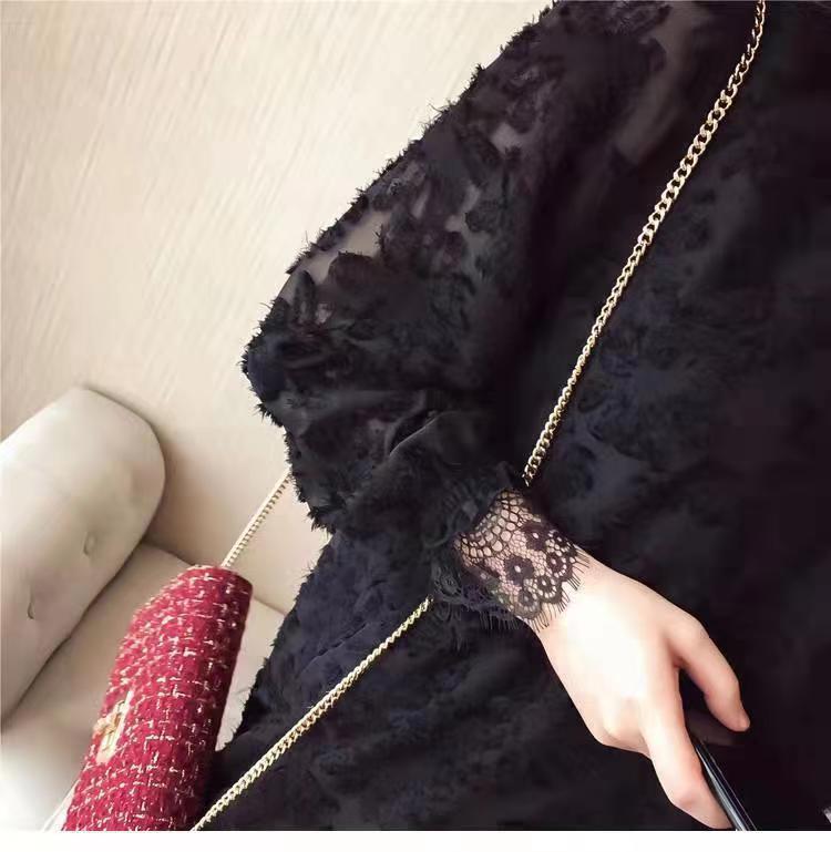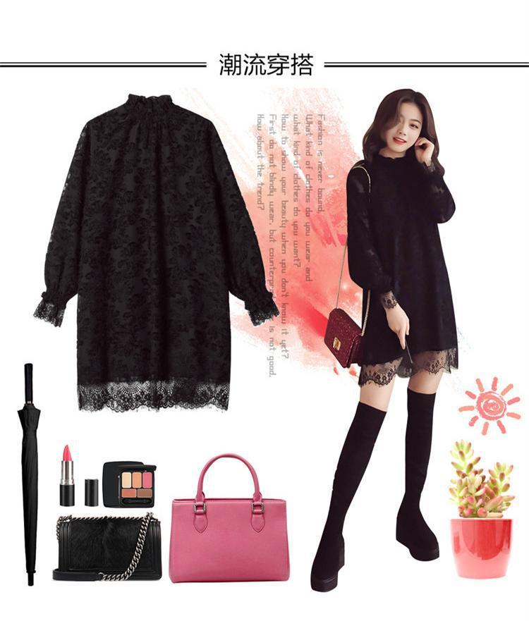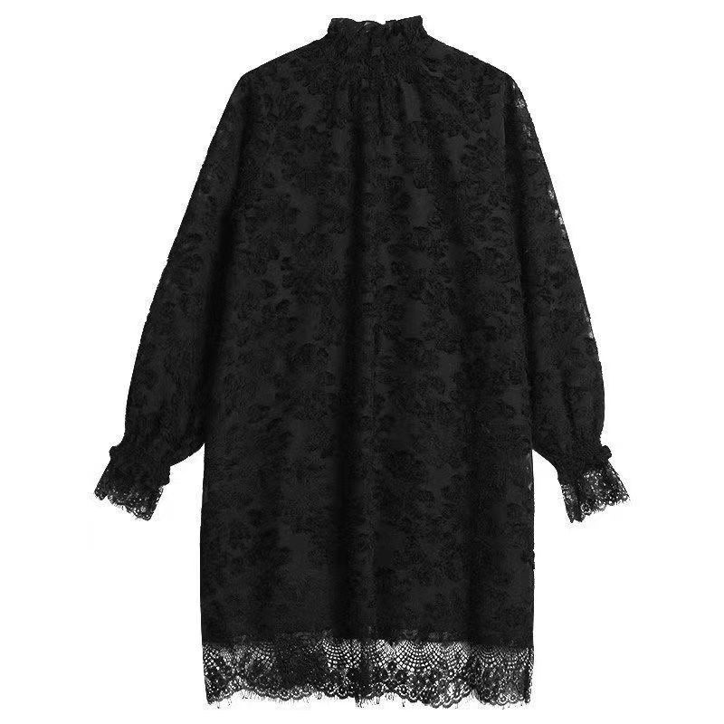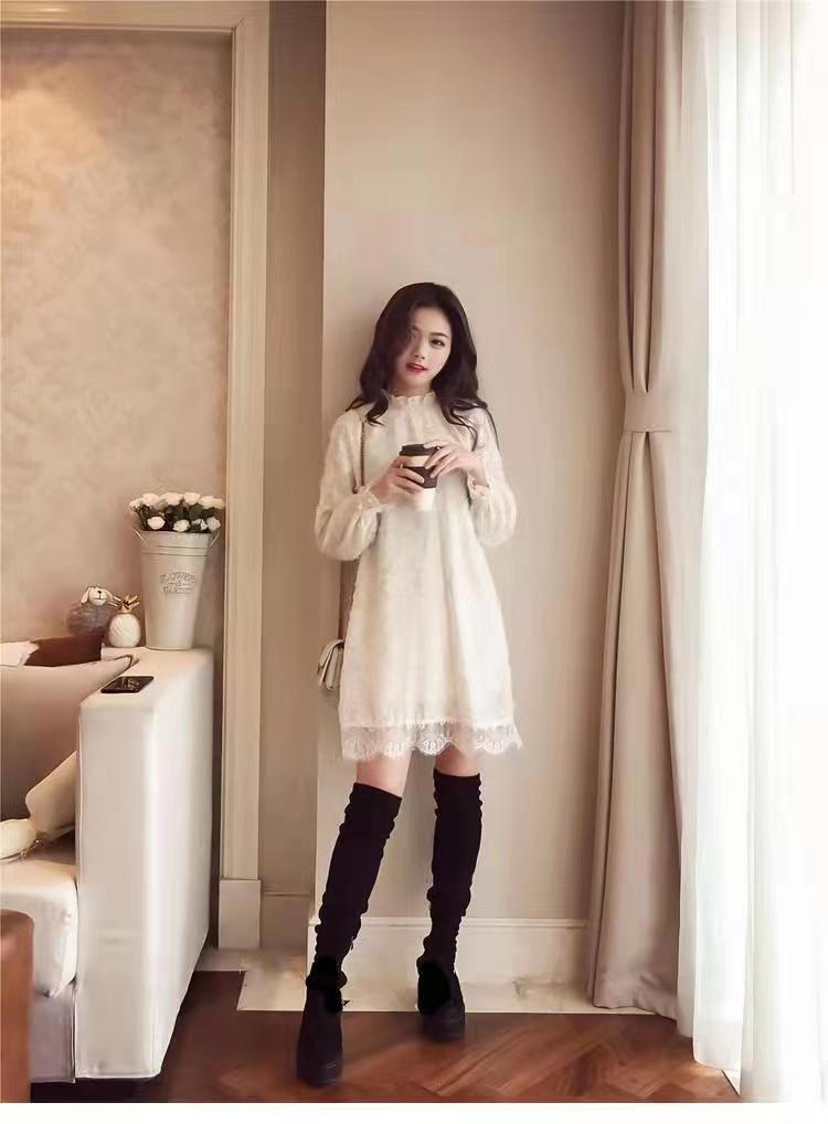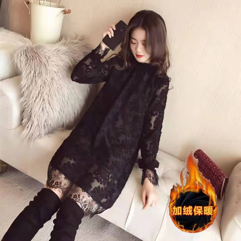 중간 길이의 레이스 두꺼운 티셔츠베이스 셔츠 여성의 봄과 가을 새로운 한국식 느슨한 슬리밍 쉬폰 원피스 탑