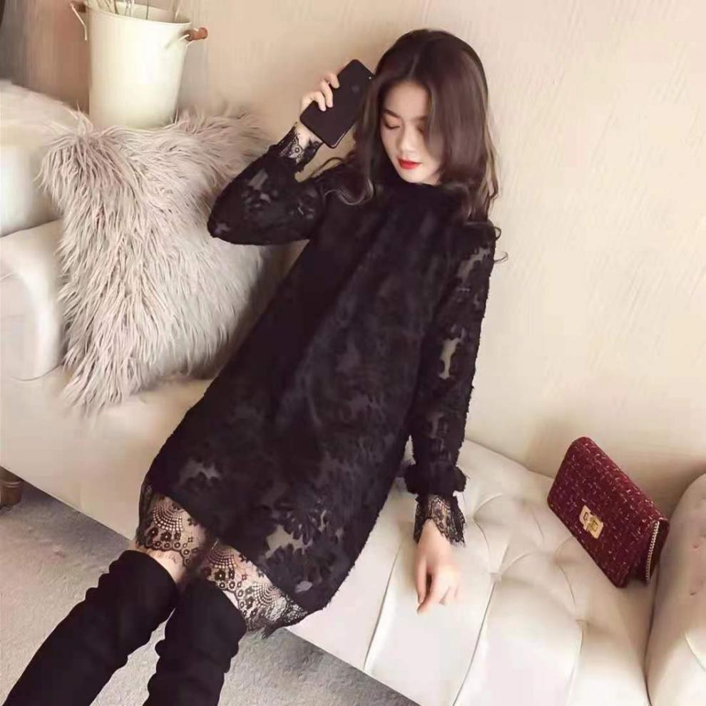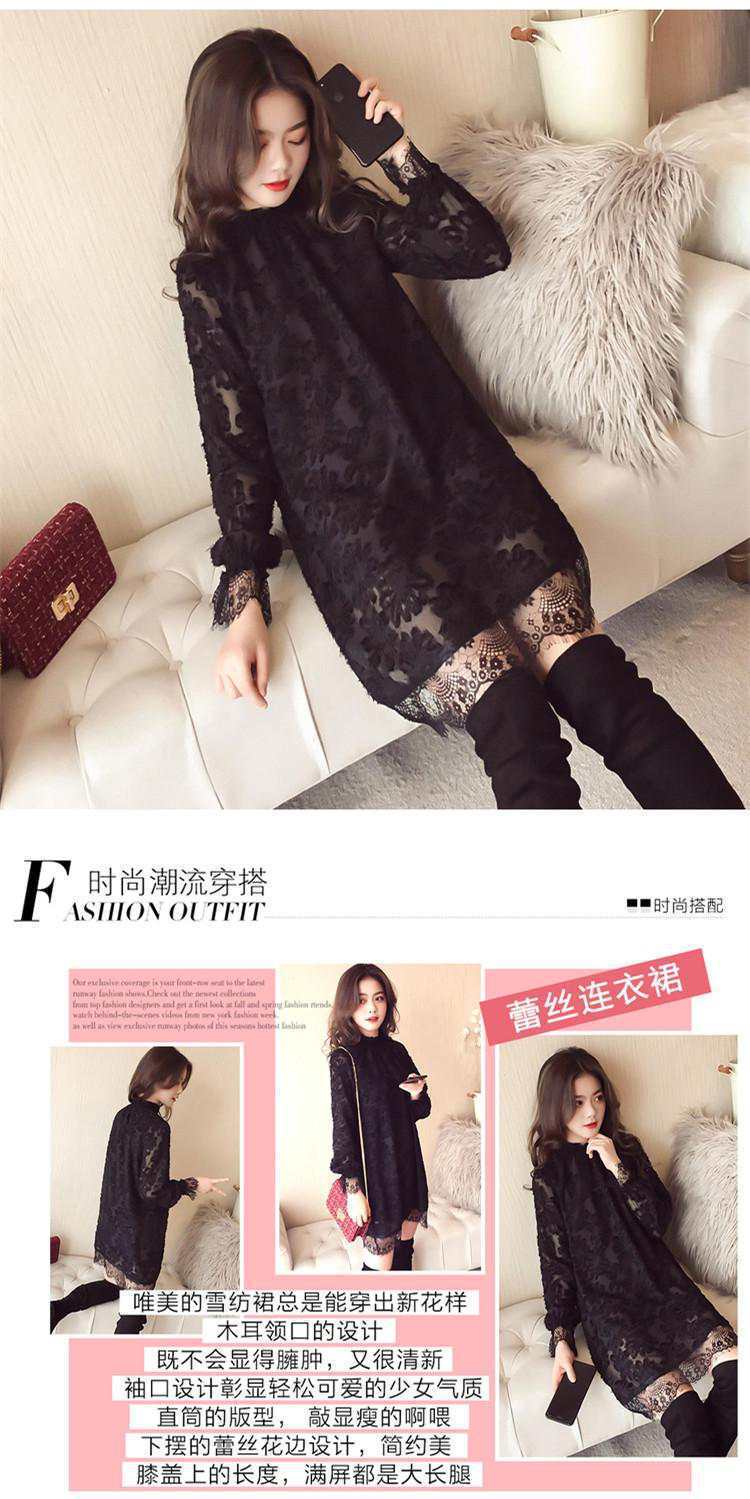 중간 길이의 레이스 두꺼운 티셔츠베이스 셔츠 여성의 봄과 가을 새로운 한국식 느슨한 슬리밍 쉬폰 원피스 탑스토어 가기