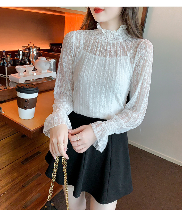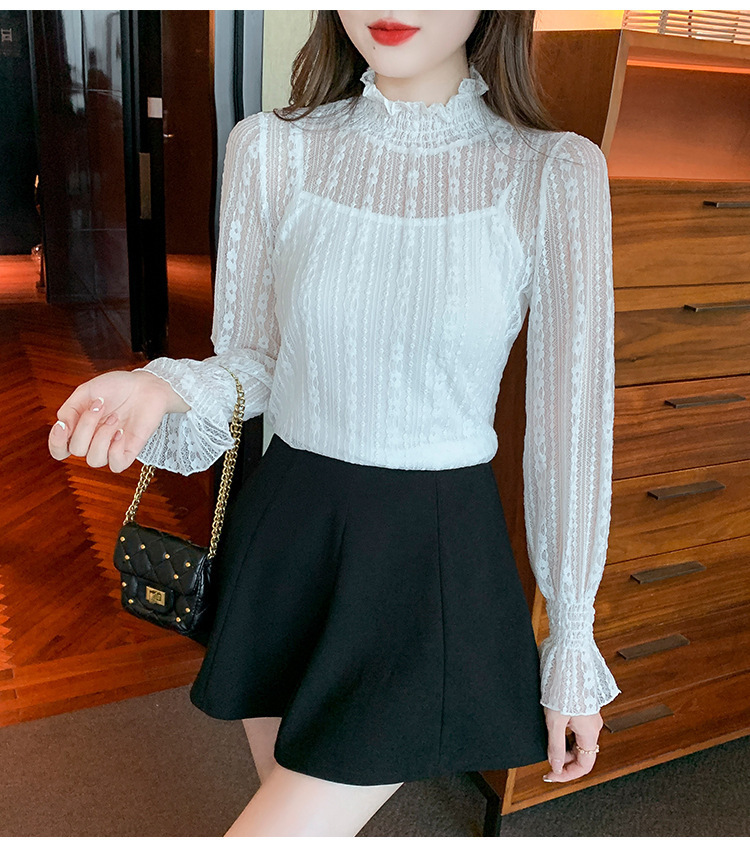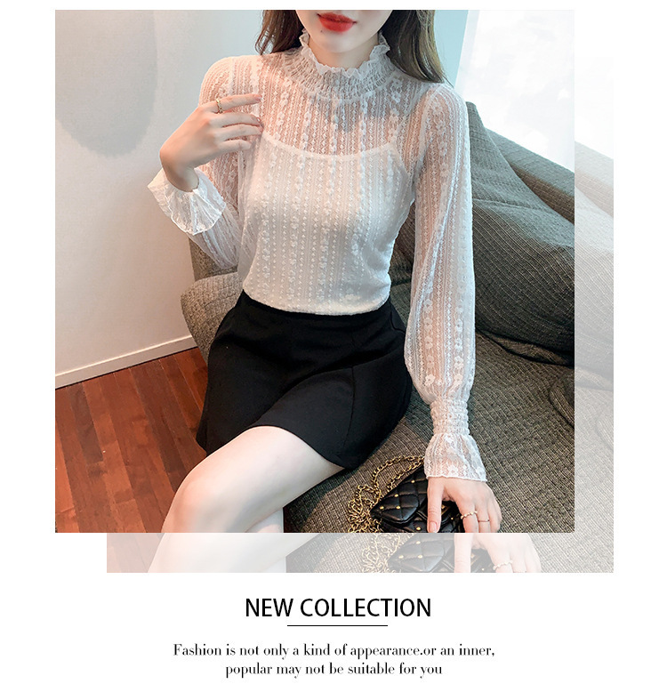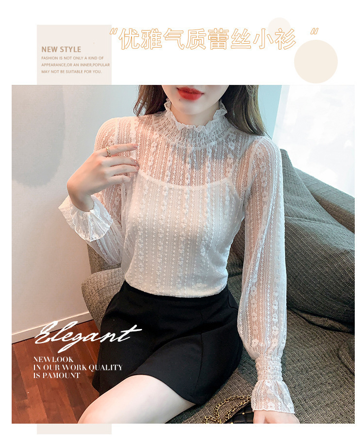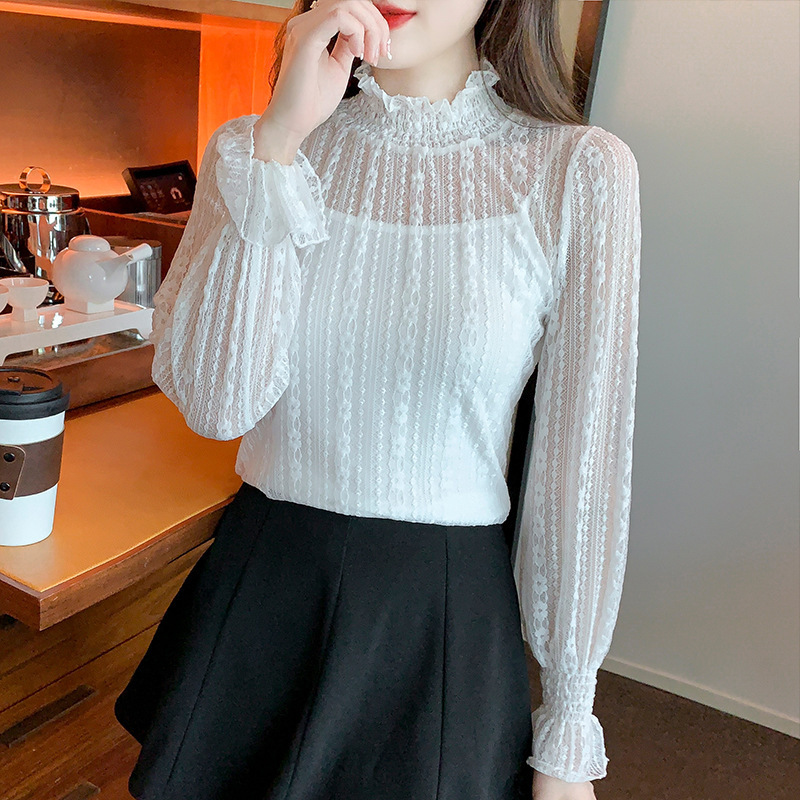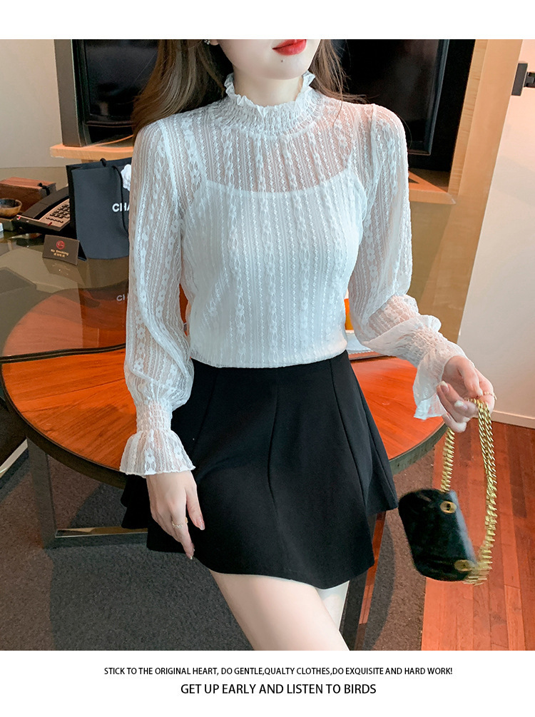 가을 2025 년 새 여성 하프 터틀넥 스위트 페어리 슈퍼 페어리 탑 스타일리스트 이내베이스 셔츠 쉬폰 레이스 셔츠