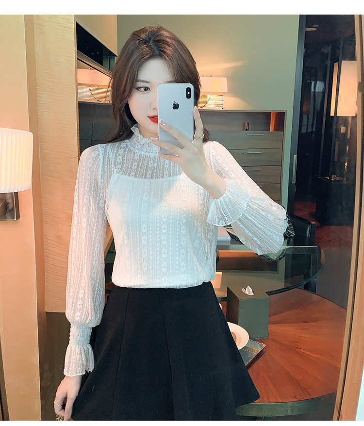 가을 2025 년 새 여성 하프 터틀넥 스위트 페어리 슈퍼 페어리 탑 스타일리스트 이내베이스 셔츠 쉬폰 레이스 셔츠스토어 가기