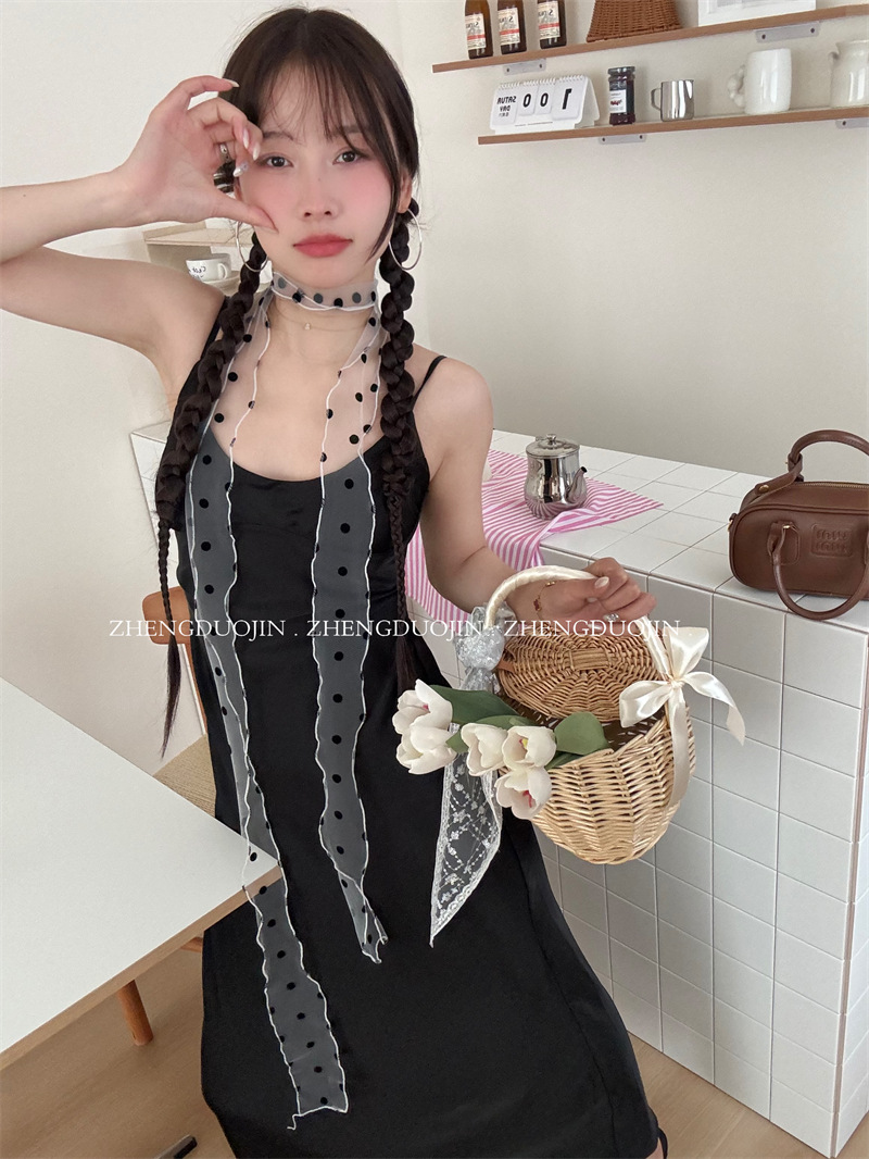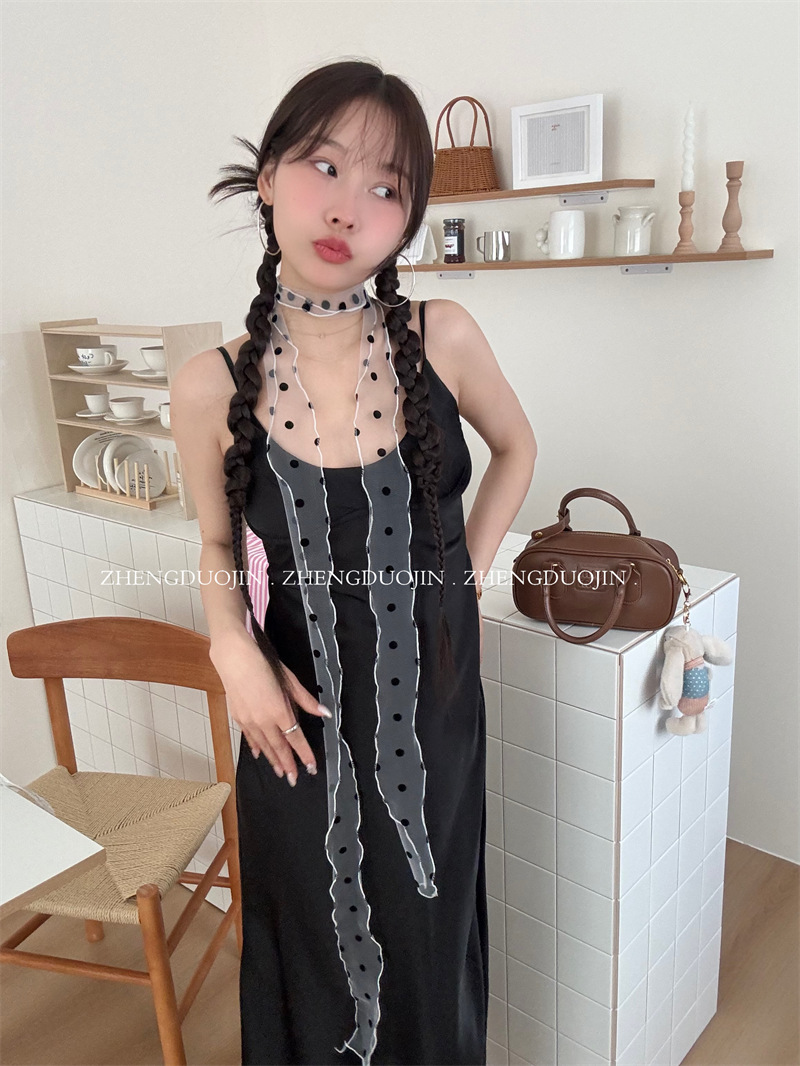 2025 새로운 스타일 Organza Poll Dot 긴 작은 실크 스카프 여성의 여름 투명한 경량 분위기 올 매치 리본 스카프스토어 가기
