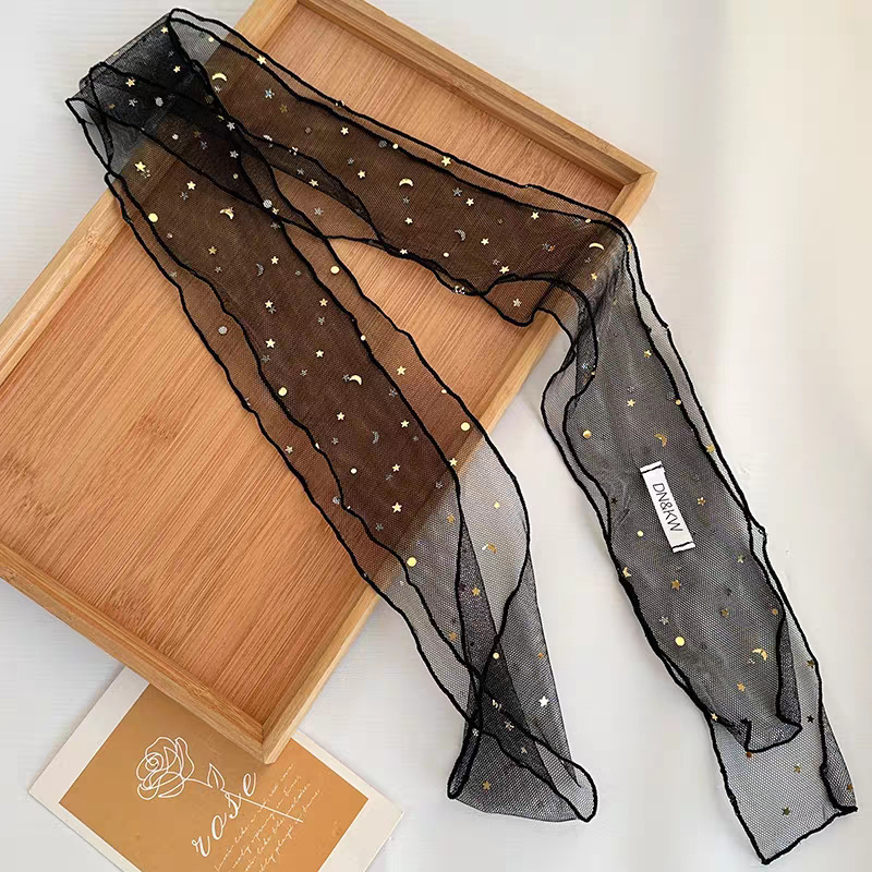 2025 새로운 스타일 Organza Poll Dot 긴 작은 실크 스카프 여성의 여름 투명한 경량 분위기 올 매치 리본 스카프