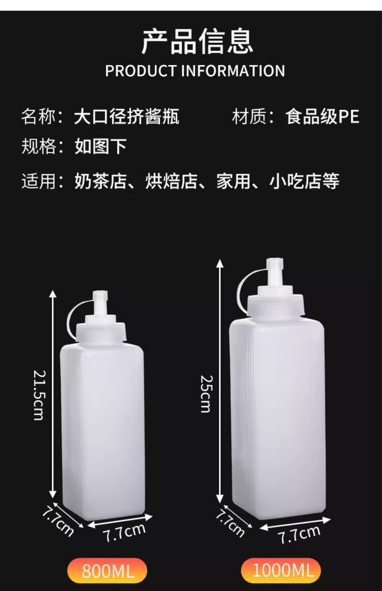 플라스틱 압출 소스 병 식품 등급 잼 병 대형 직경 압출 병 얼음 분말 스톨 병 소스 병 우유 차 가게 상업