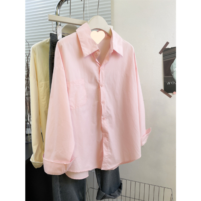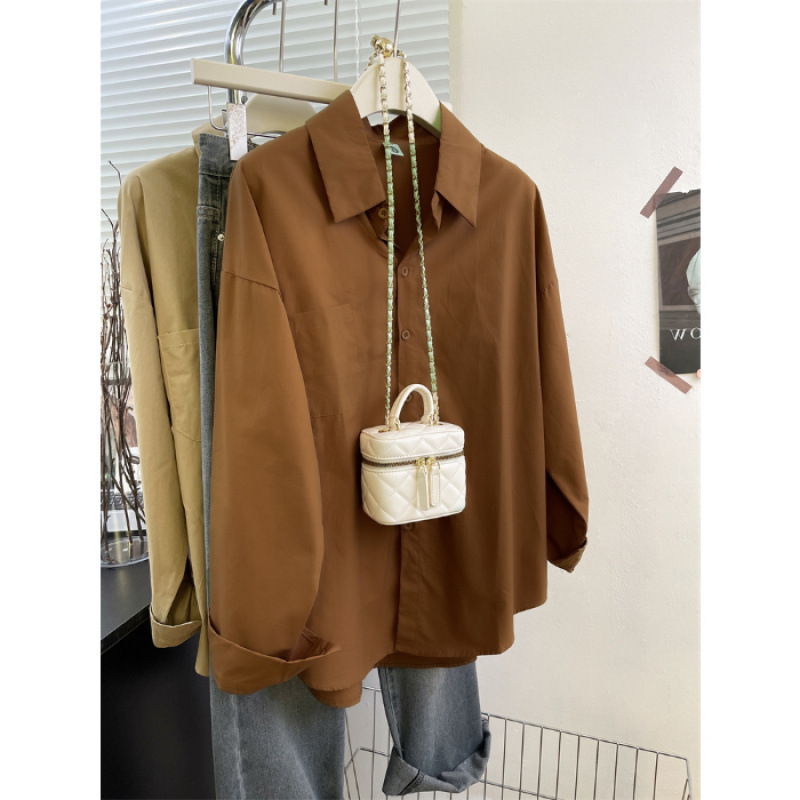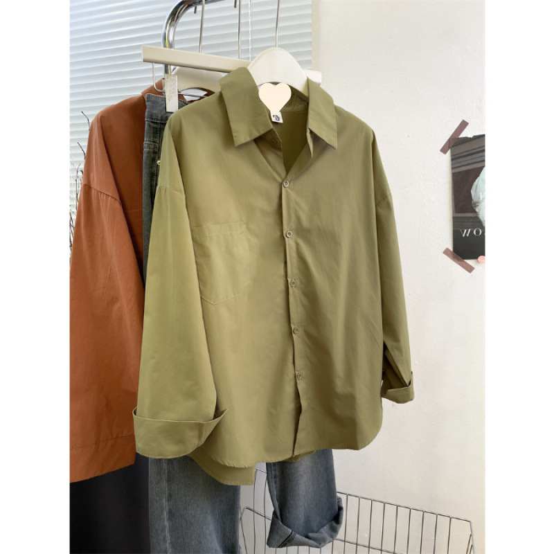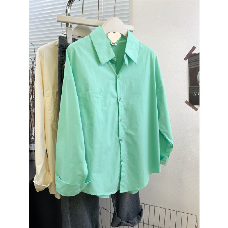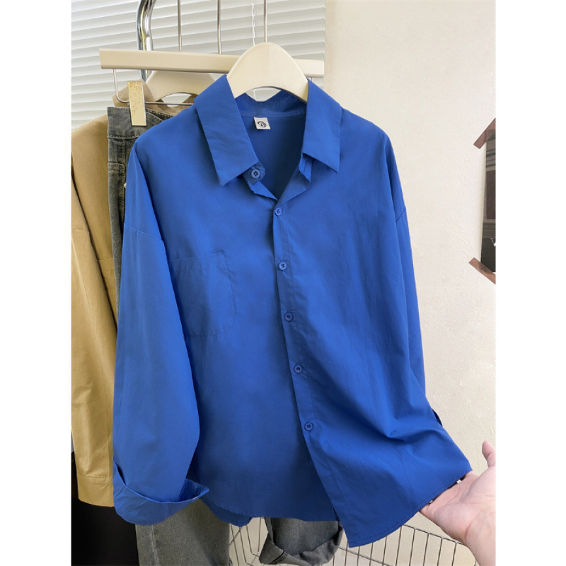 2025 코리안 클라인 블루 셔츠 여성 싱글 브레스트 이른 가을 긴팔 하이 엔드 셔츠 여성 스몰 루즈 트렌디스토어 가기