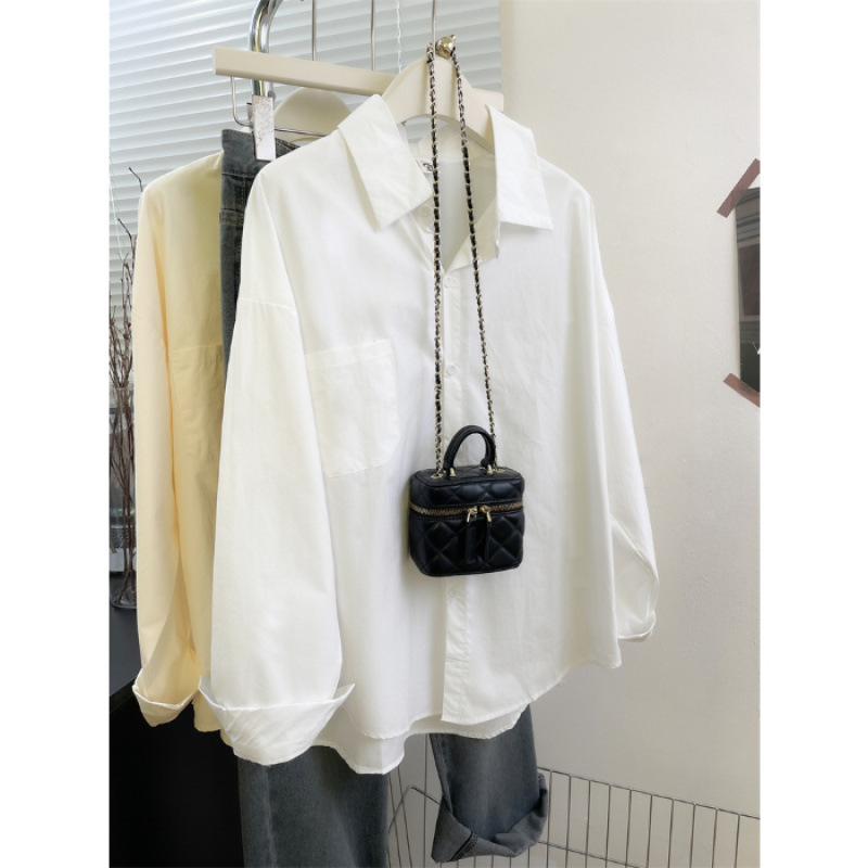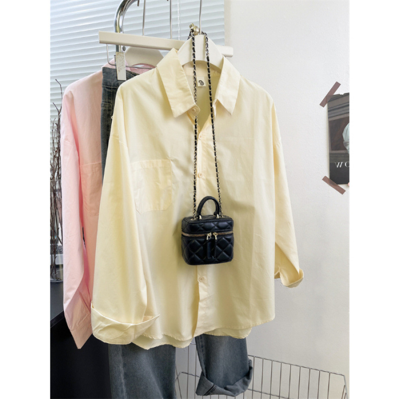 2025 코리안 클라인 블루 셔츠 여성 싱글 브레스트 이른 가을 긴팔 하이 엔드 셔츠 여성 스몰 루즈 트렌디
