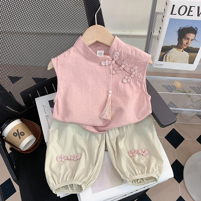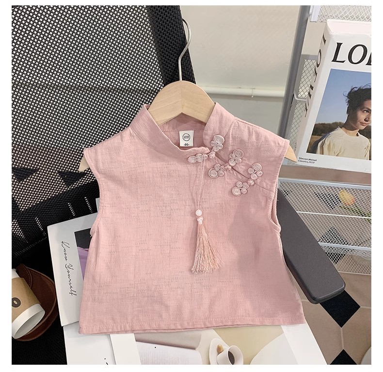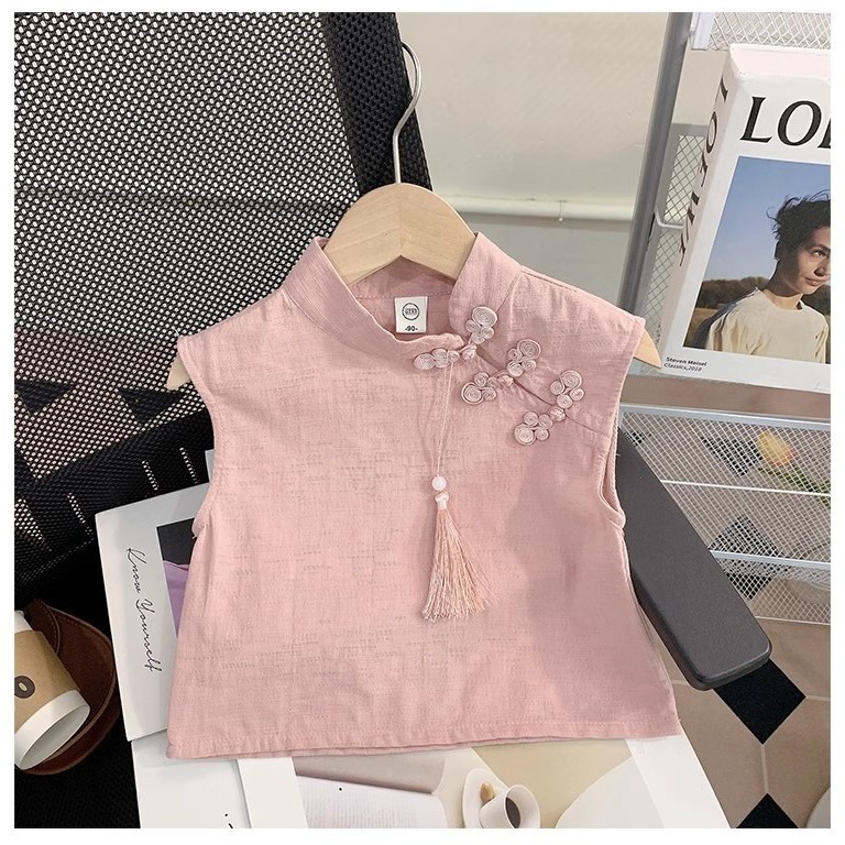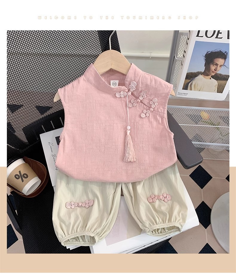 • 핑크 버튼 민소매 탑 [국가 스타일] 핑크 버튼 민소매 탑 [국가 스타일]