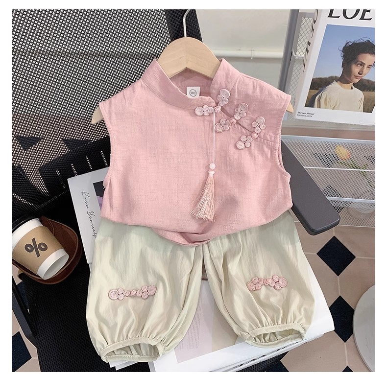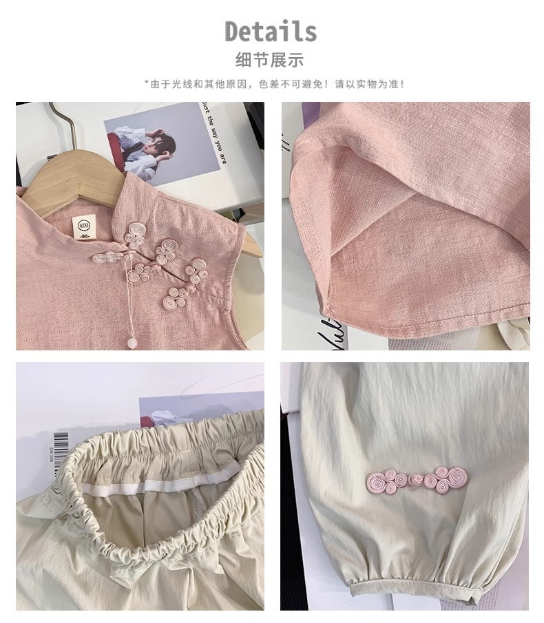 • 핑크 버튼 탑 + 팬츠 [내셔널 스타일]