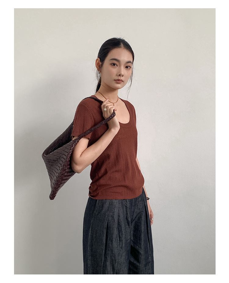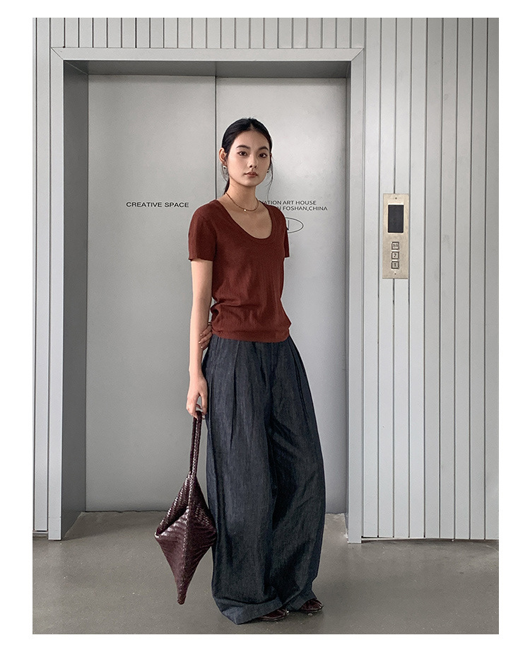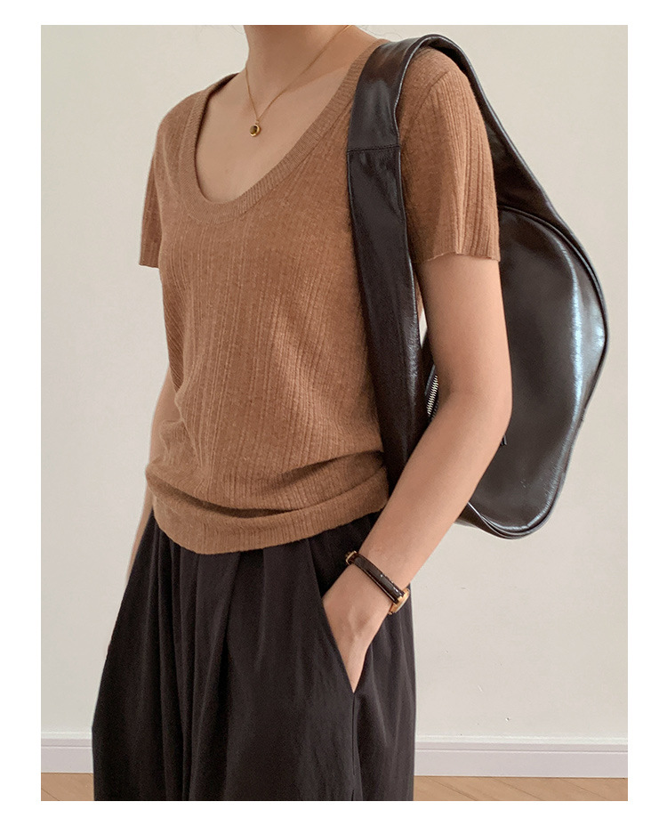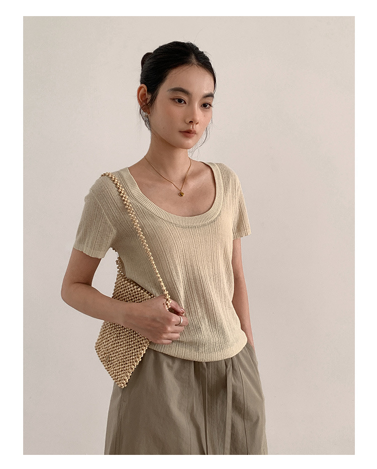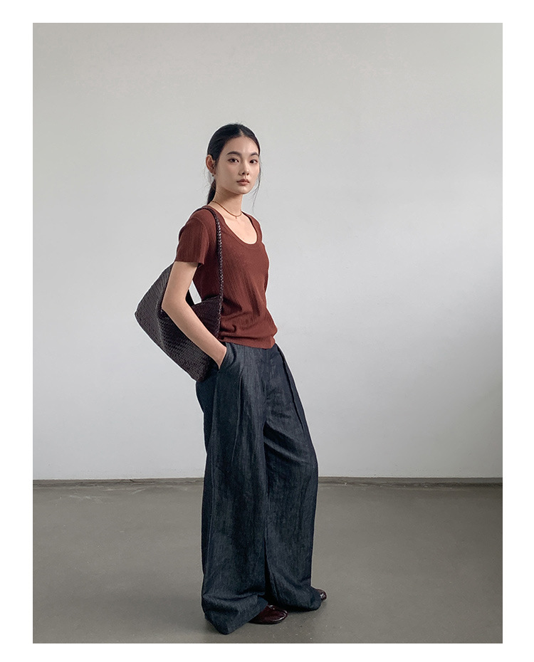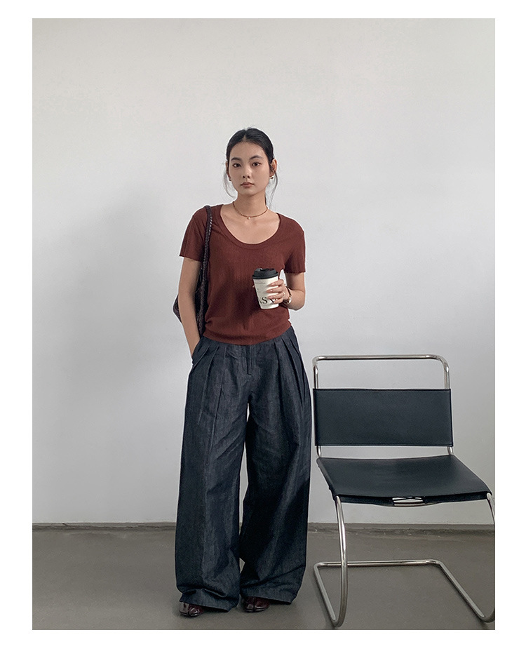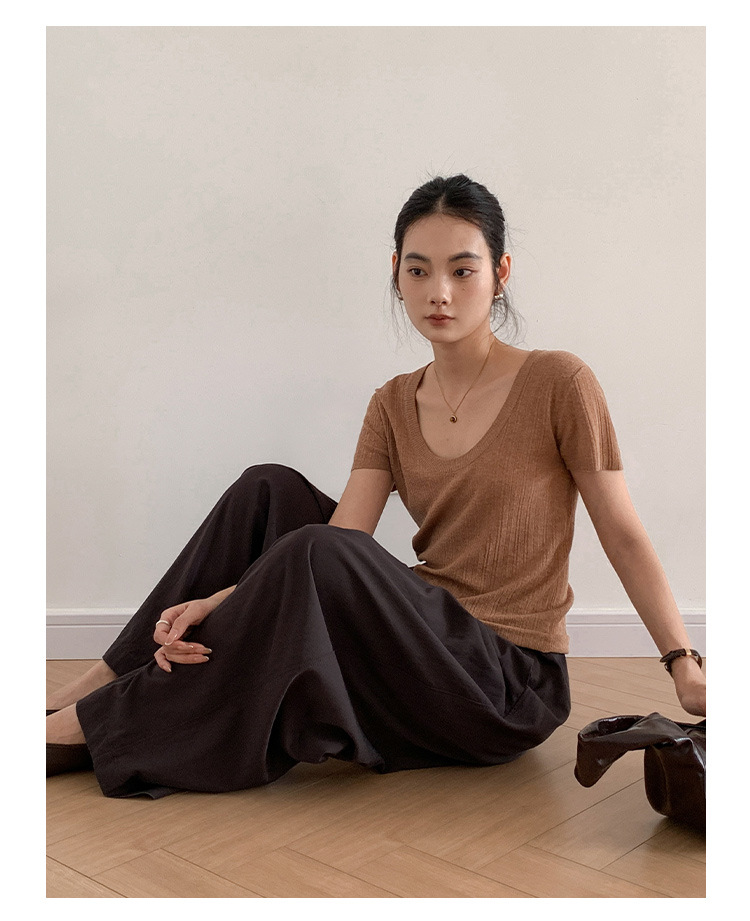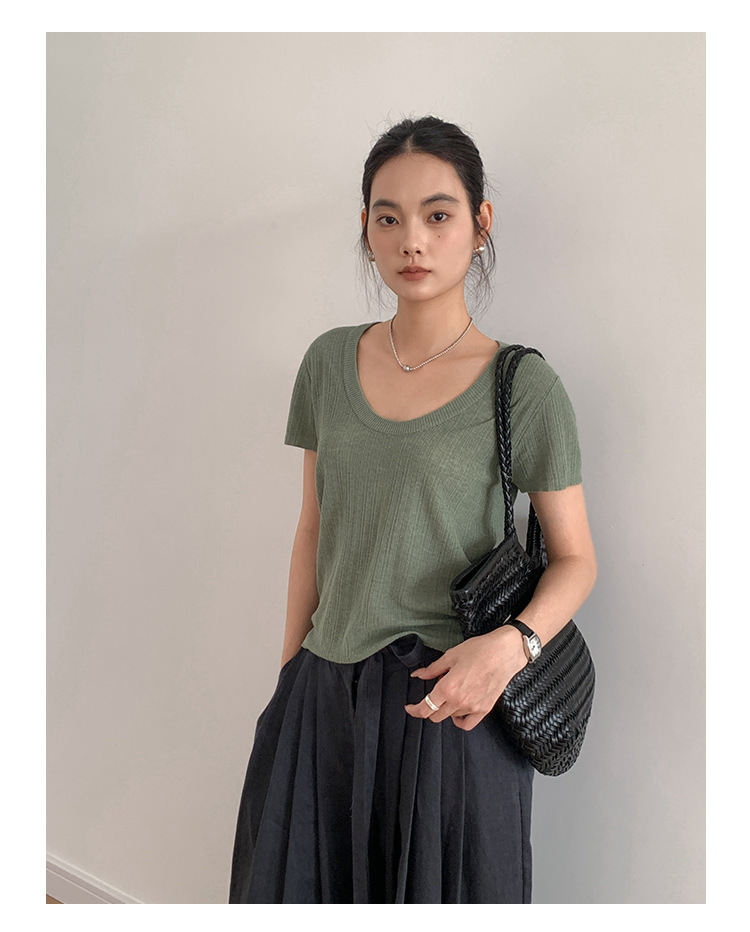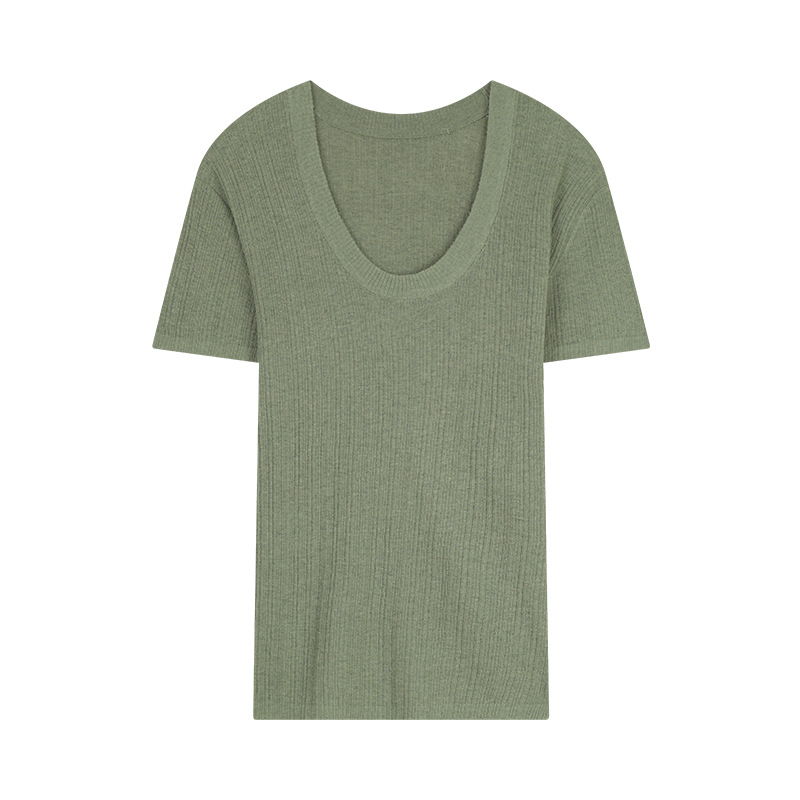 CLEAN SPACE 편안한 면베이스 셔츠 여자 2025 13 라인 새로운 피부 친화적 인 올 매치 니트 티셔츠 53151