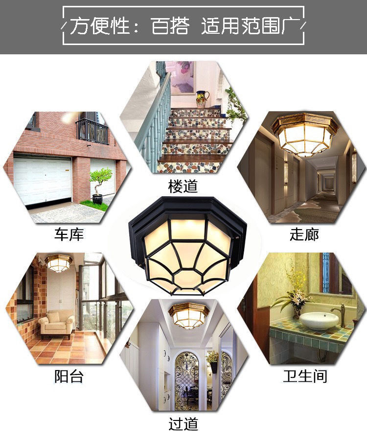 야외 천장 램프 입구 램프 야외 천장 램프 발코니 복도 유럽 레트로 방수 수분-증거 팔각형 램프