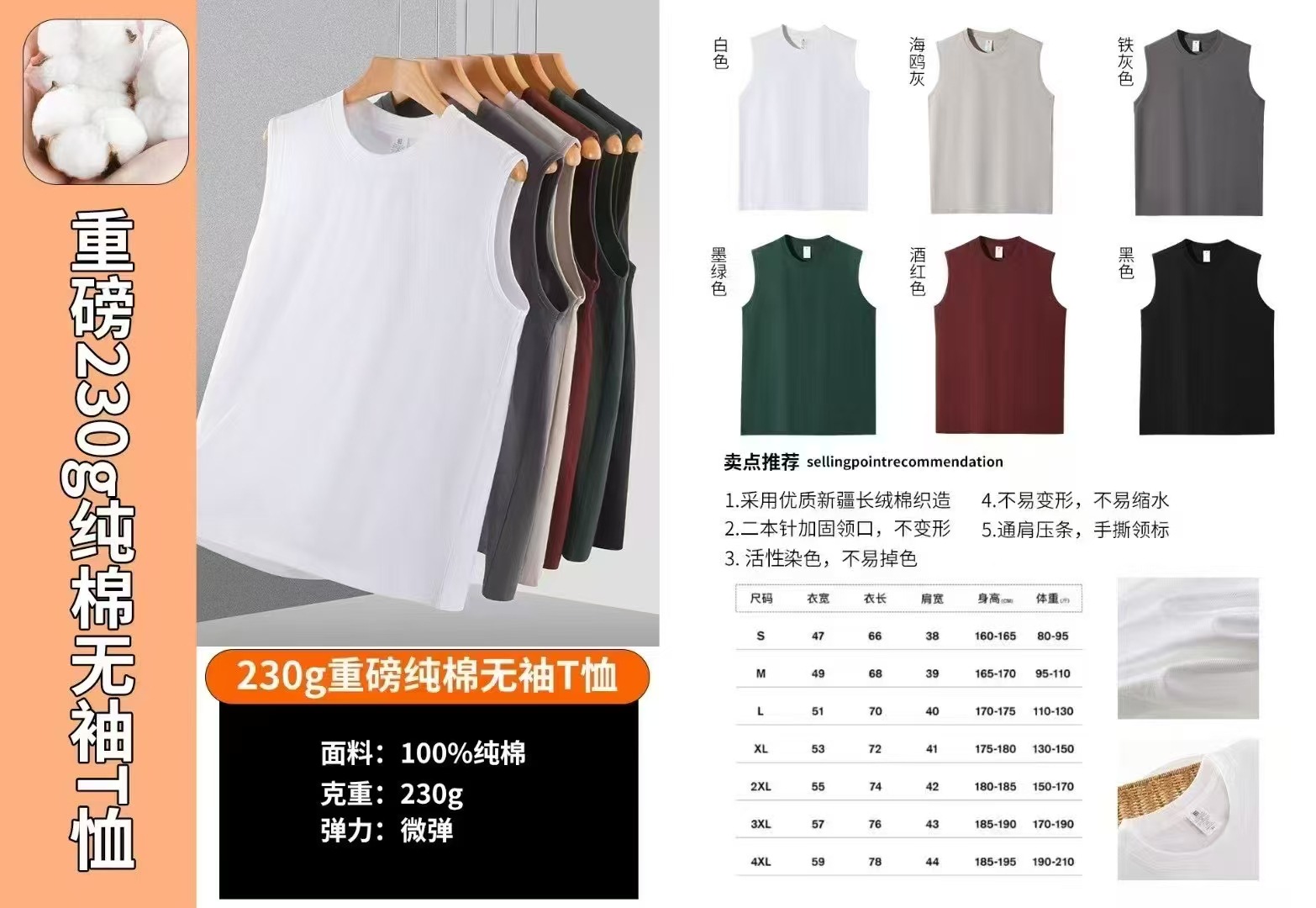 2025 봄과 여름 220g 일본 무거운 면화 여름 작은 목선 느슨한 남녀 스포츠 민소매 조끼스토어 가기