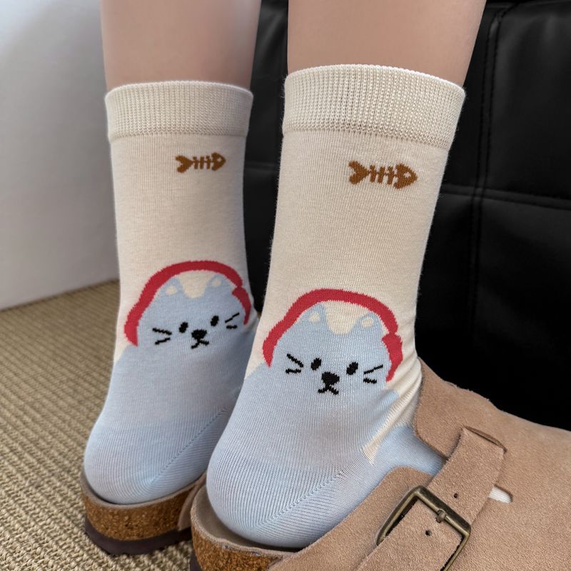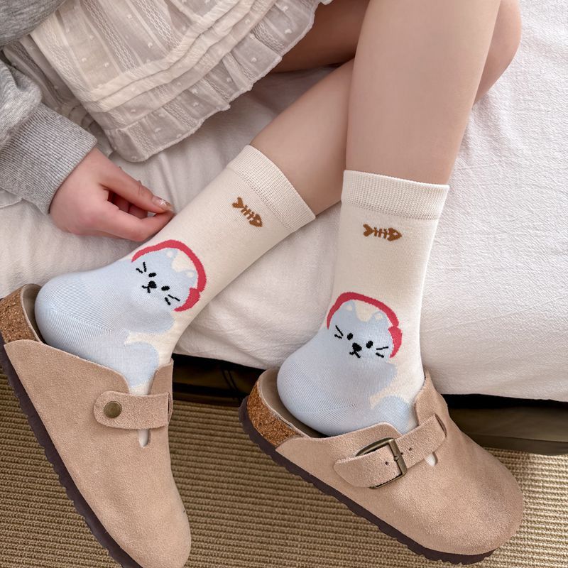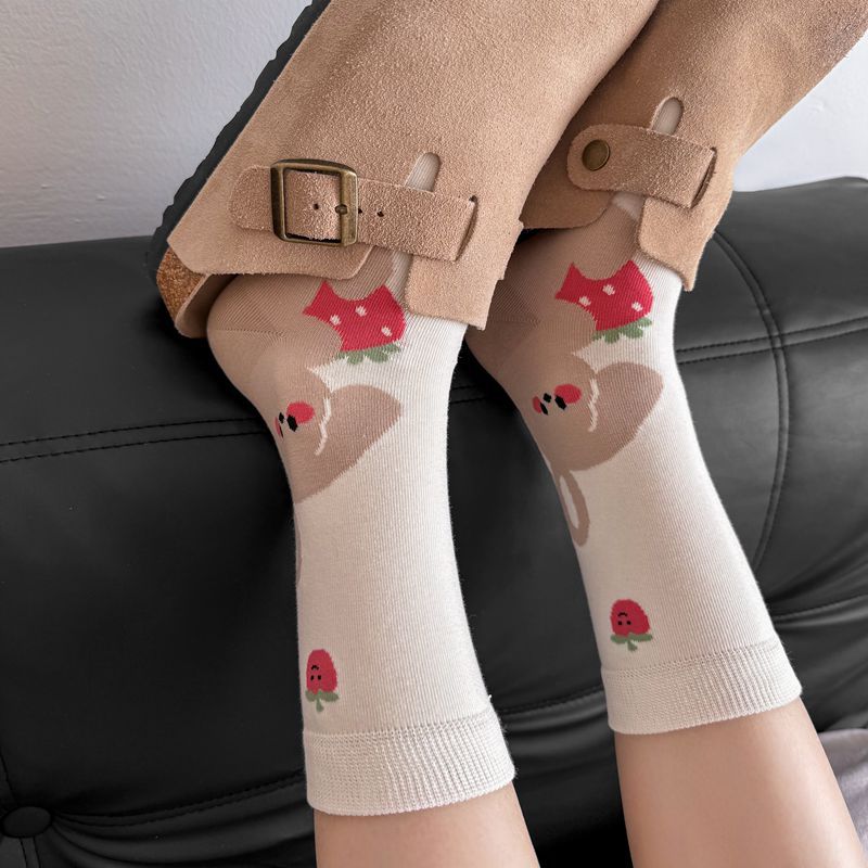 2025 봄과 여름 새로운 올인원 기계 귀여운 뼈없는 메쉬 튜브 양말 패션 다재다능한 여성면 양말 한국 버전 사계절