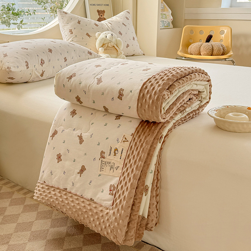 클래스 A 두꺼운 콩 벨벳 퀼트 코튼 에어컨 퀼트 코튼 싱글 여름 퀼트 봄과 가을 이불 학생 및 어린이스토어 가기