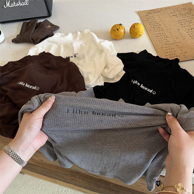 한국 어린이 아기베이스 셔츠 반 높은 칼라 인테리어 단색 편지 긴 소매 슬림핏 아기 탑 Ins