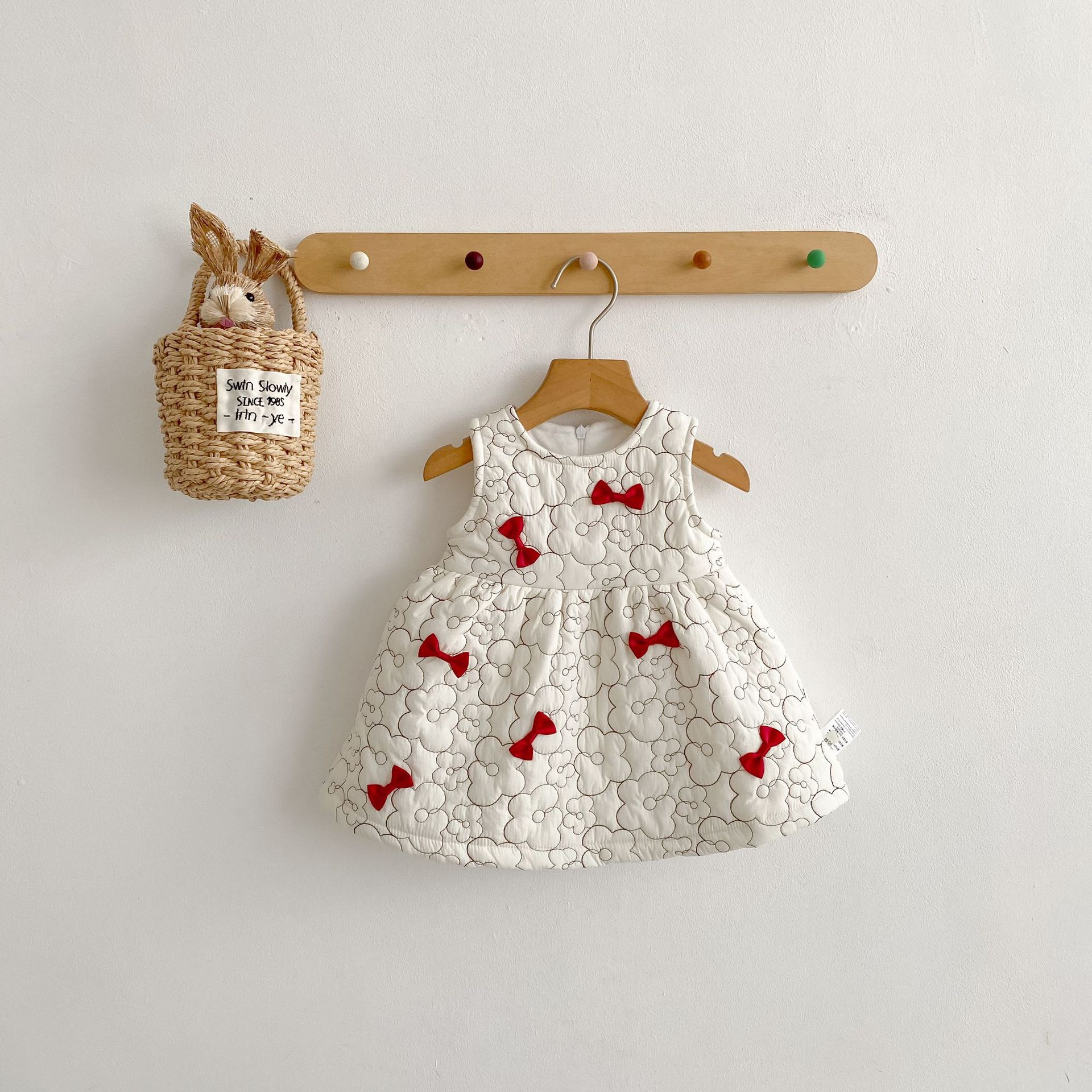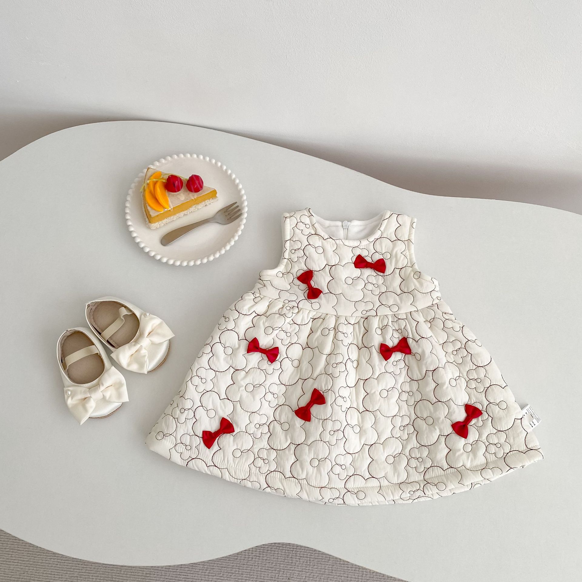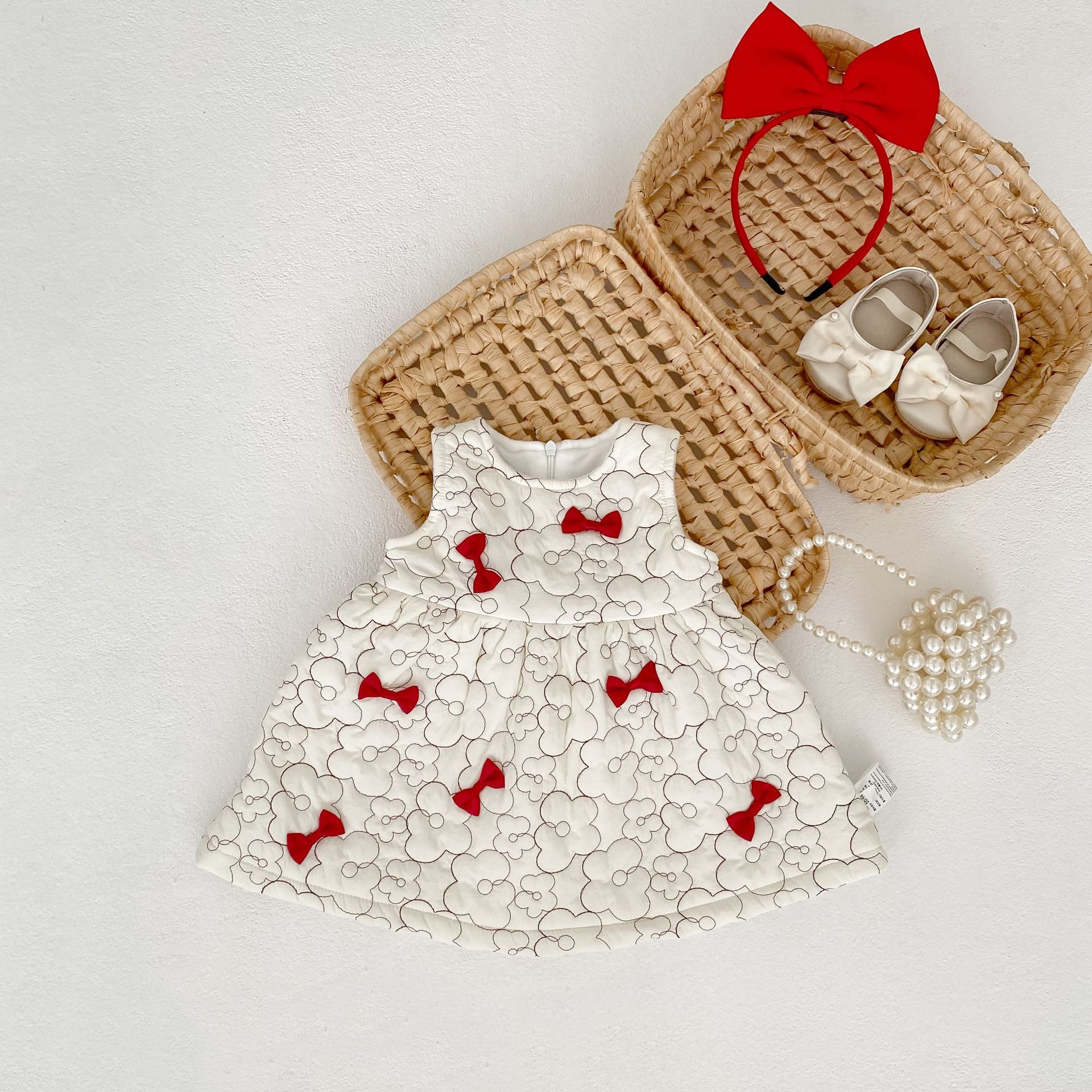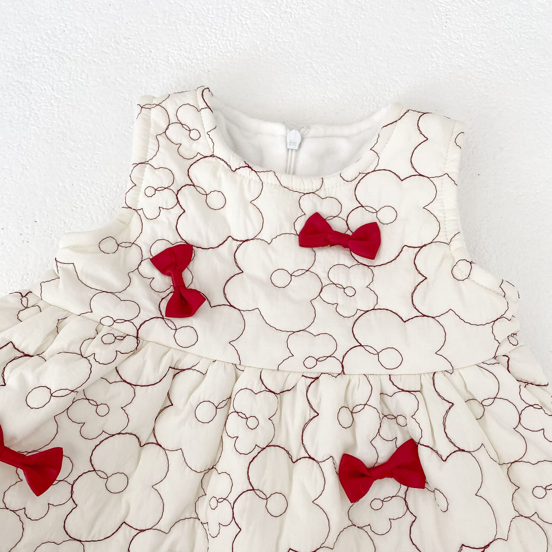 2025 두꺼운 겨울옷 여자아이 누빔 벨벳 리본 조끼 원피스 유아 여아 패셔너블한 드레스스토어 가기