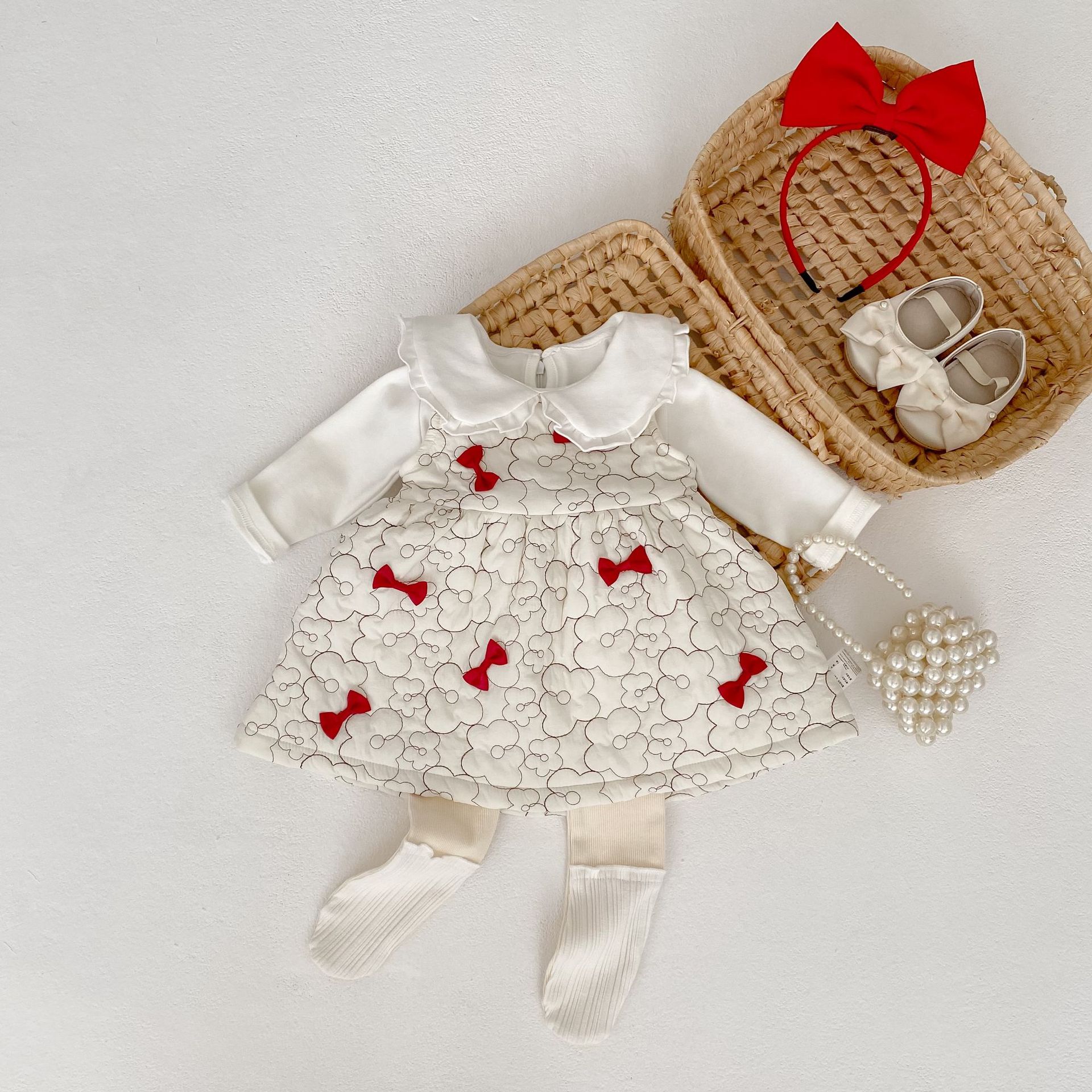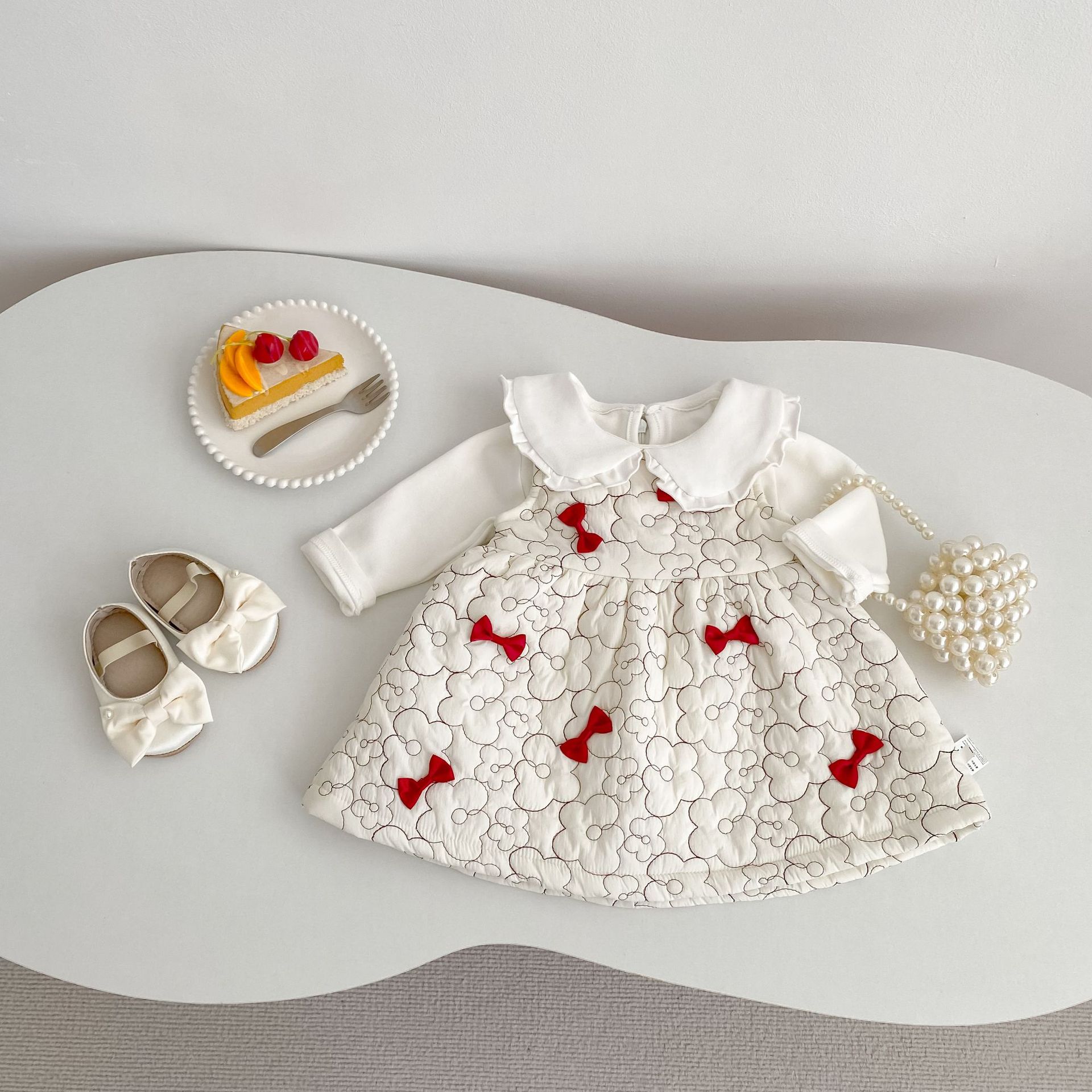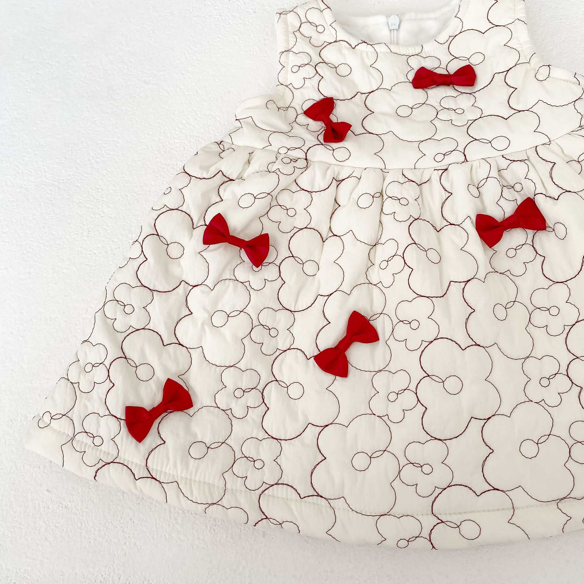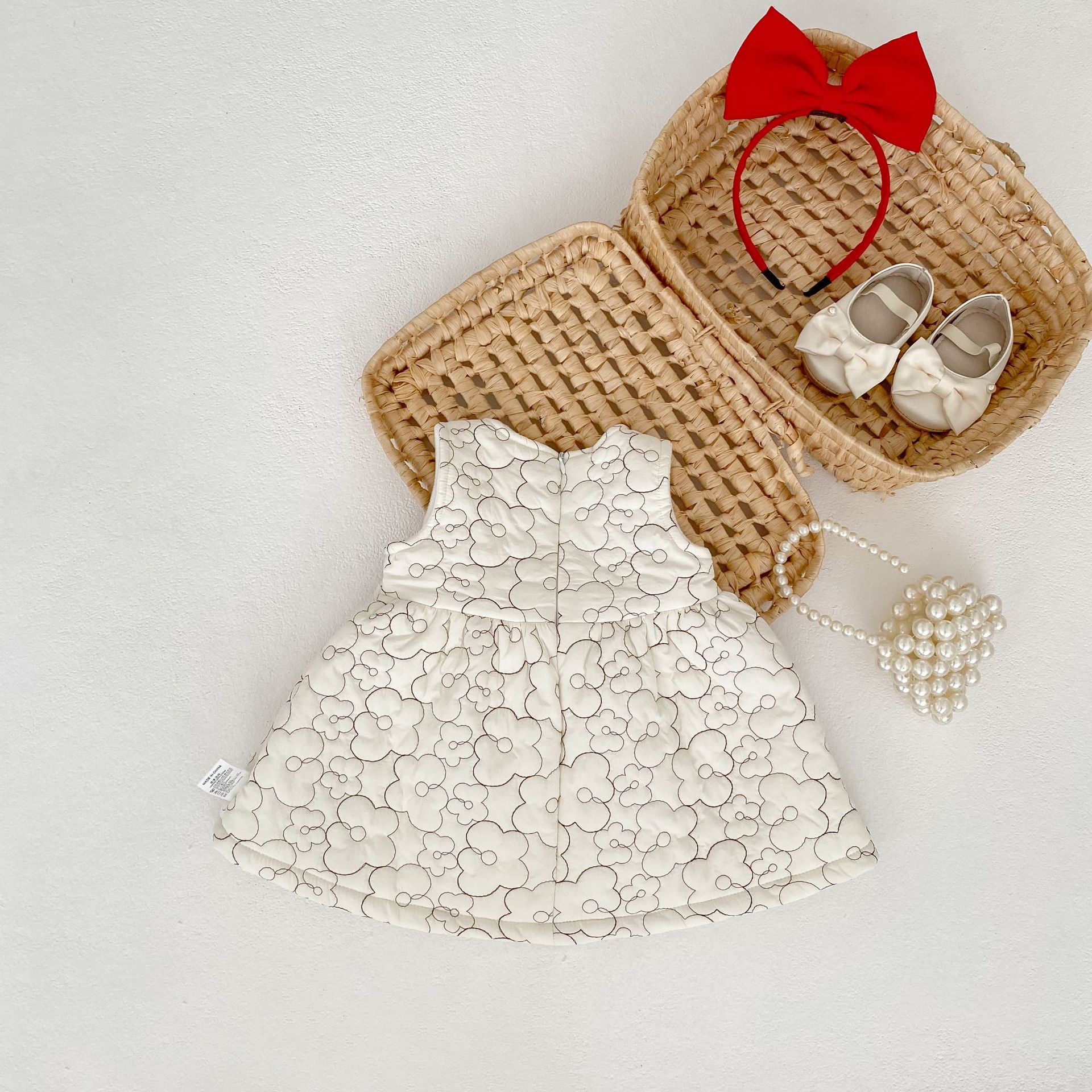 2025 두꺼운 겨울옷 여자아이 누빔 벨벳 리본 조끼 원피스 유아 여아 패셔너블한 드레스스토어 가기