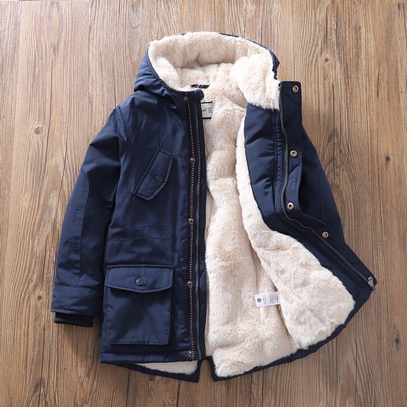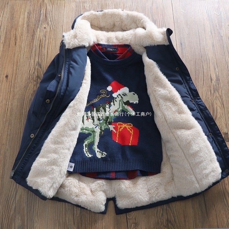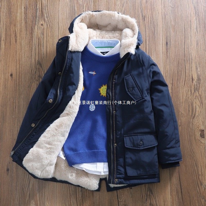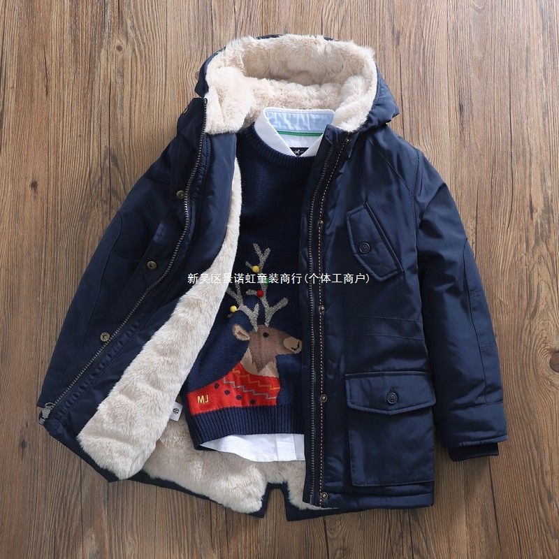 아동용 겨울 의류, 남아용 중간 길이 벨벳 재킷, 두꺼운 재킷, 면 코트, 겨울 면 코트, 대외 무역 아동복스토어 가기