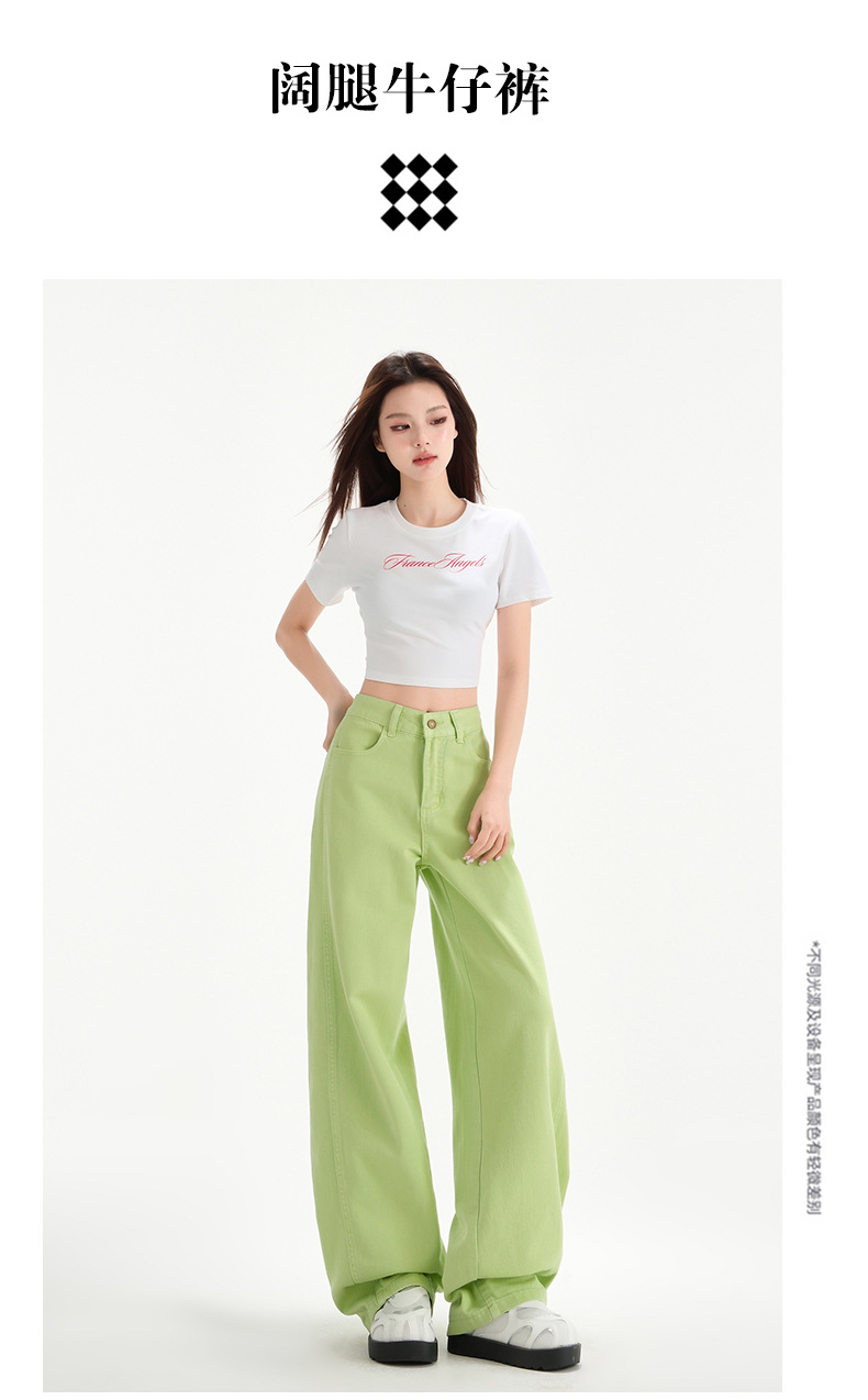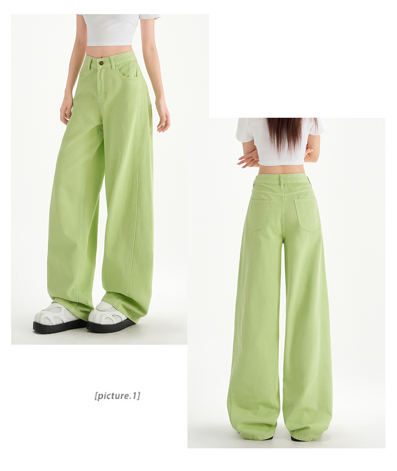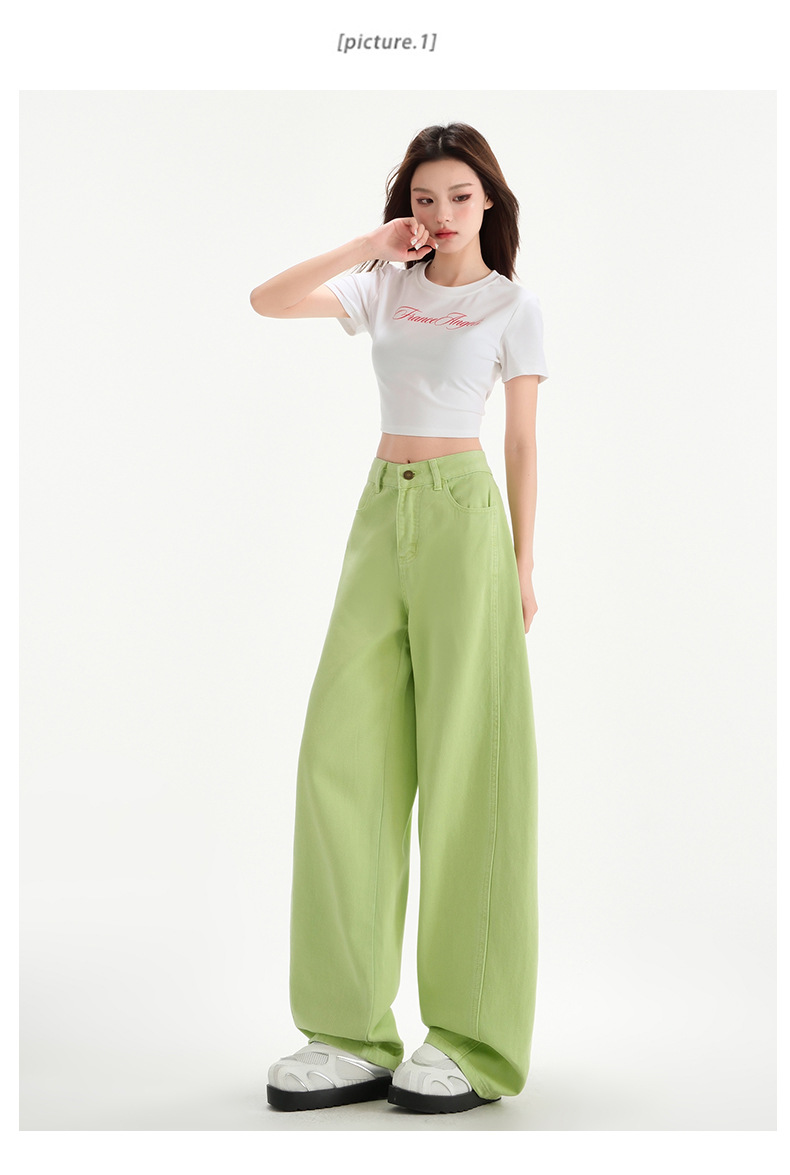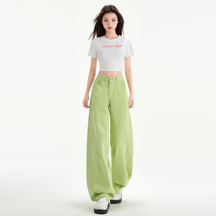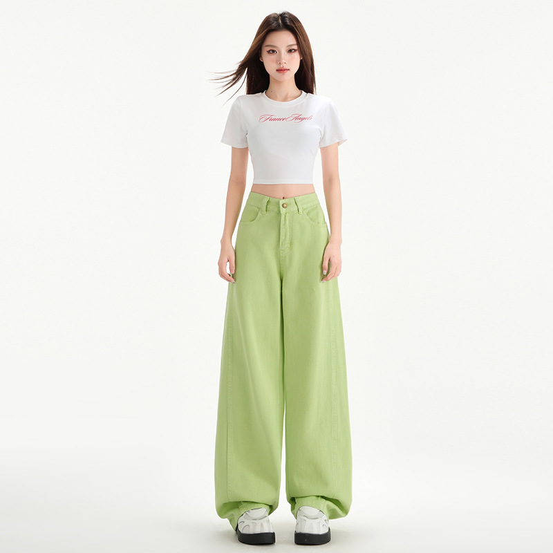애플 그린 와이드 레그 딥 트렌디 한 트렌디 한 스트레이트 청바지 여성 2025 년 봄과 여름 얇은 피규어 인스타그램 스타일 스트레이트 팬츠 올매치