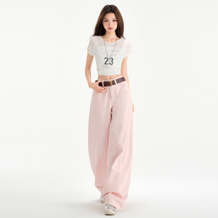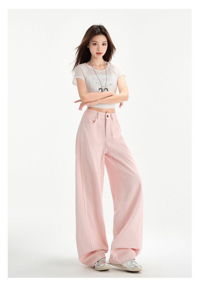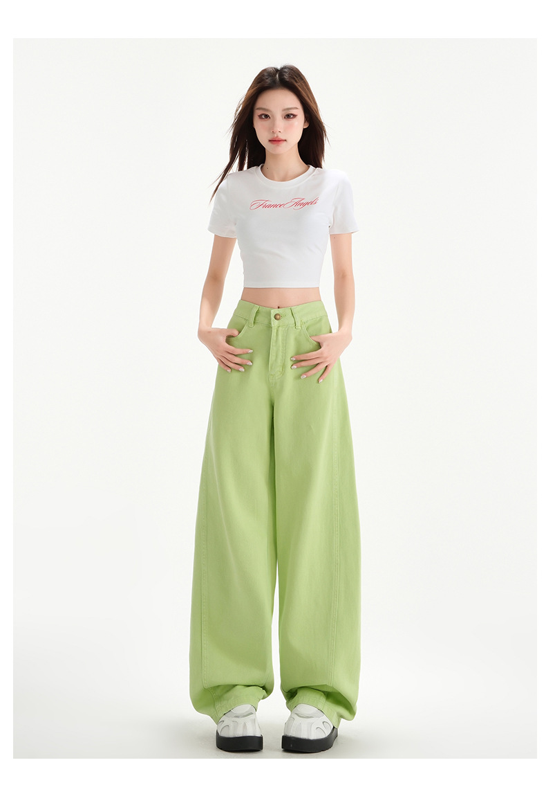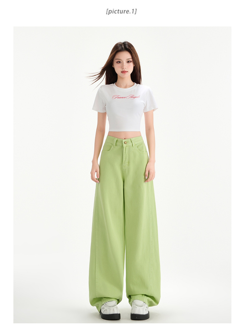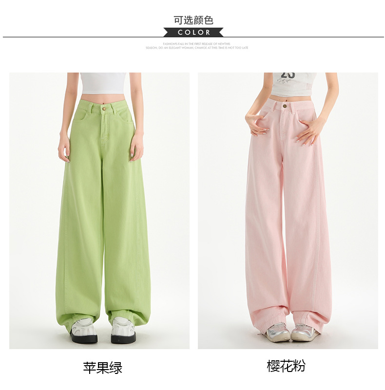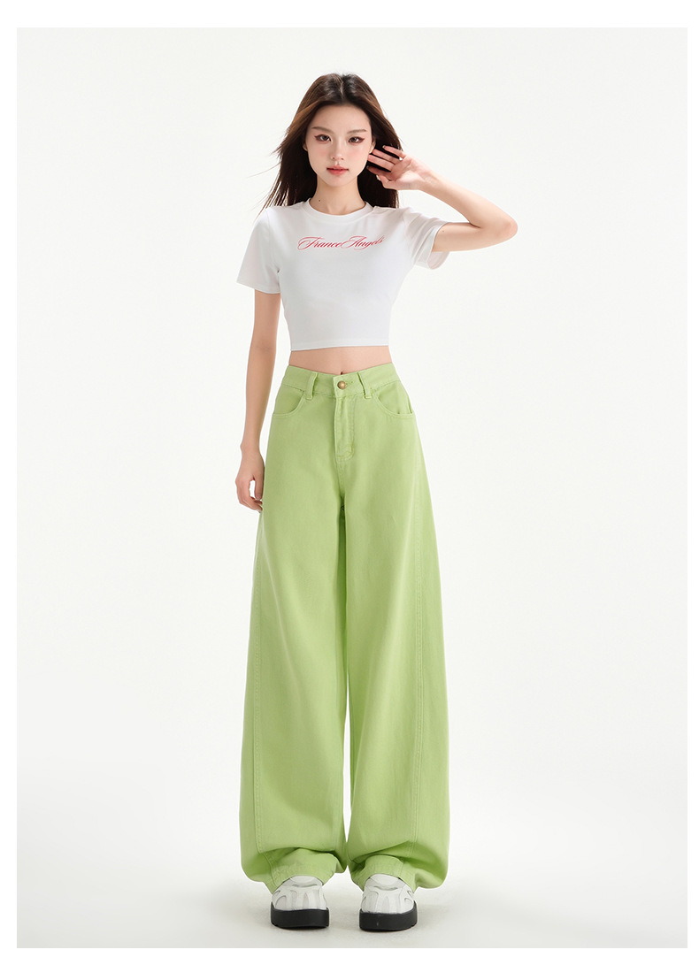 애플 그린 와이드 레그 딥 트렌디 한 트렌디 한 스트레이트 청바지 여성 2025 년 봄과 여름 얇은 피규어 인스타그램 스타일 스트레이트 팬츠 올매치
