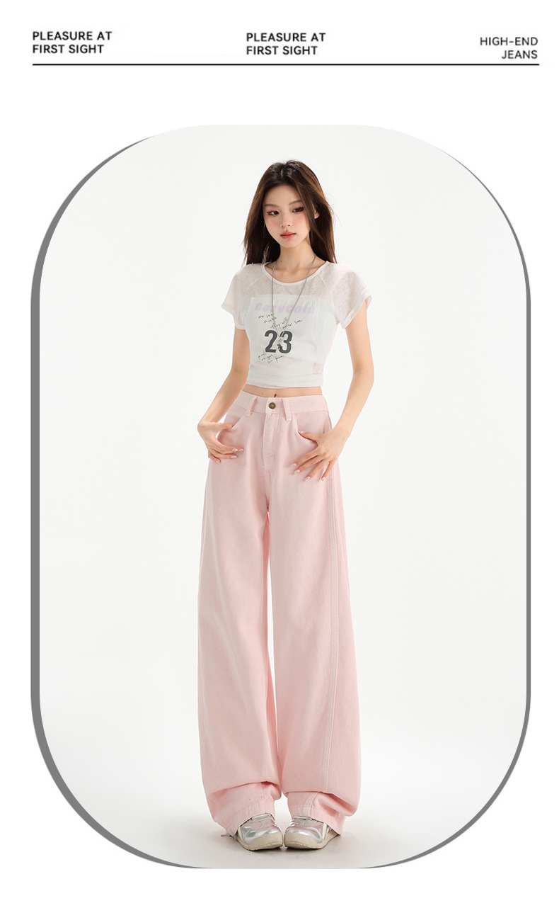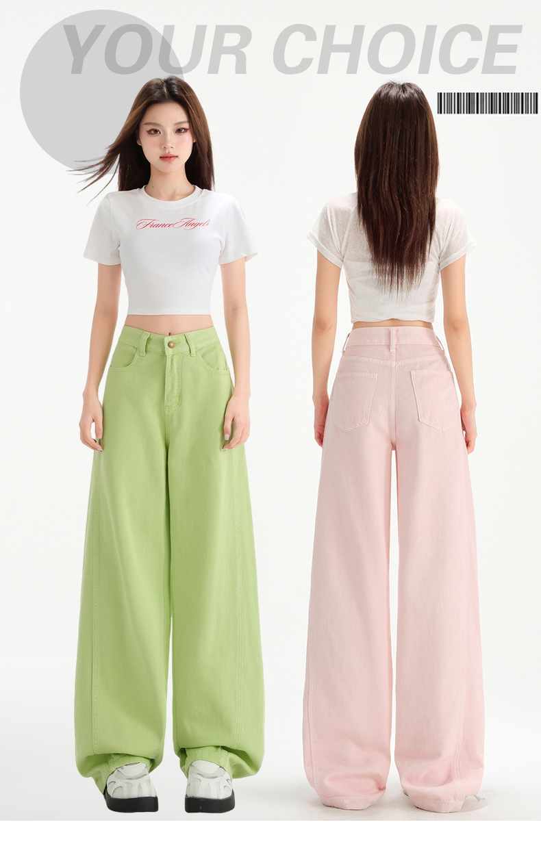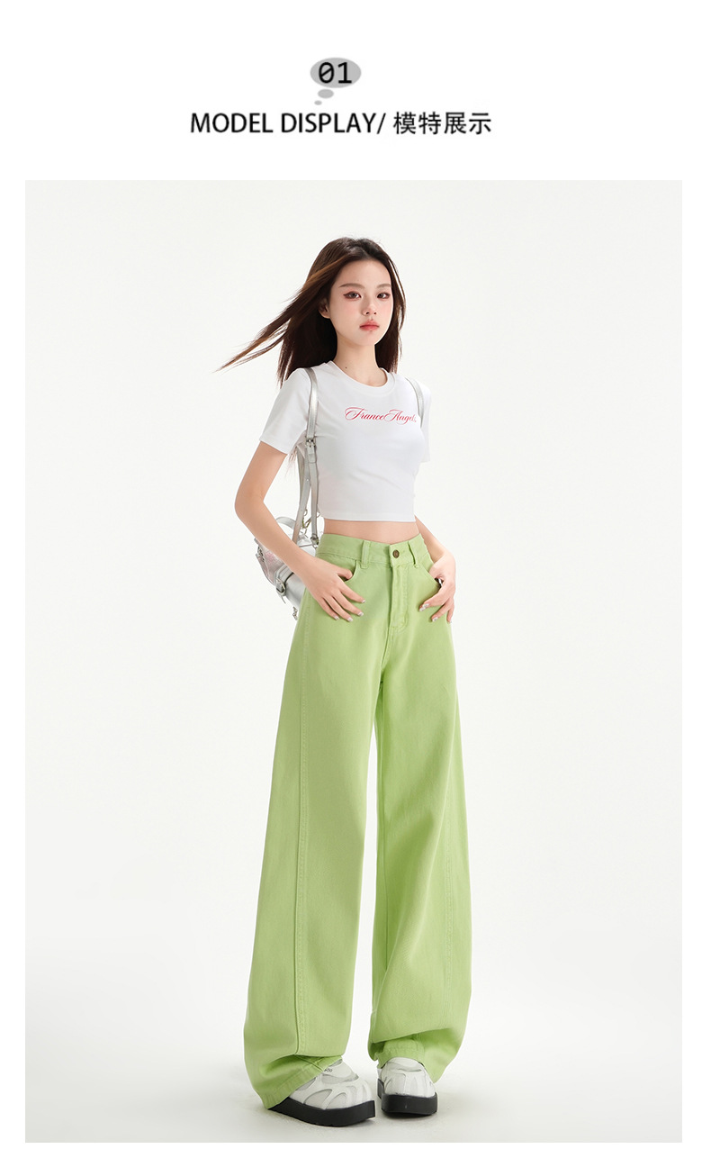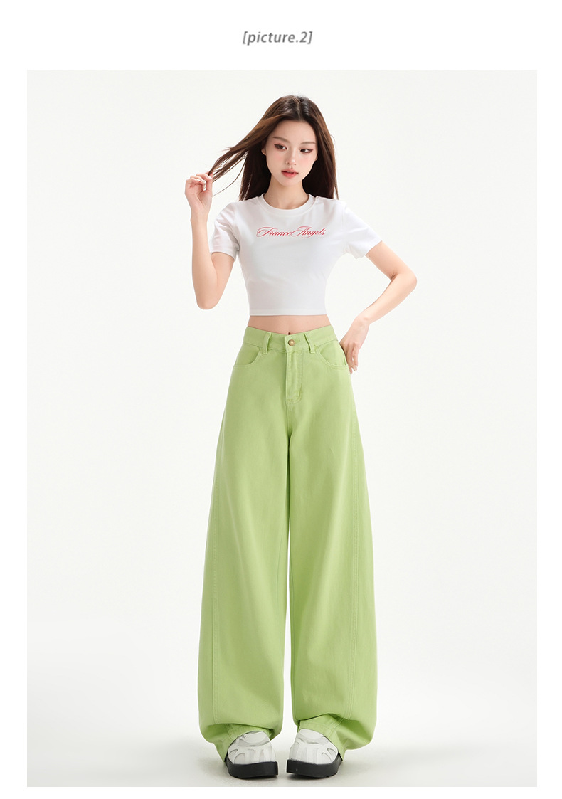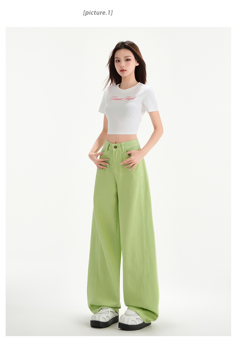 애플 그린 와이드 레그 딥 트렌디 한 트렌디 한 스트레이트 청바지 여성 2025 년 봄과 여름 얇은 피규어 인스타그램 스타일 스트레이트 팬츠 올매치스토어 가기