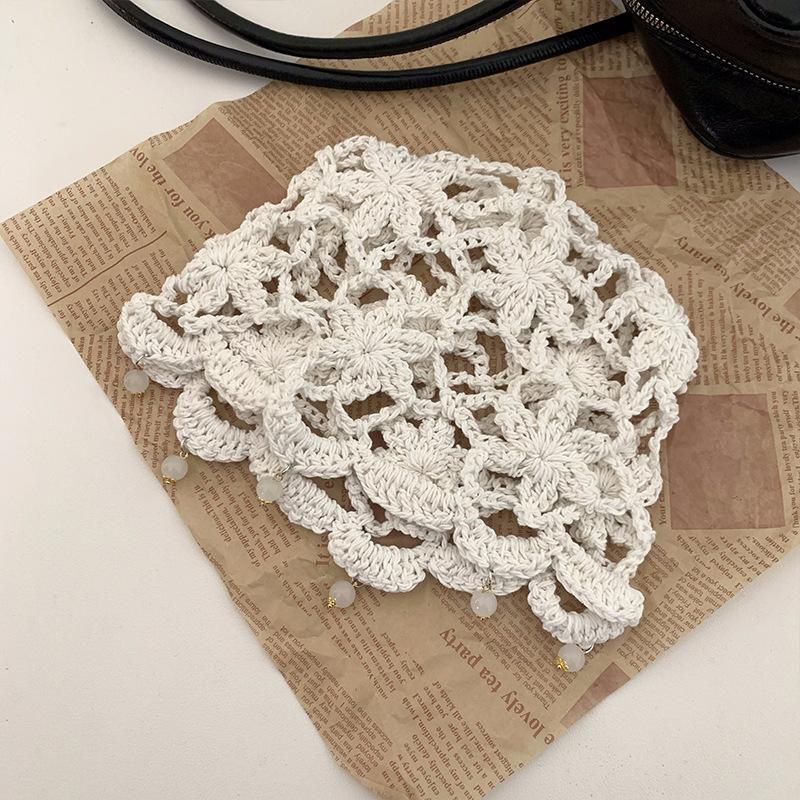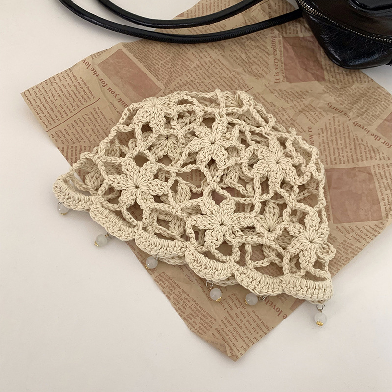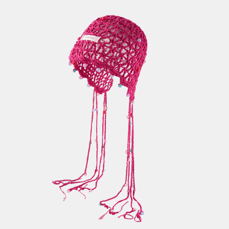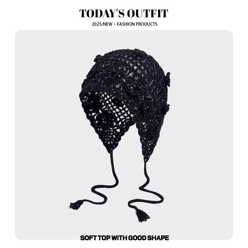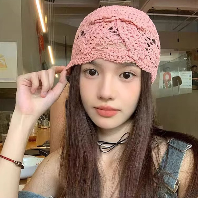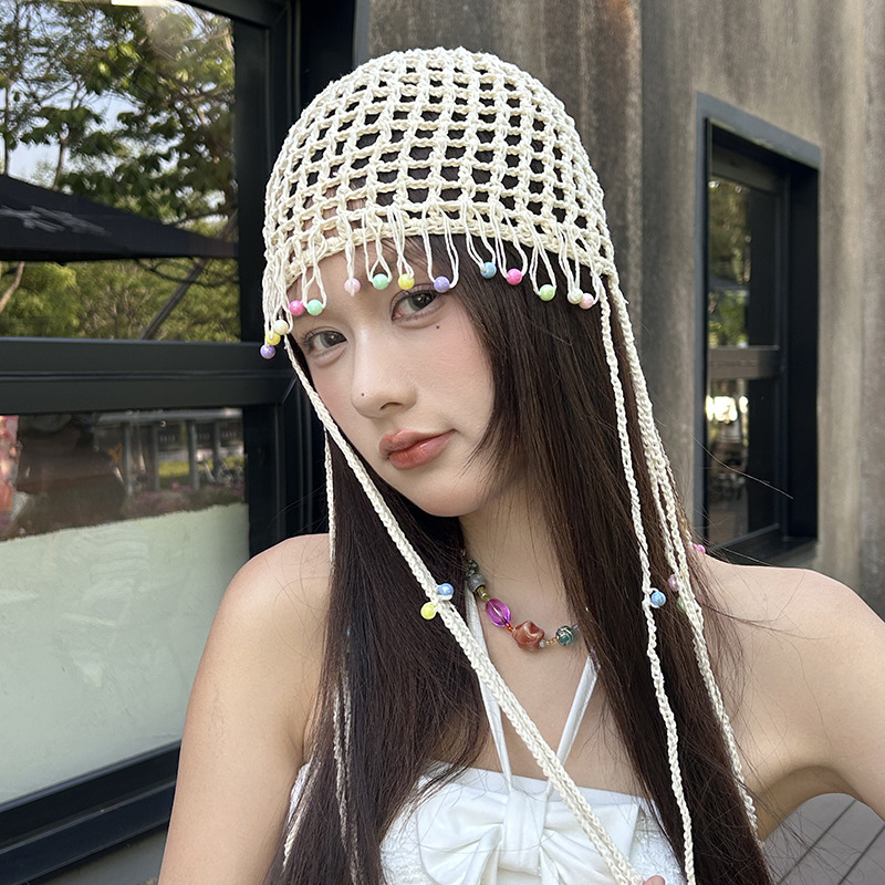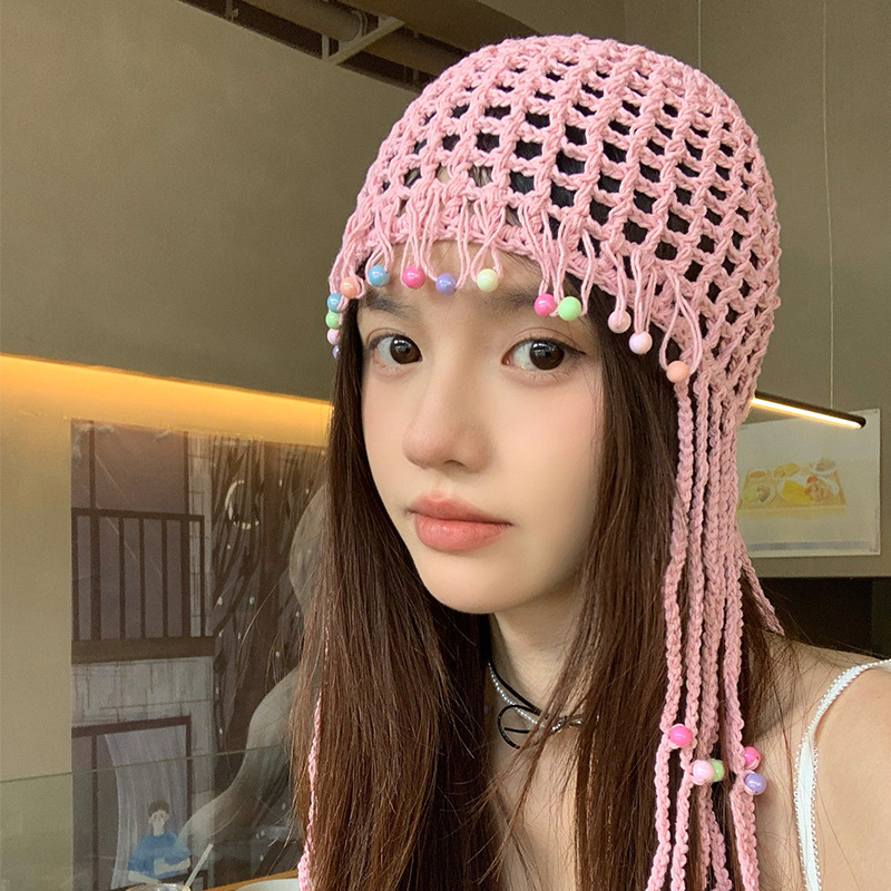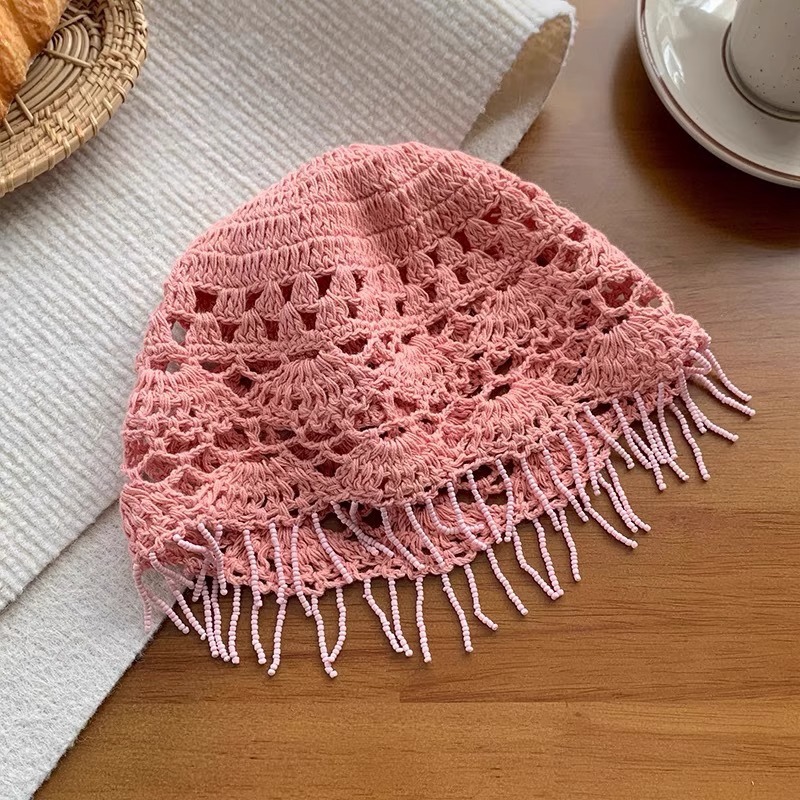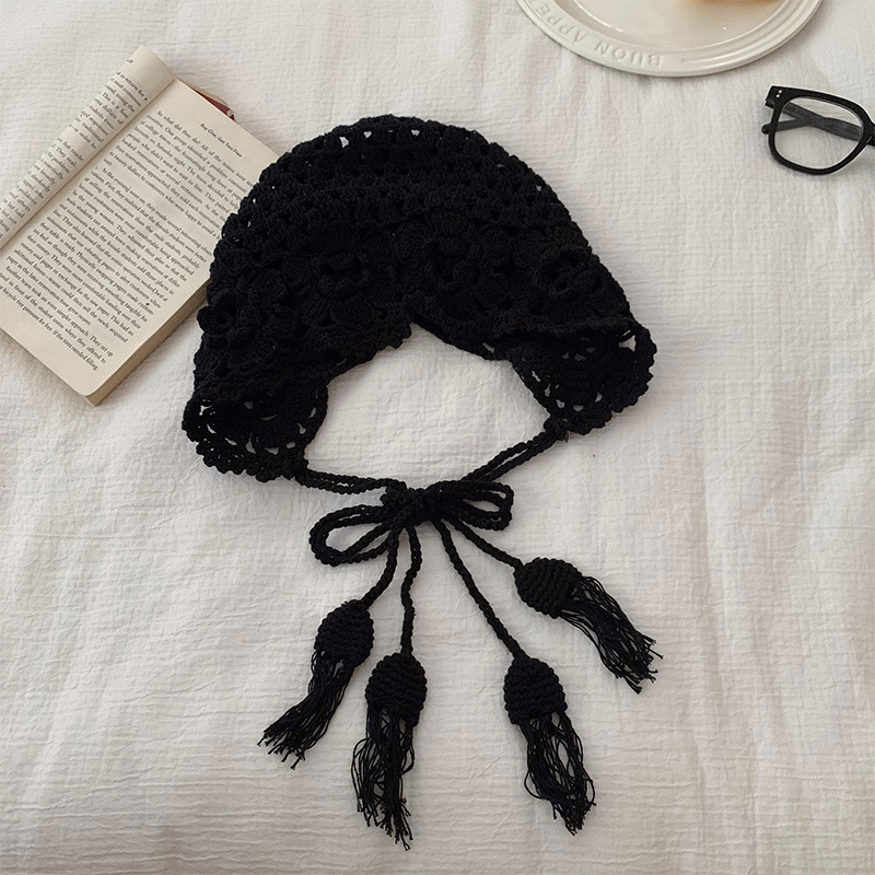 여성용 봄 여름 손으로 짠 중공 바오터우 모자, 뜨개질 민족 스타일 술 스트랩 풀오버 니트 모자, 다용도스토어 가기