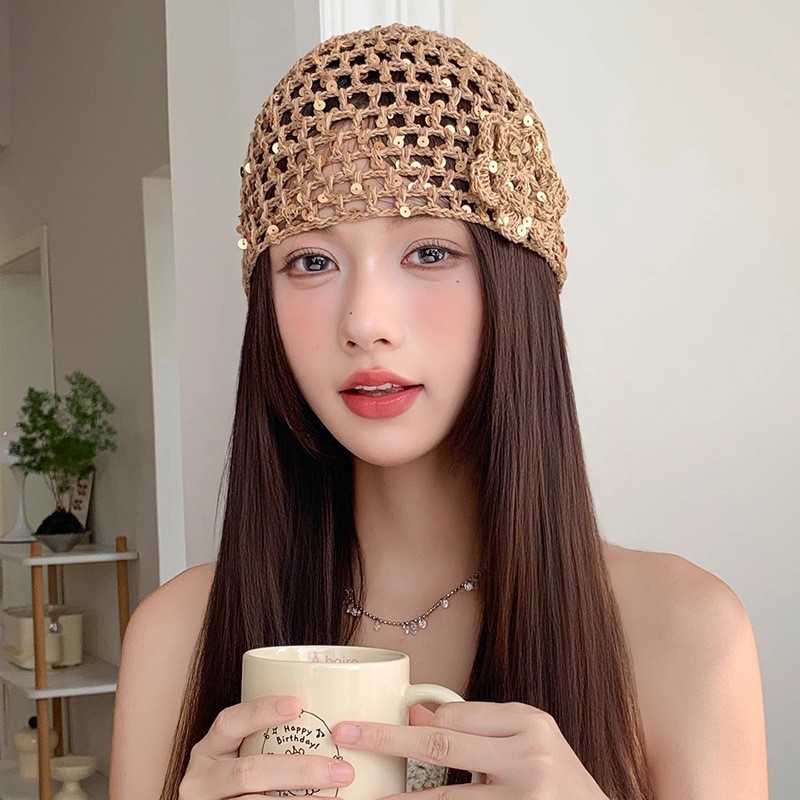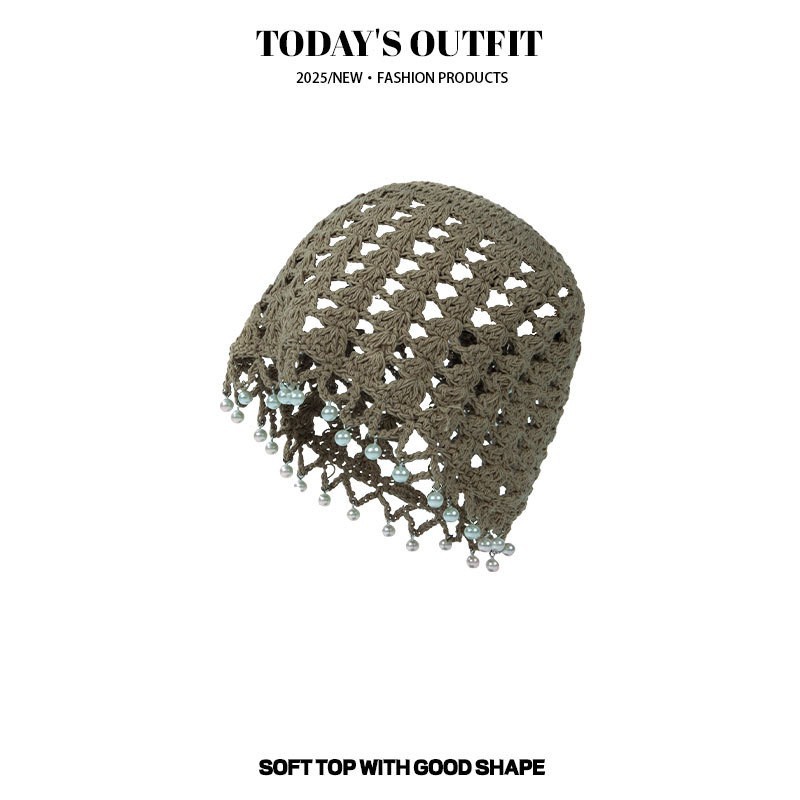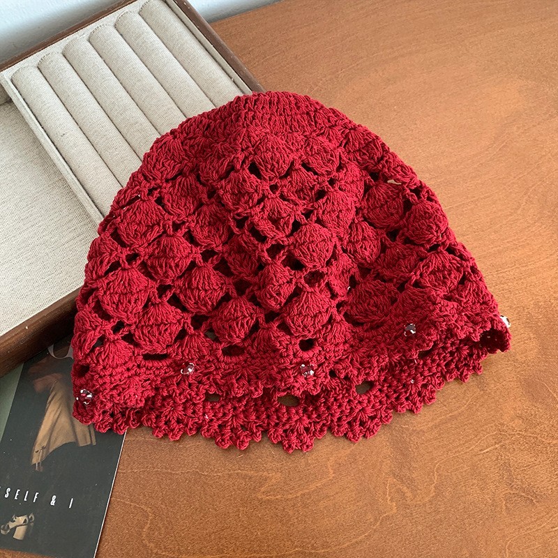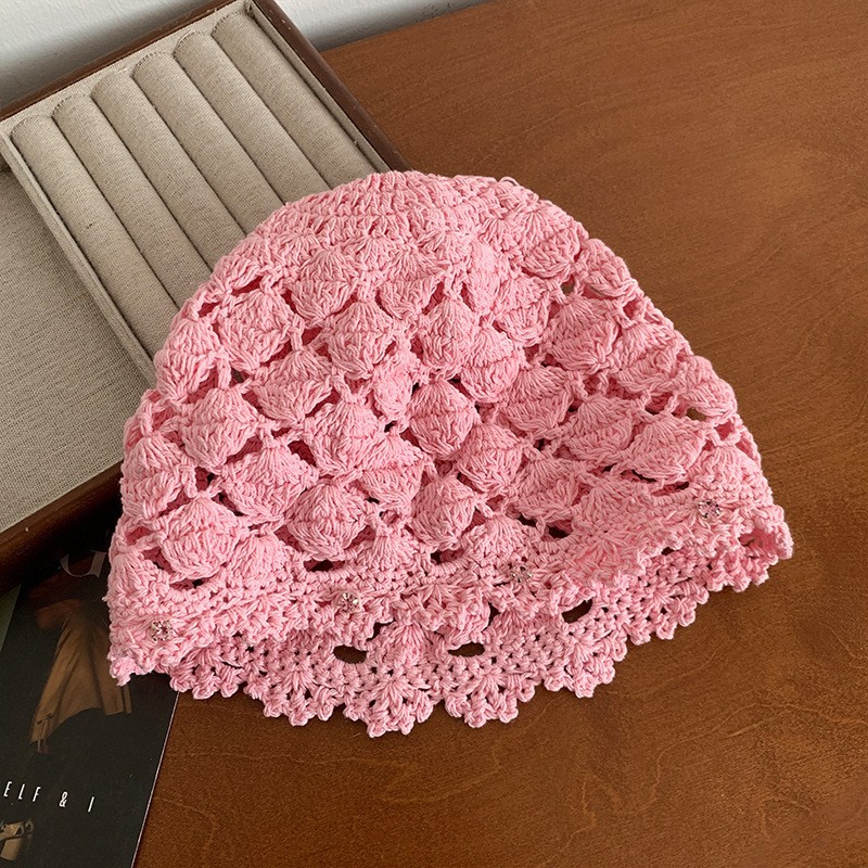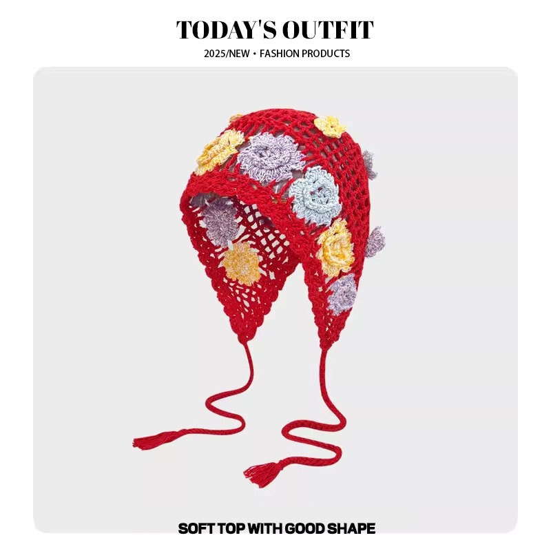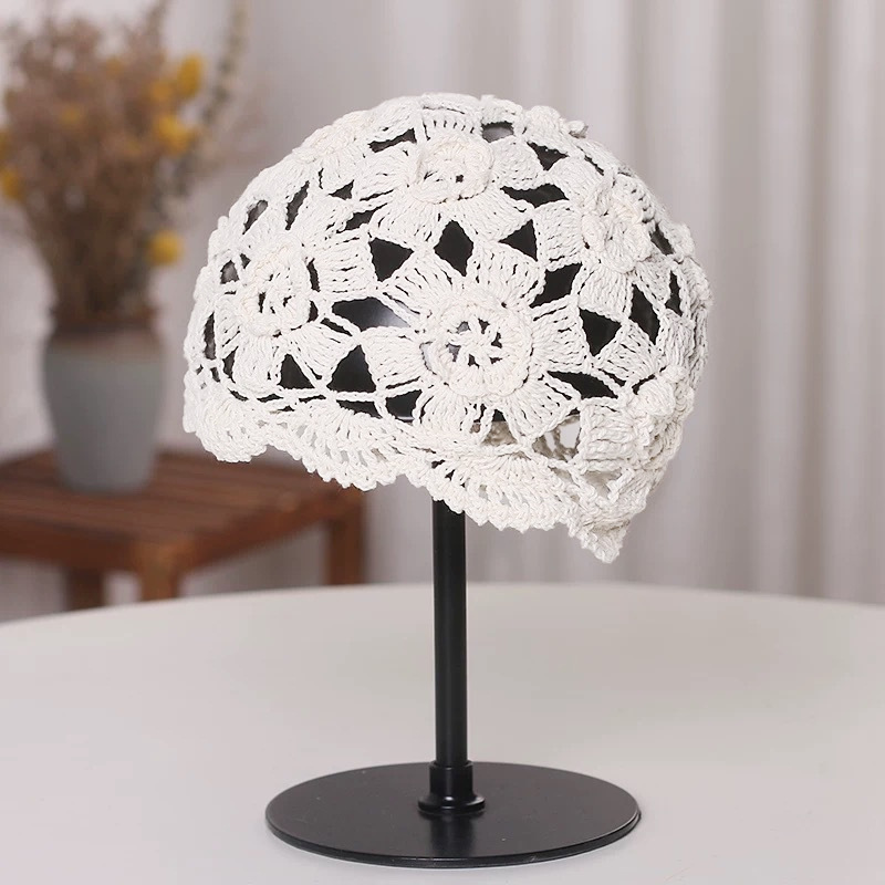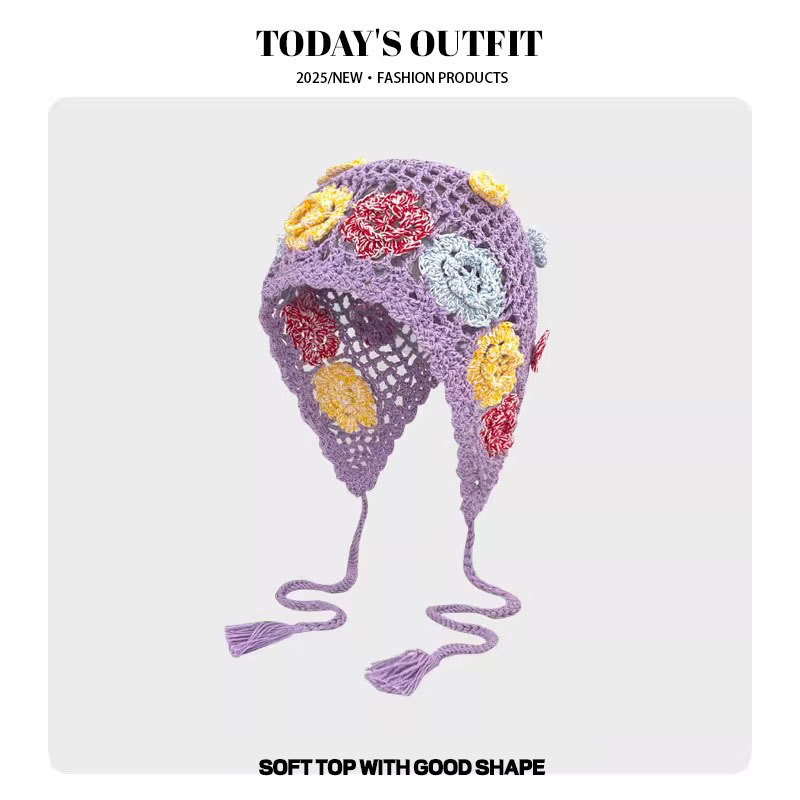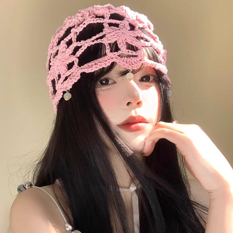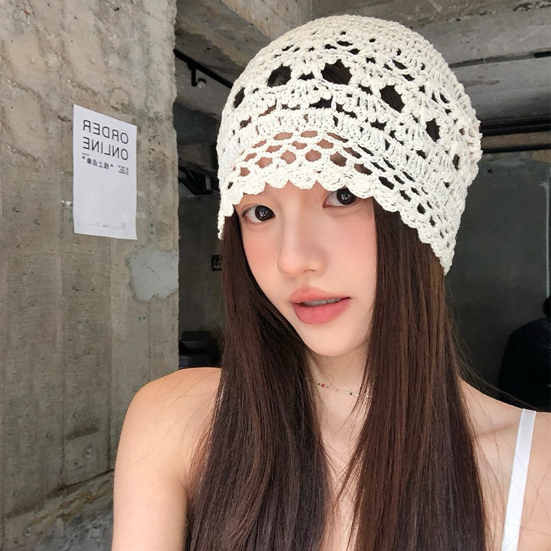 여성용 봄 여름 손으로 짠 중공 바오터우 모자, 뜨개질 민족 스타일 술 스트랩 풀오버 니트 모자, 다용도스토어 가기