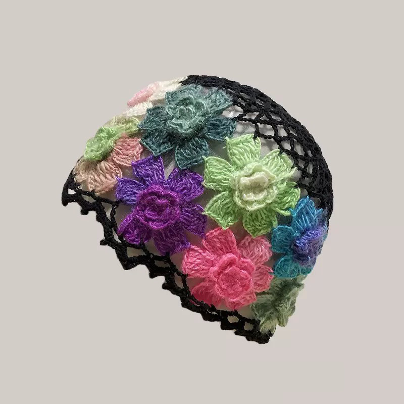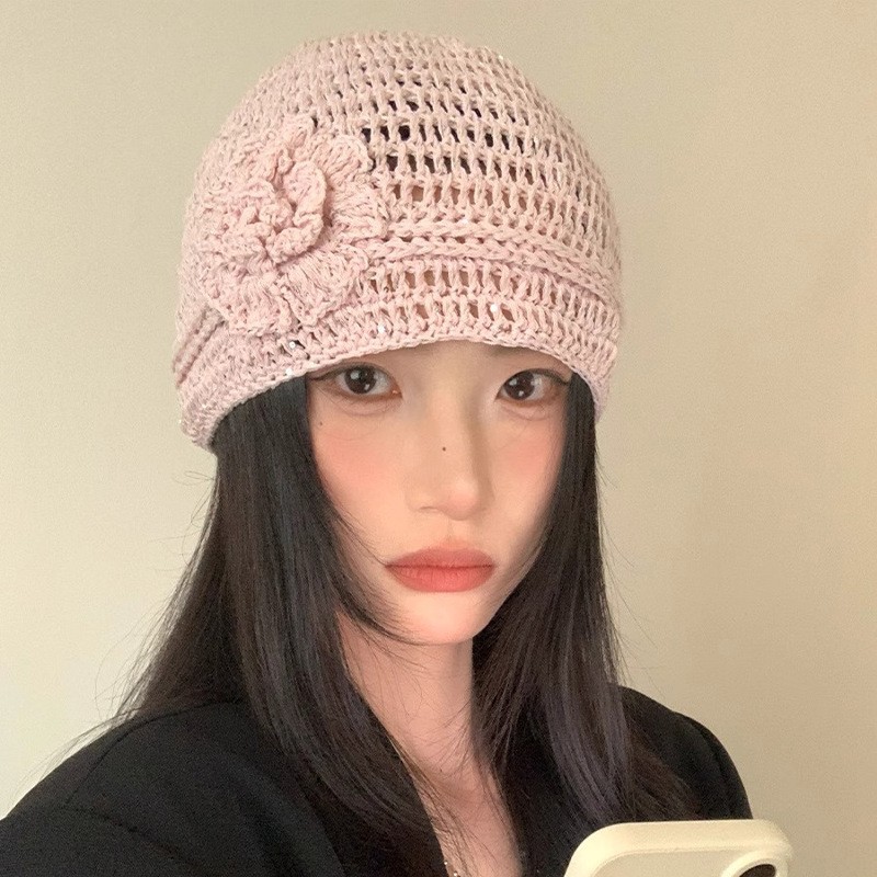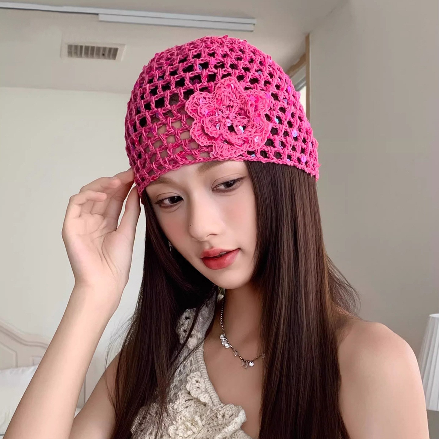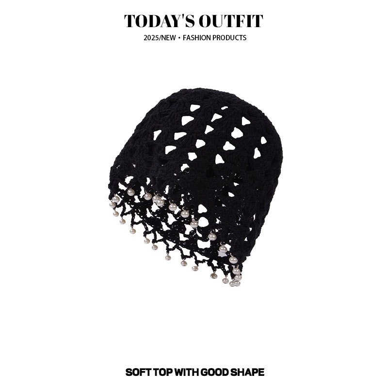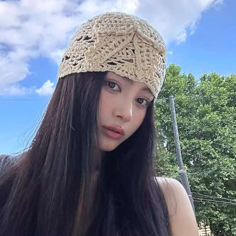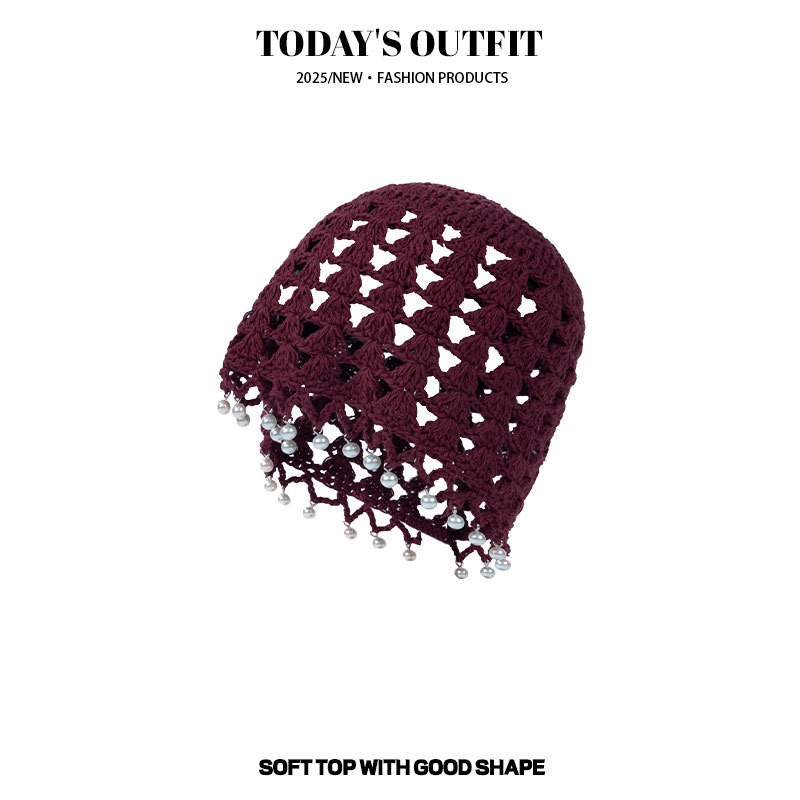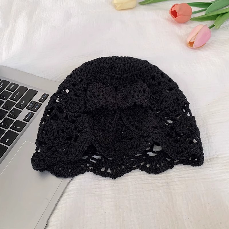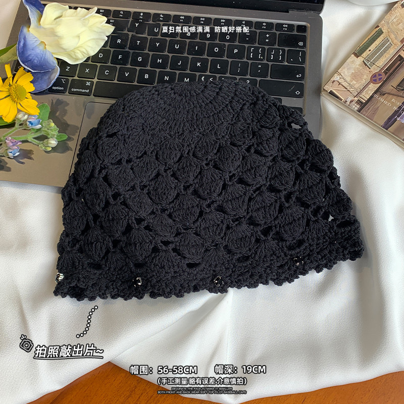 여성용 봄 여름 손으로 짠 중공 바오터우 모자, 뜨개질 민족 스타일 술 스트랩 풀오버 니트 모자, 다용도스토어 가기