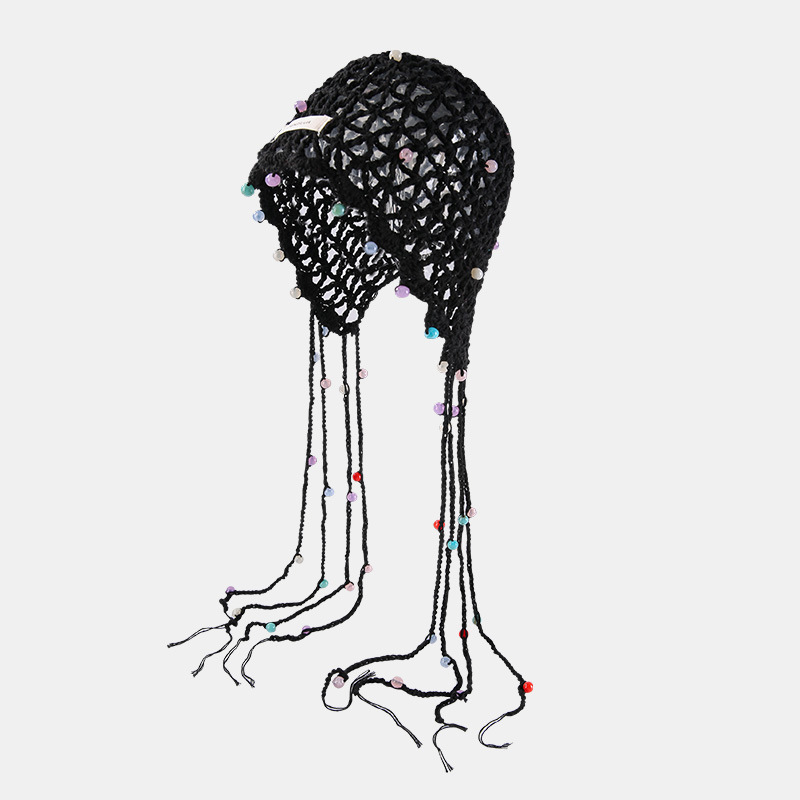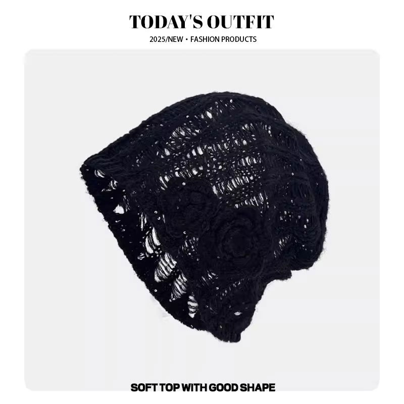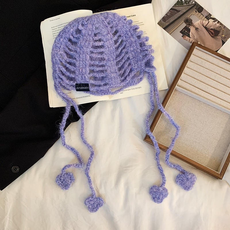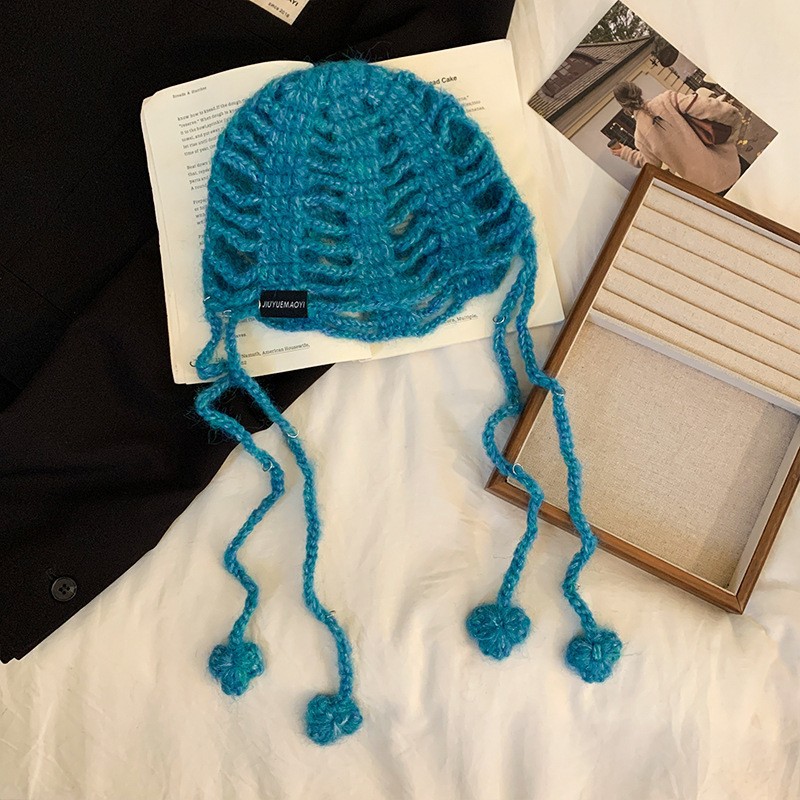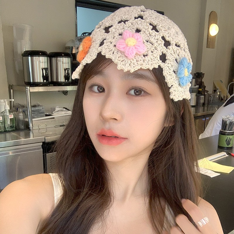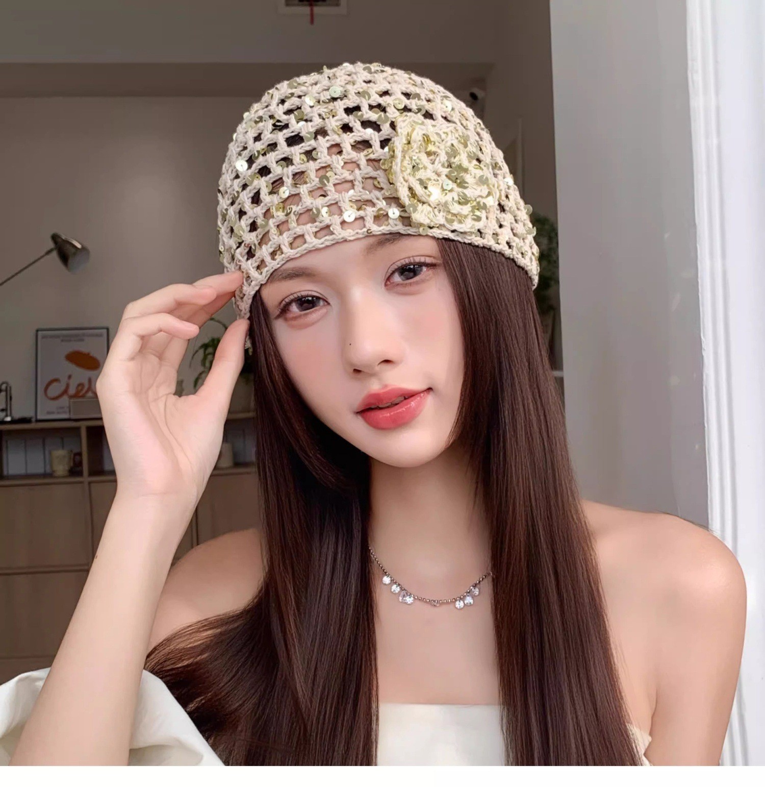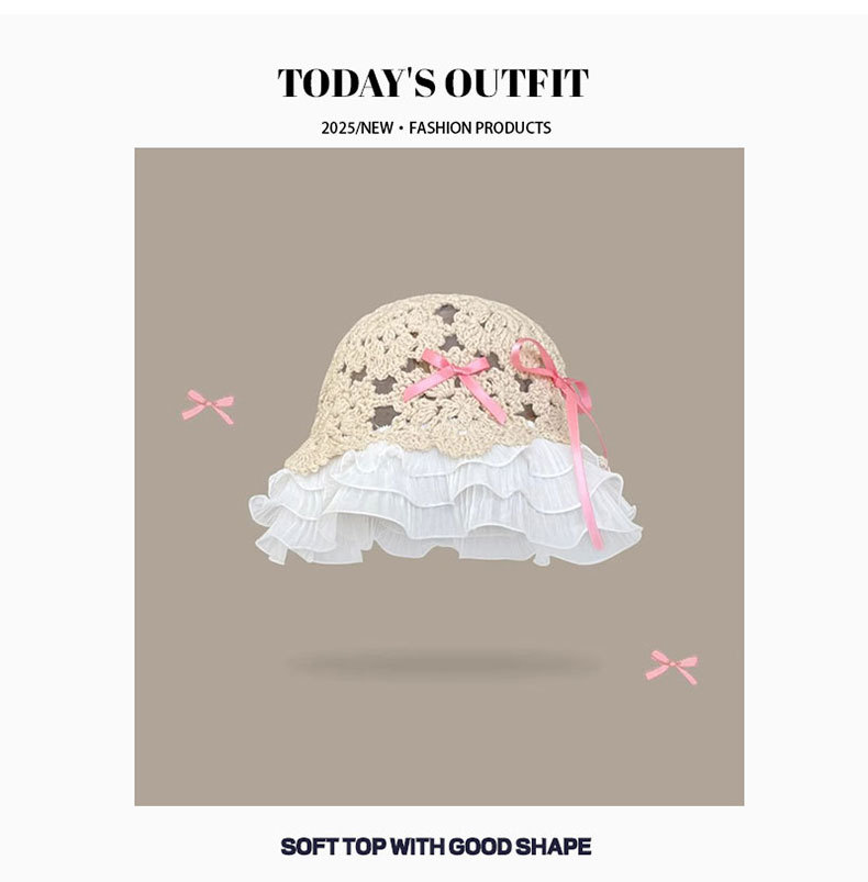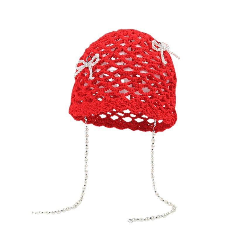 여성용 봄 여름 손으로 짠 중공 바오터우 모자, 뜨개질 민족 스타일 술 스트랩 풀오버 니트 모자, 다용도스토어 가기