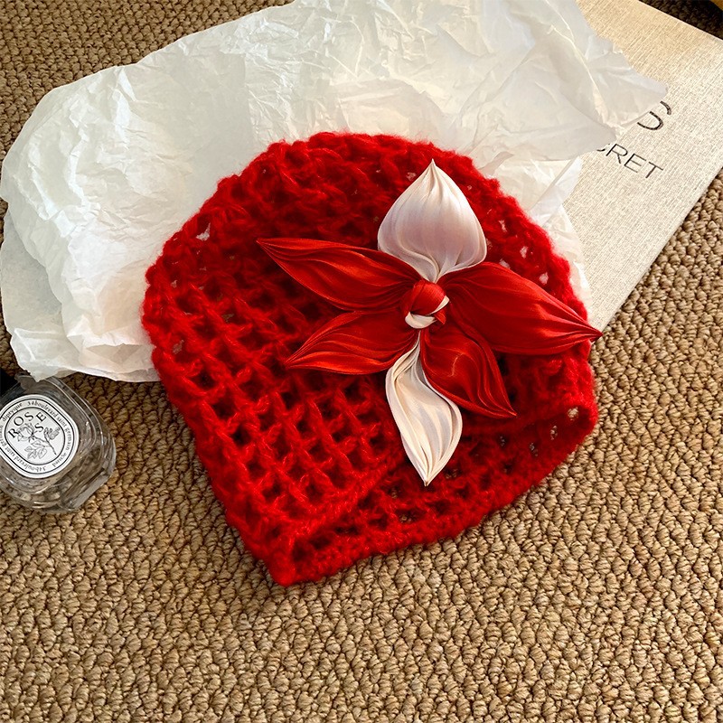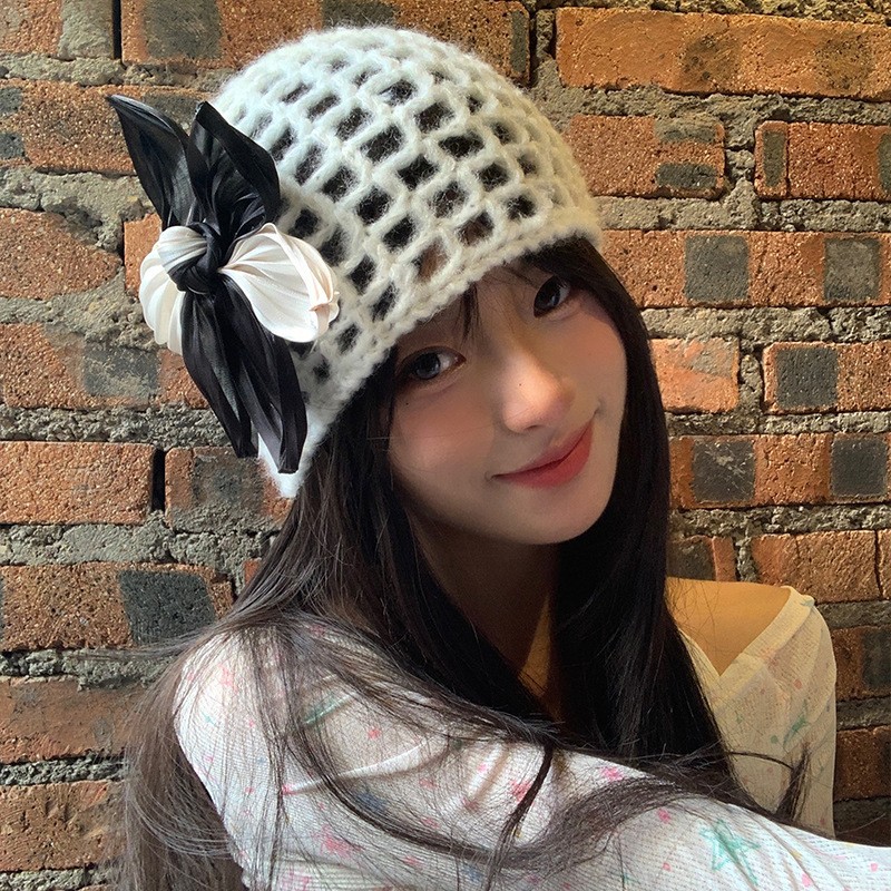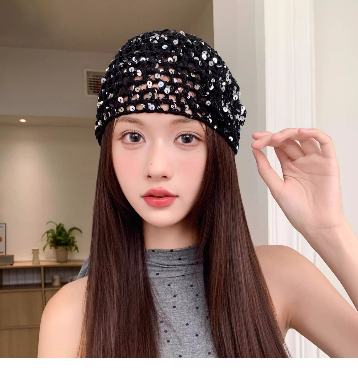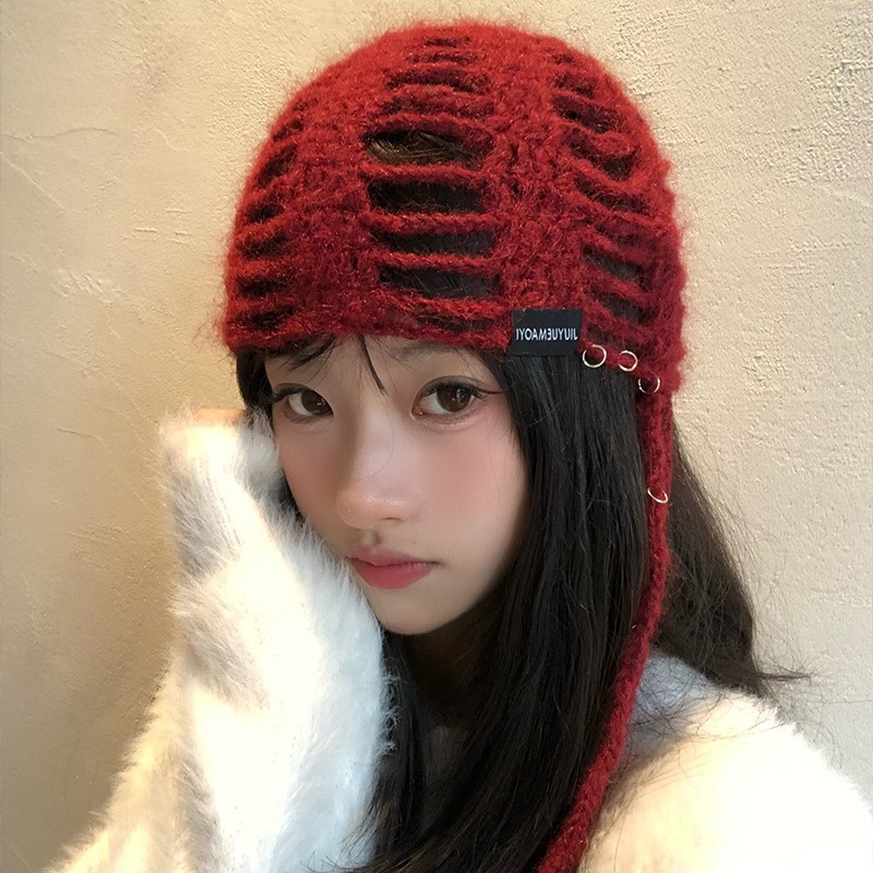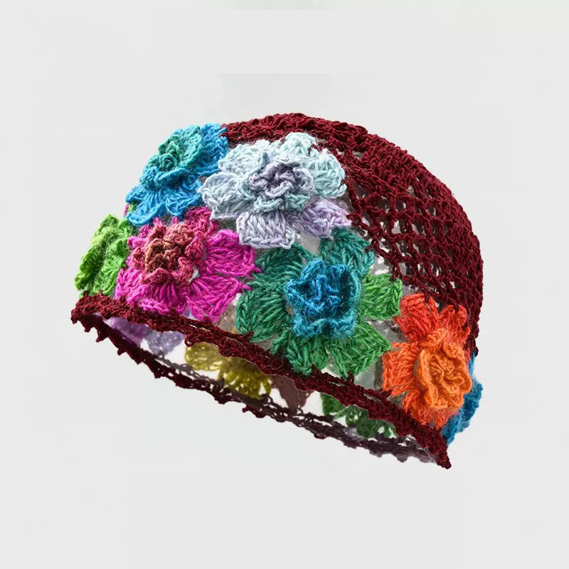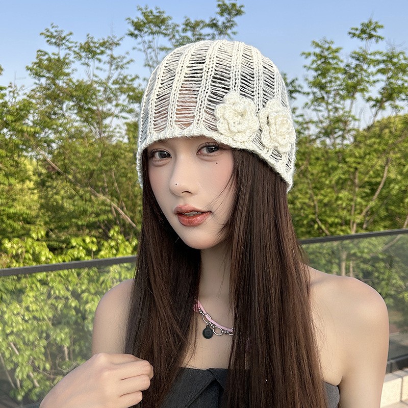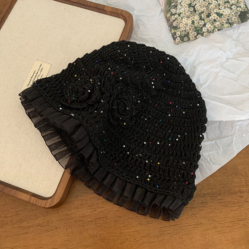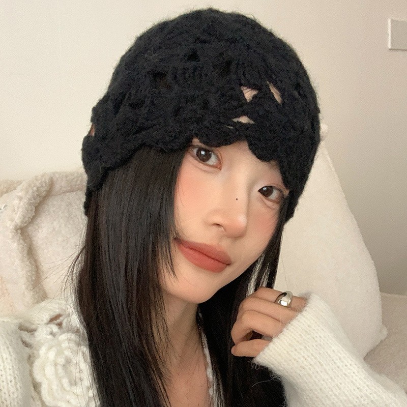 여성용 봄 여름 손으로 짠 중공 바오터우 모자, 뜨개질 민족 스타일 술 스트랩 풀오버 니트 모자, 다용도스토어 가기