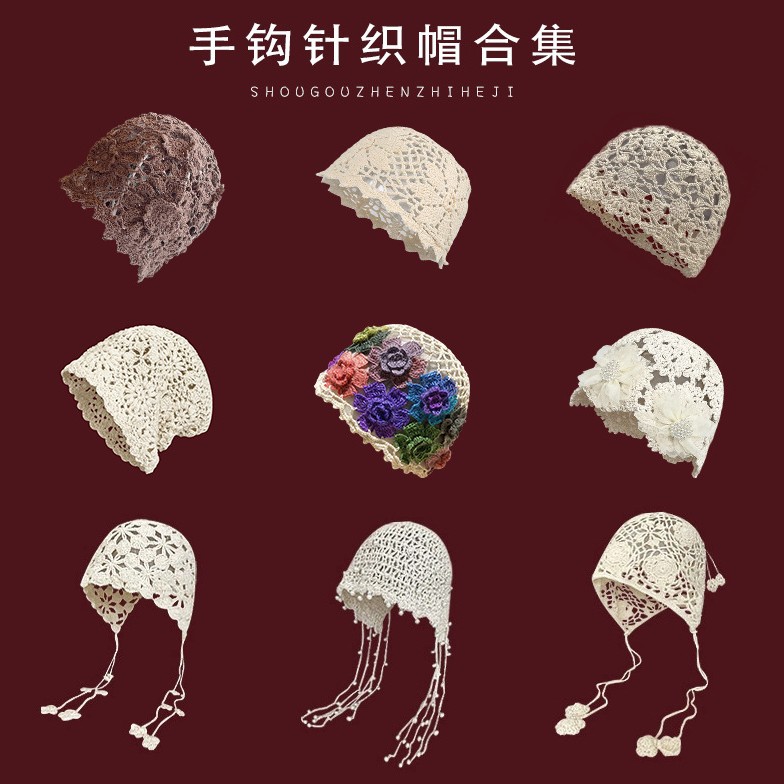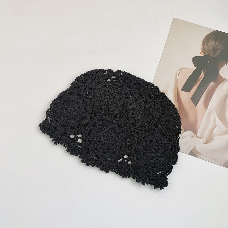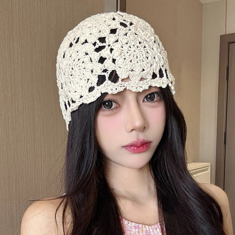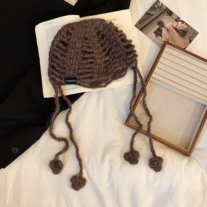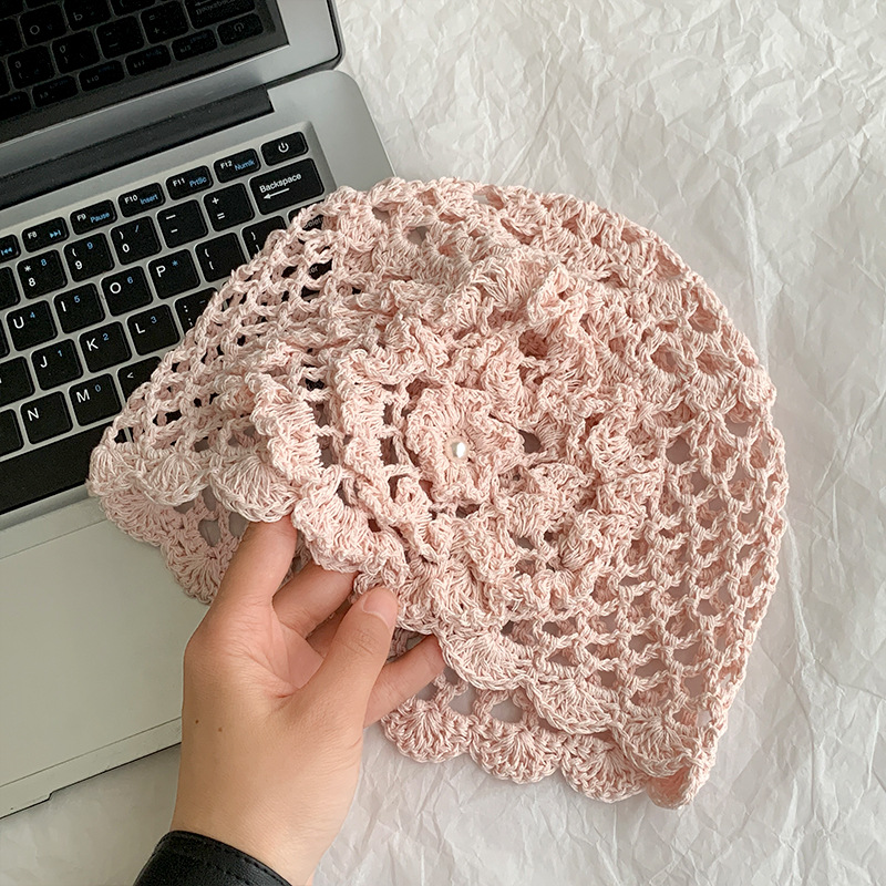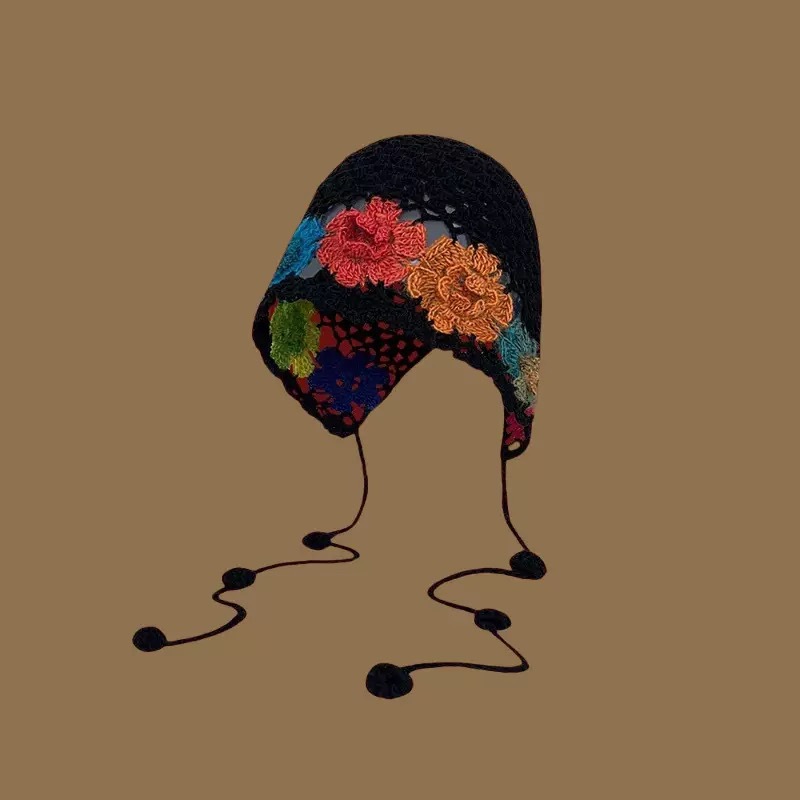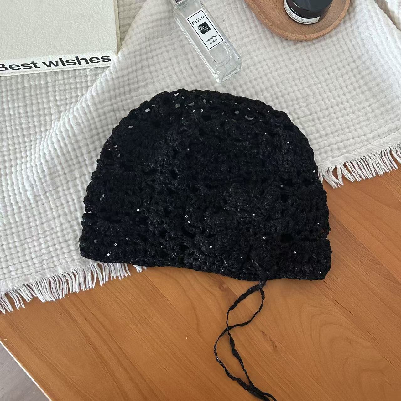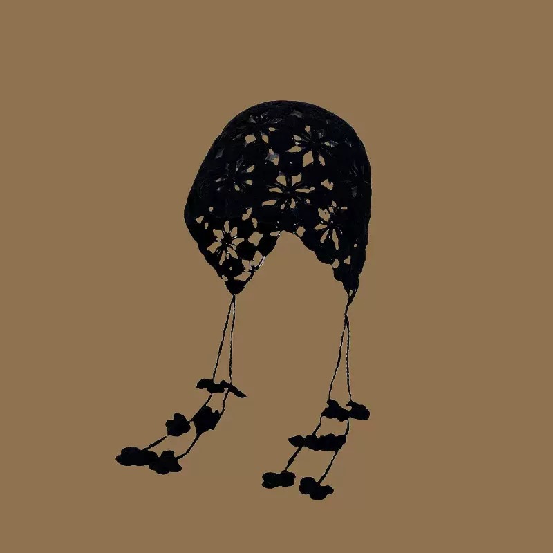 여성용 봄 여름 손으로 짠 중공 바오터우 모자, 뜨개질 민족 스타일 술 스트랩 풀오버 니트 모자, 다용도