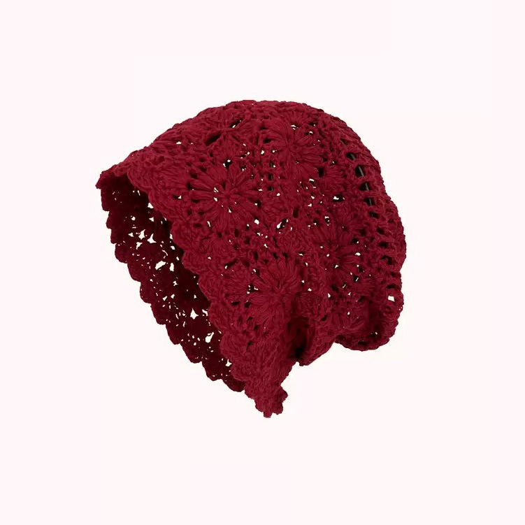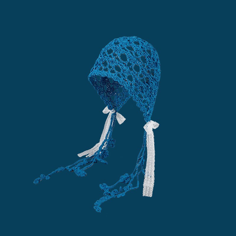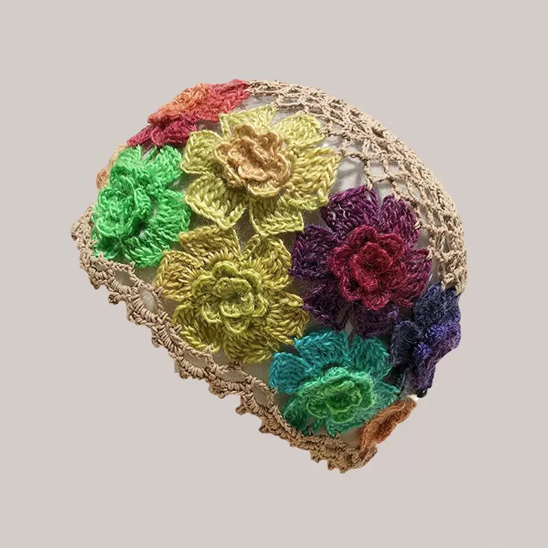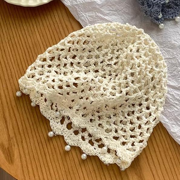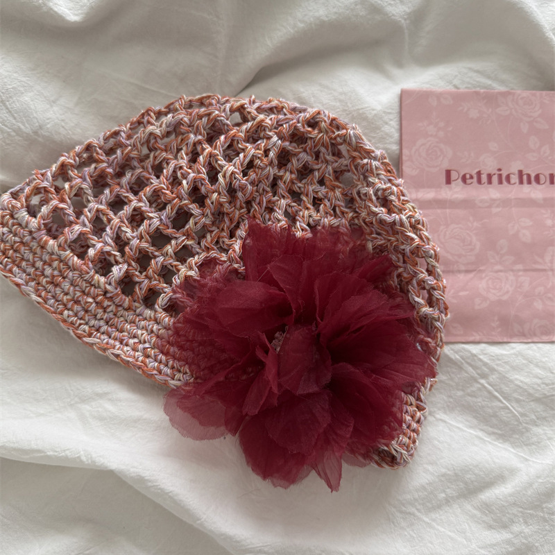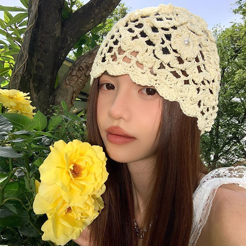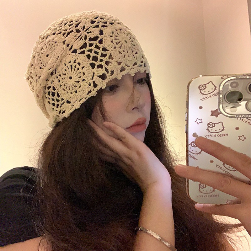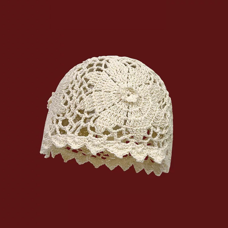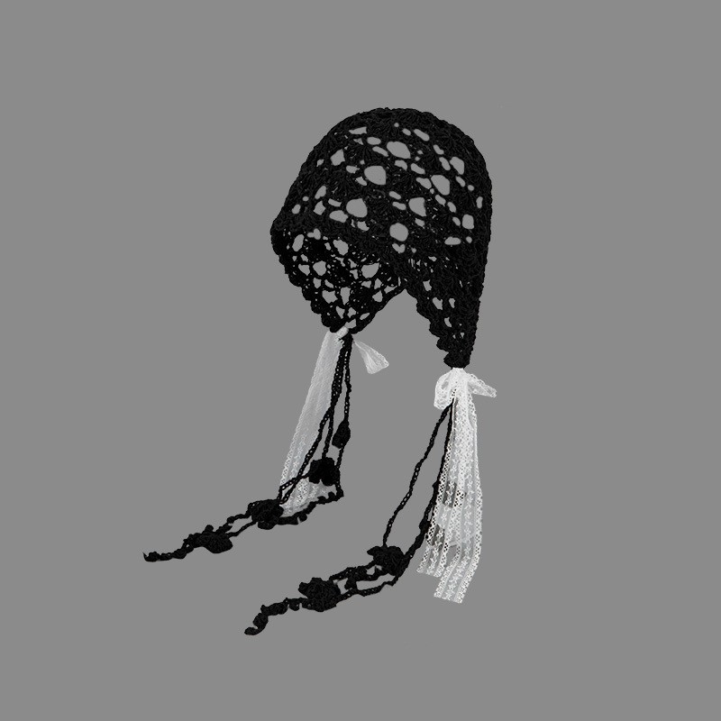 여성용 봄 여름 손으로 짠 중공 바오터우 모자, 뜨개질 민족 스타일 술 스트랩 풀오버 니트 모자, 다용도
