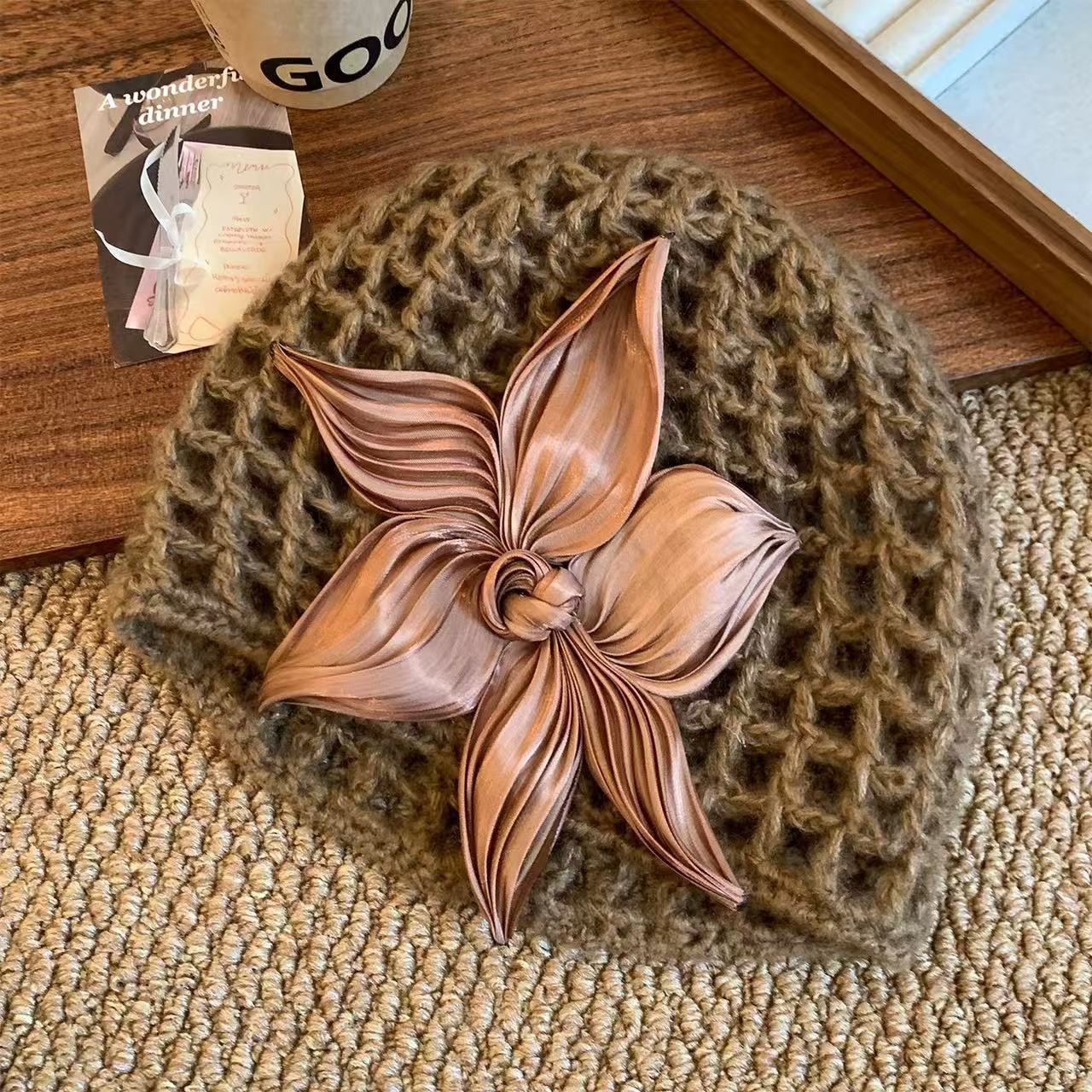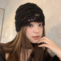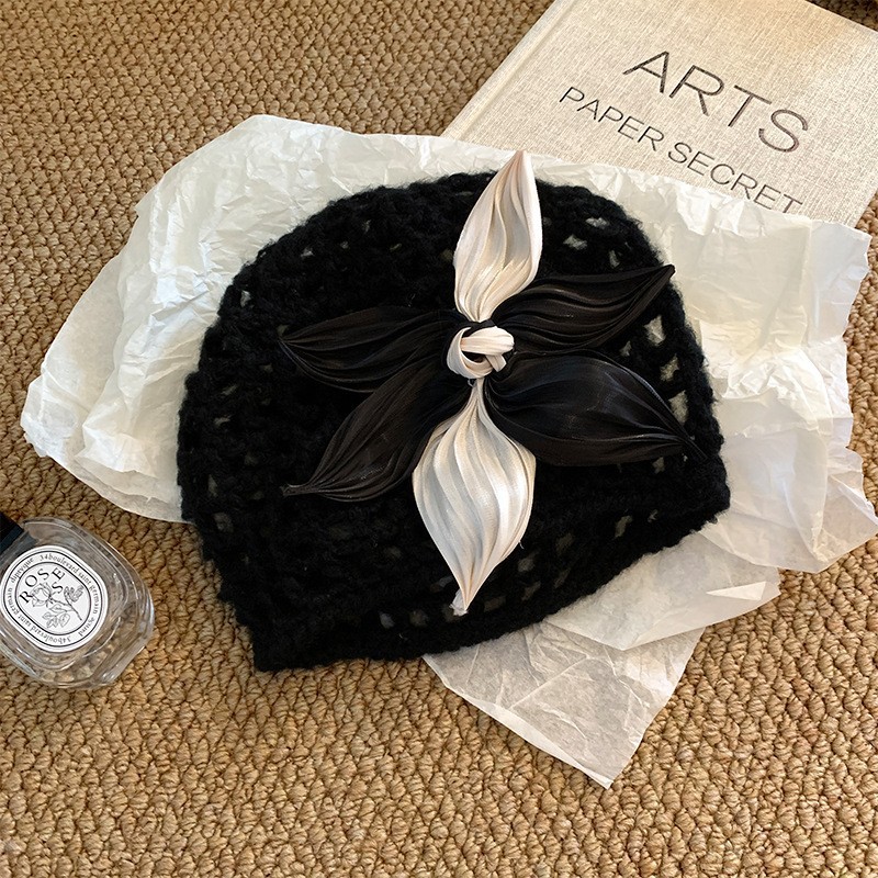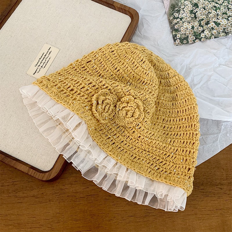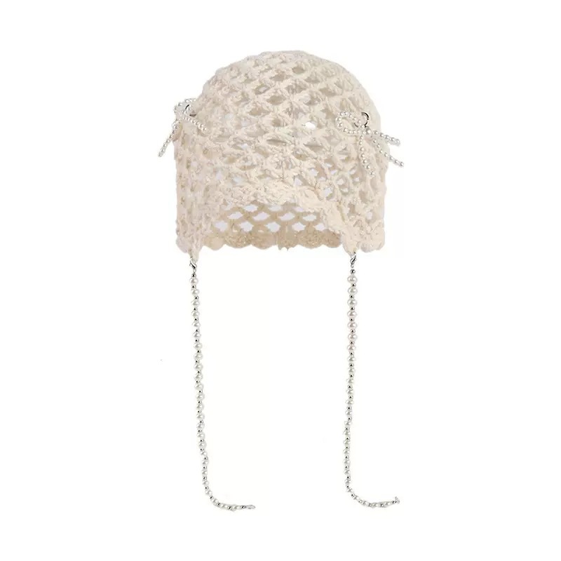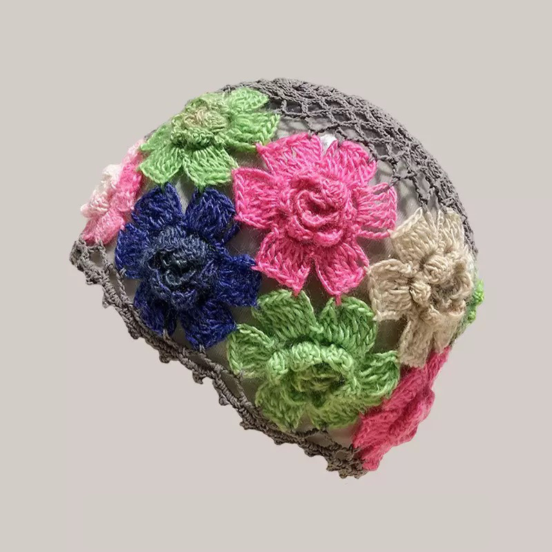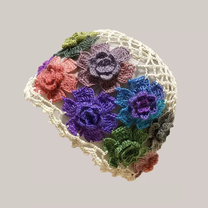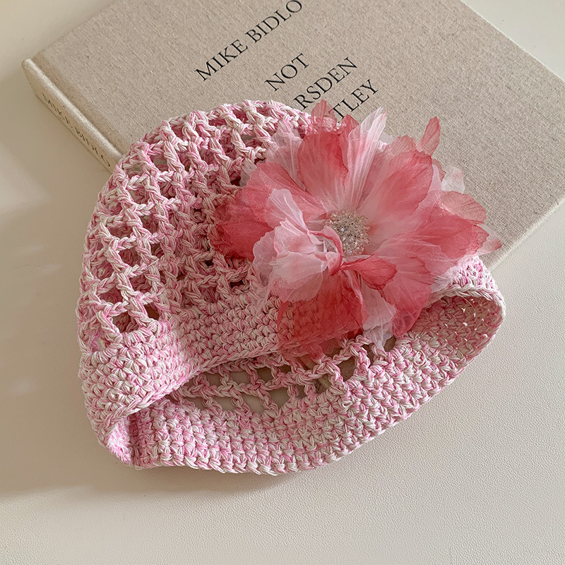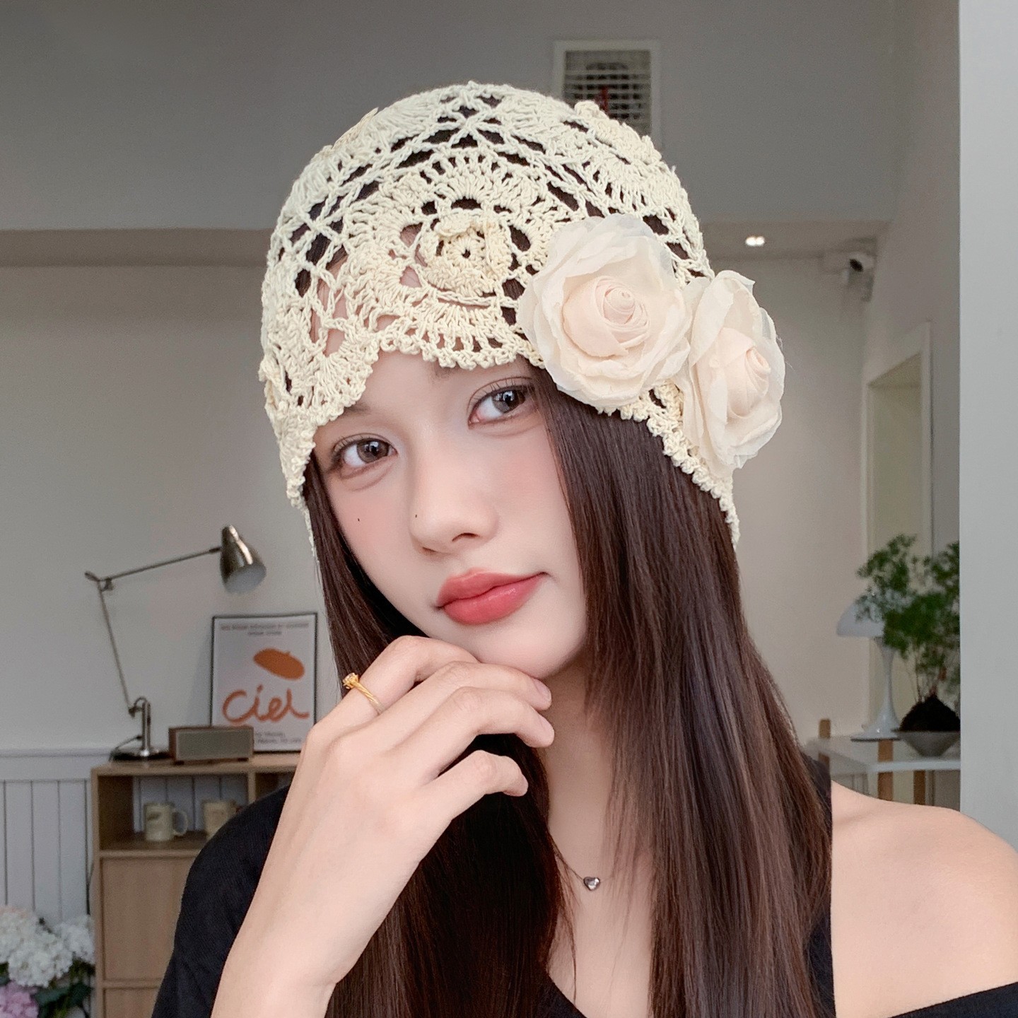 여성용 봄 여름 손으로 짠 중공 바오터우 모자, 뜨개질 민족 스타일 술 스트랩 풀오버 니트 모자, 다용도