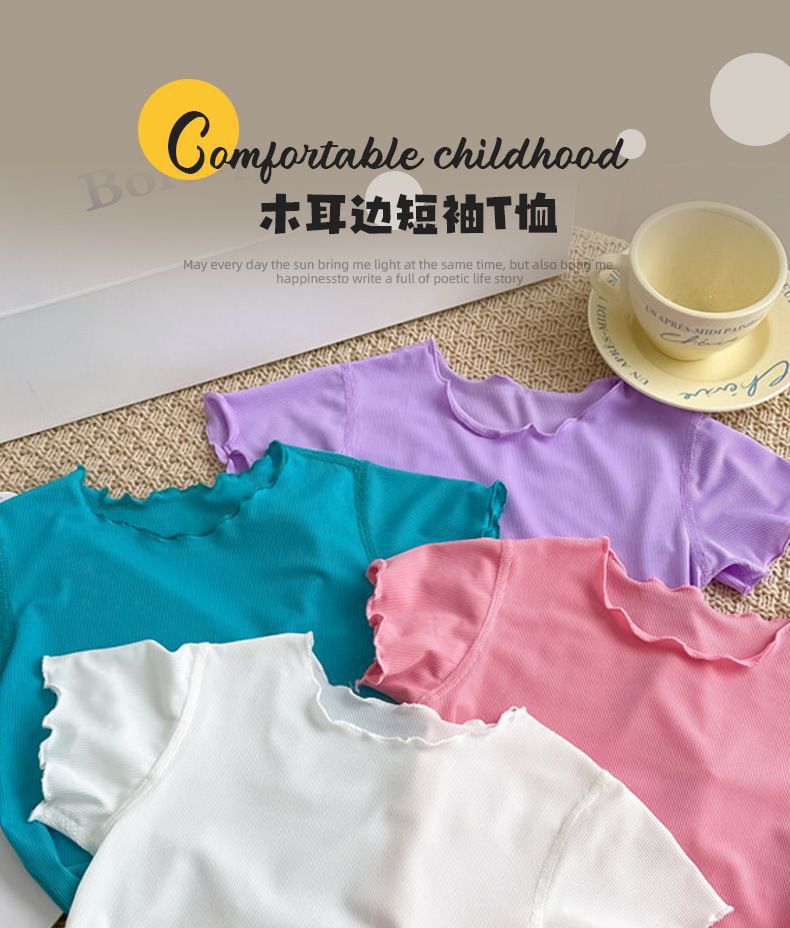 아이스실크 반팔 티셔츠 신형 한국식 소녀 아기 여름착용 올매치 스트라이프 서양식 곰팡이 올매치 대외 무역