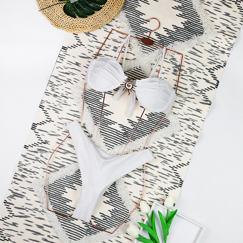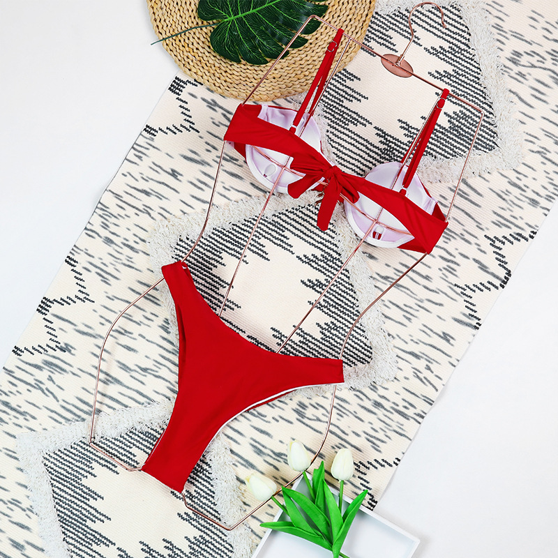2025 새로운 비키니 섹시 유럽과 미국의 비키니 솔리드 컬러 스틸 트레이서 크로스 보더 스플릿 여성 수영복 수영복 수집스토어 가기