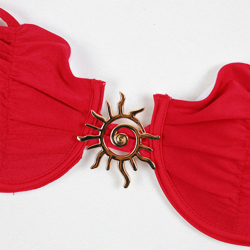 2025 새로운 비키니 섹시 유럽과 미국의 비키니 솔리드 컬러 스틸 트레이서 크로스 보더 스플릿 여성 수영복 수영복 수집